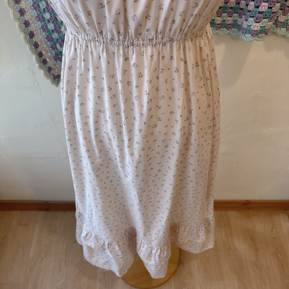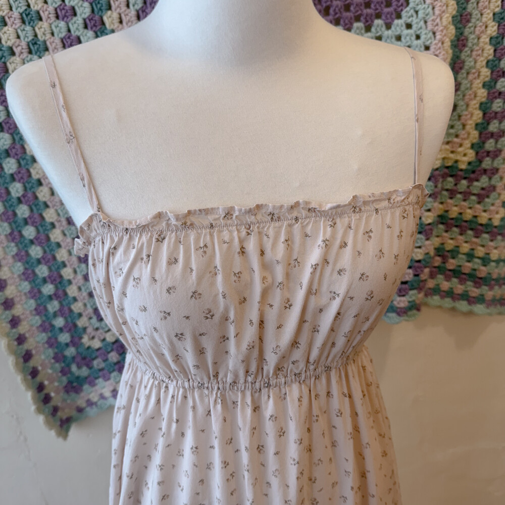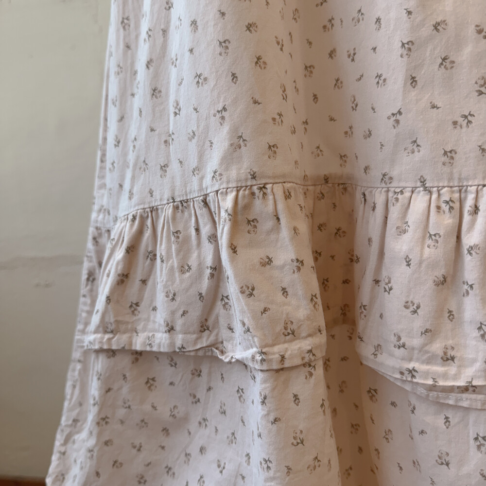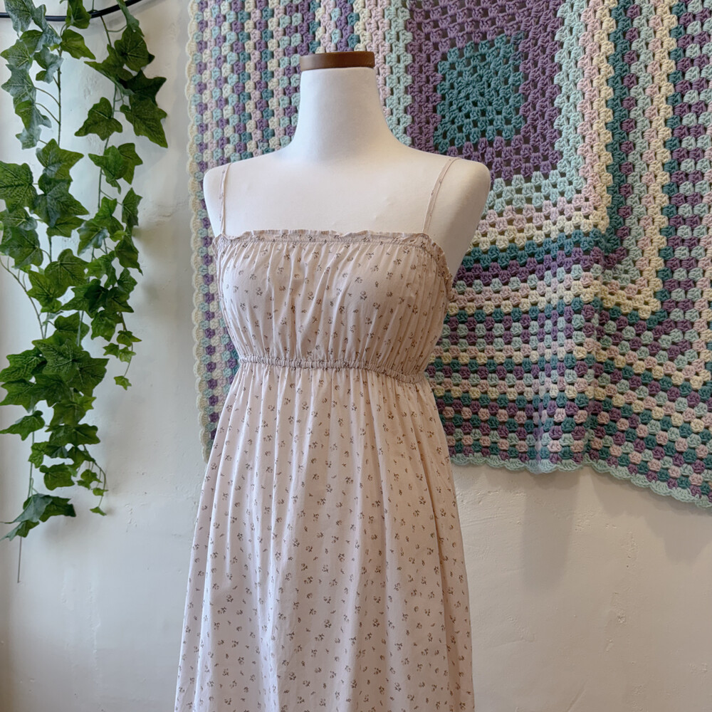 옅은 핑크아이보리 색감의 잔꽃 끈원피스예요