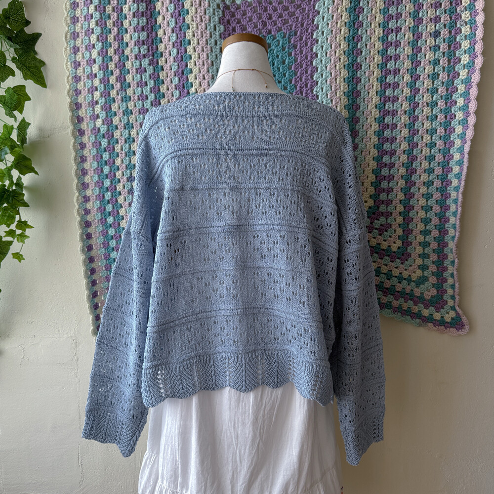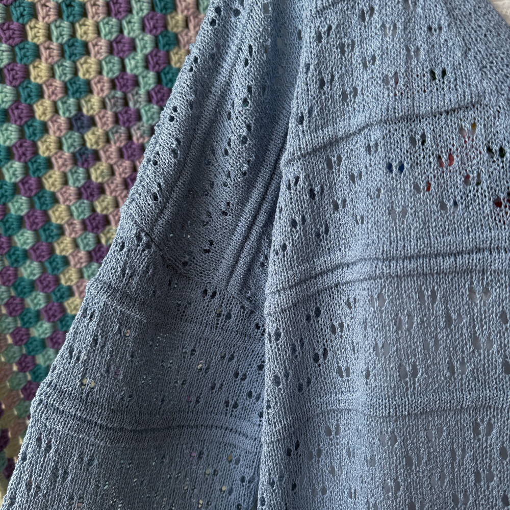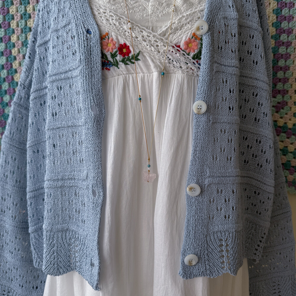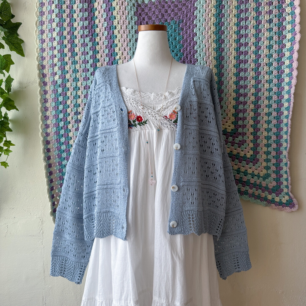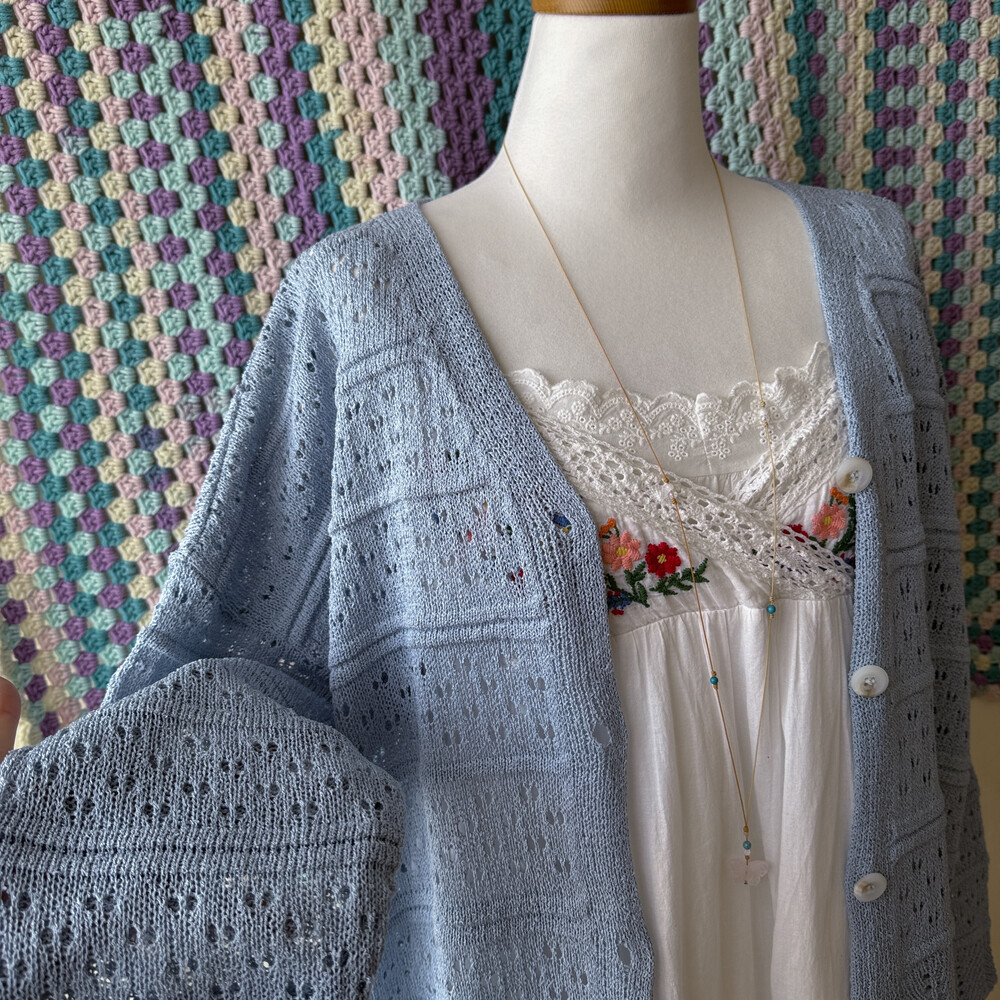 진한 소라색의 펀칭, 물결 디자인 가디건이에요