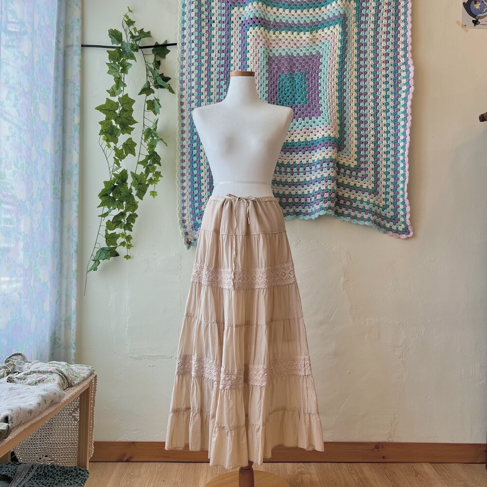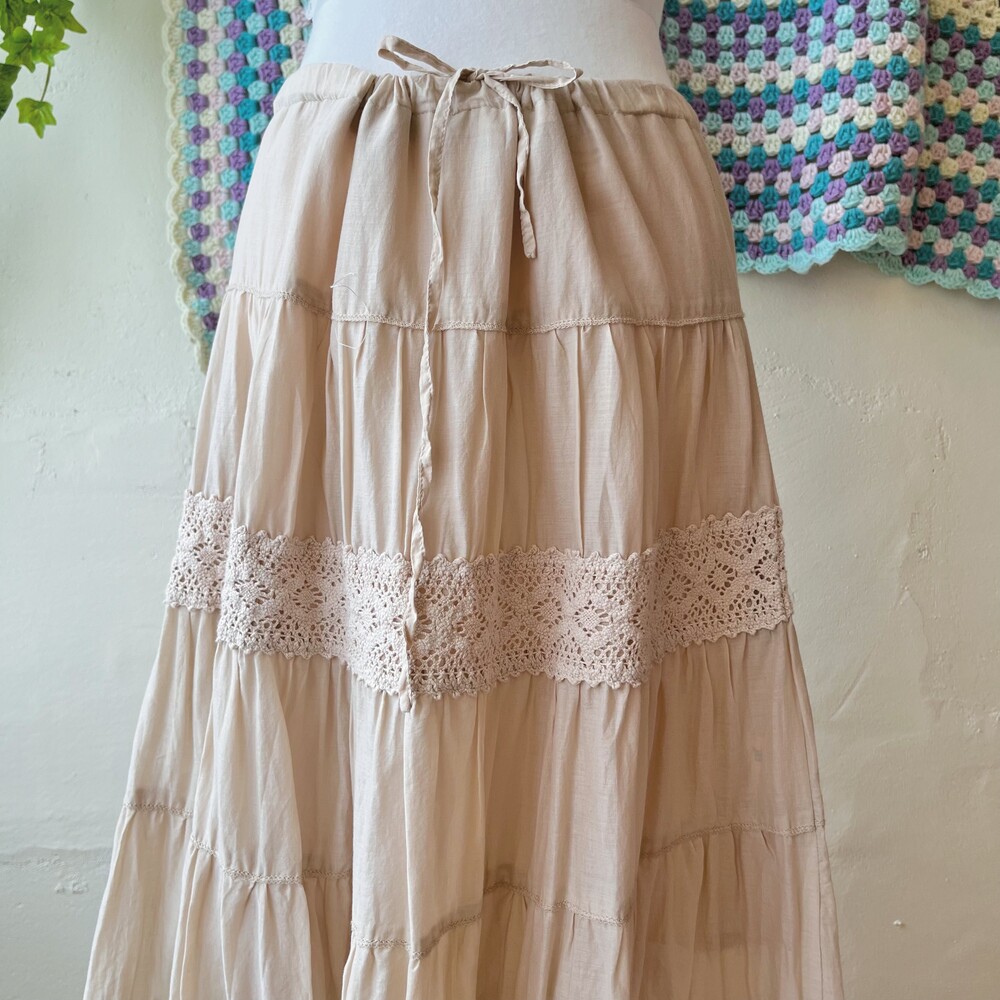 light beige crochet lace tiered sk