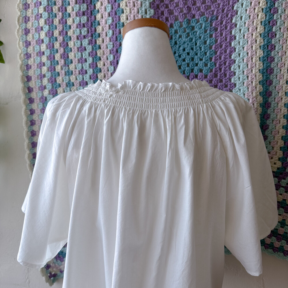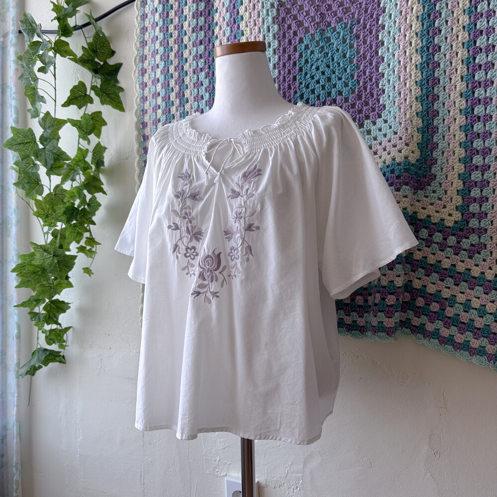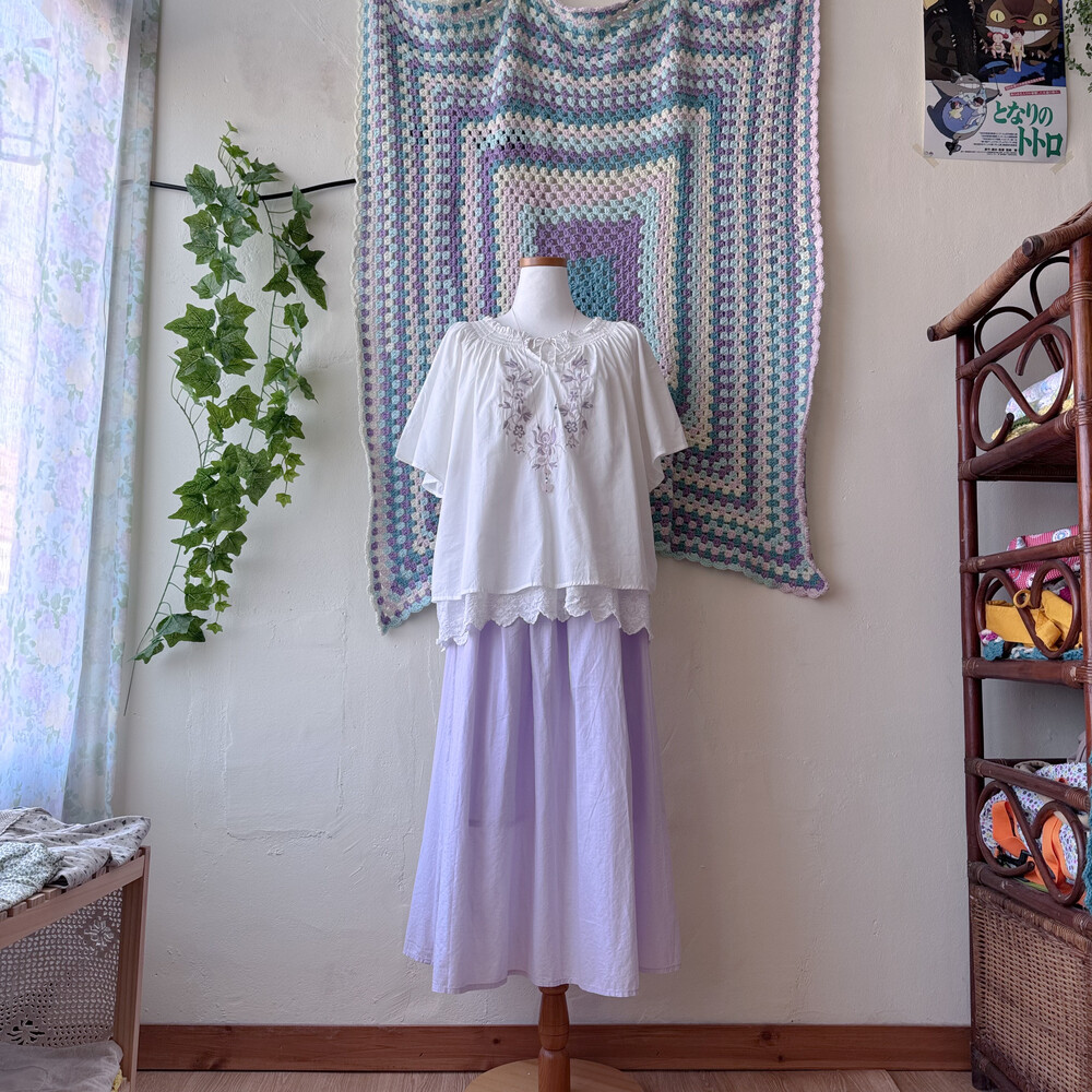 파스텔 자수 포인트의 블라우스예요