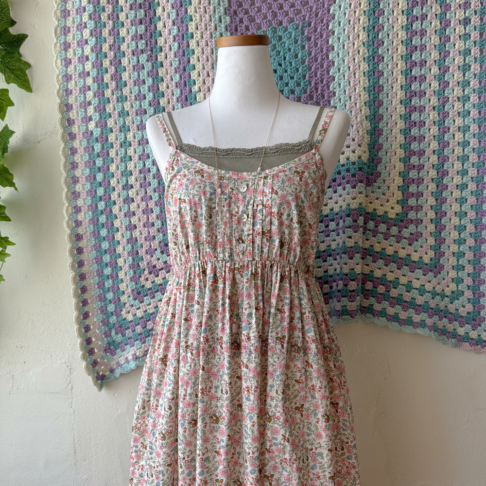 핑크 꽃무늬 코튼 끈원피스예요