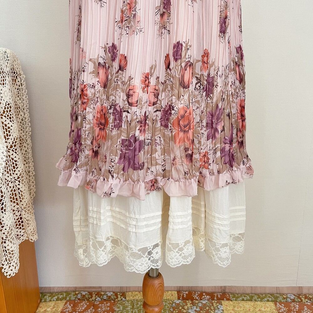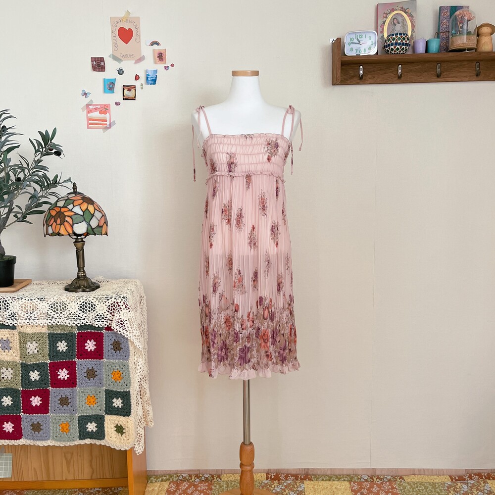연핑크 색감의 플리츠 끈원피스예요