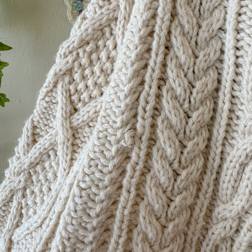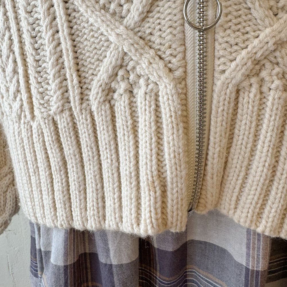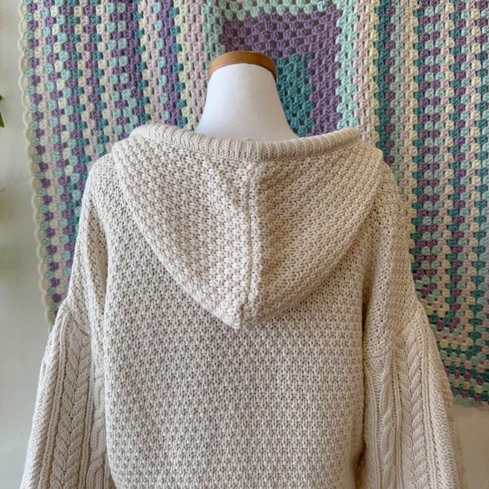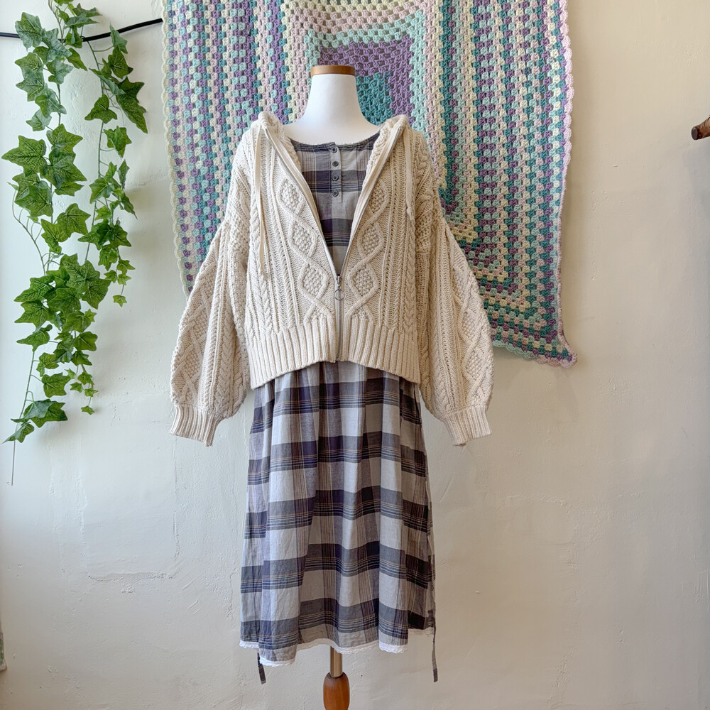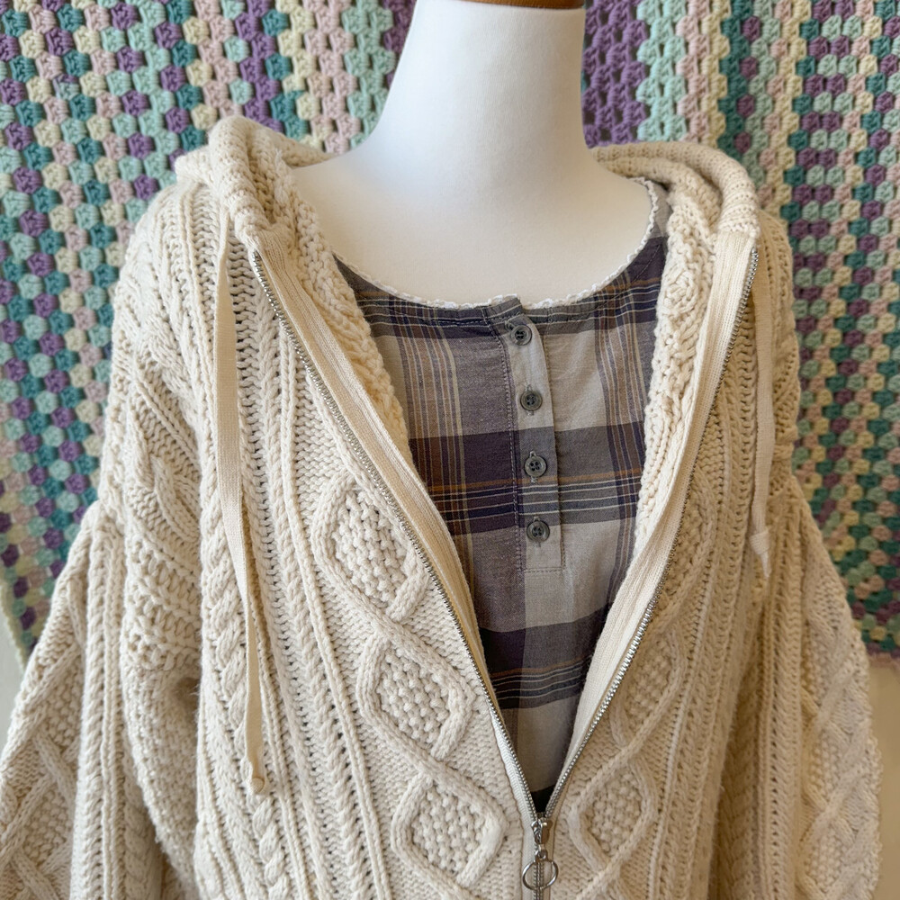 아이보리 색감의 케이블 후드 집업 가디건이에요