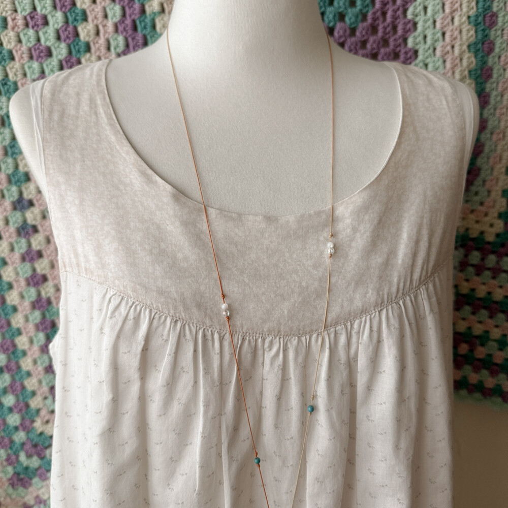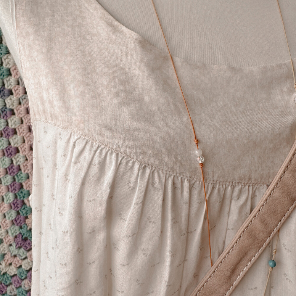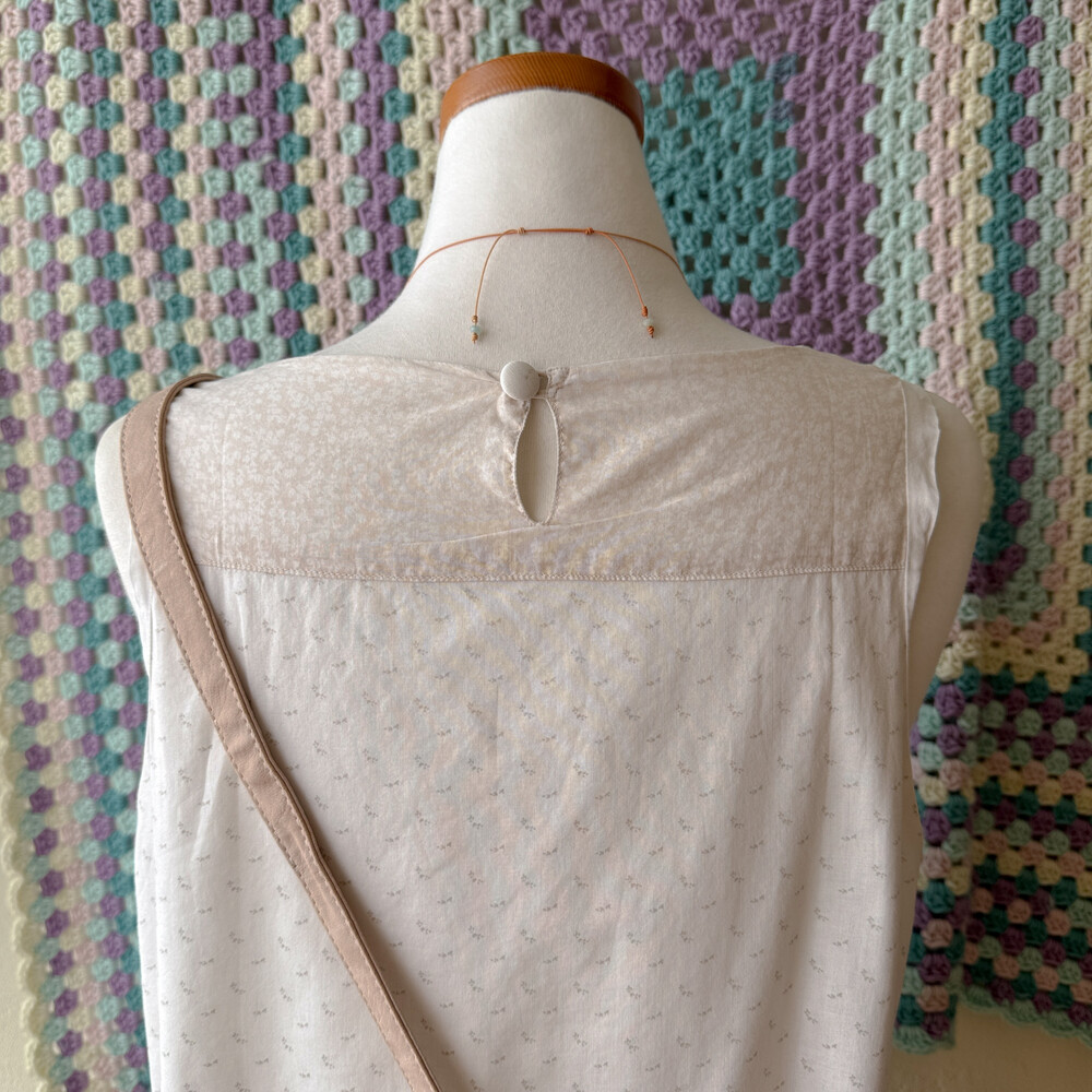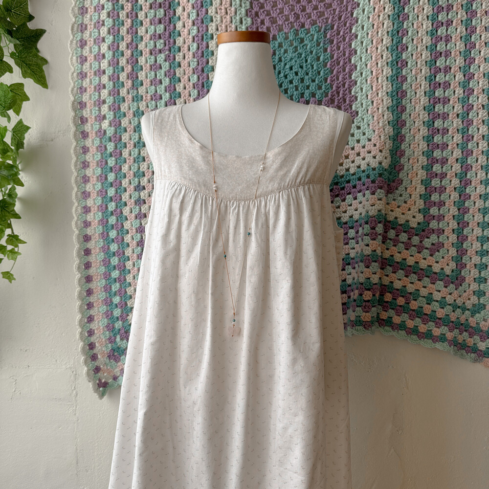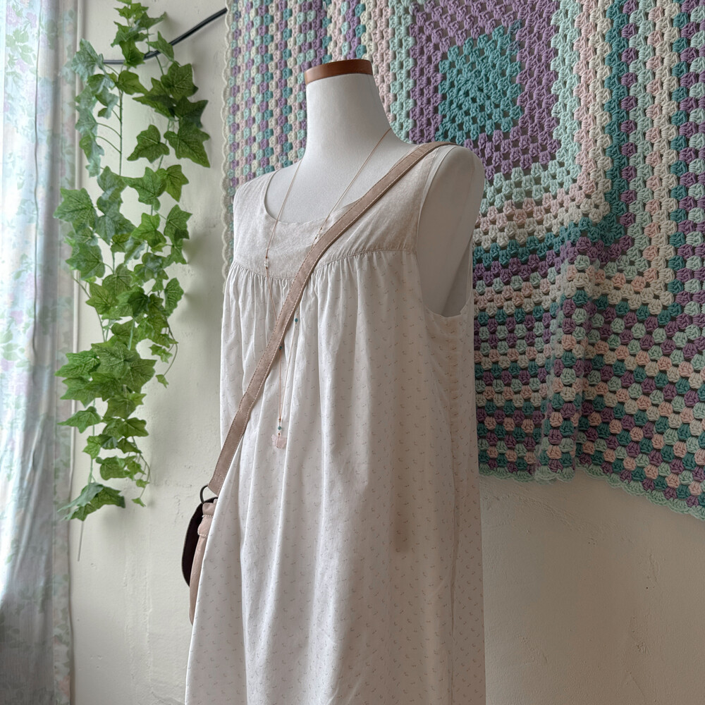 밀키하고 뮤트한 색감의 잔꽃 패치 원피스예요