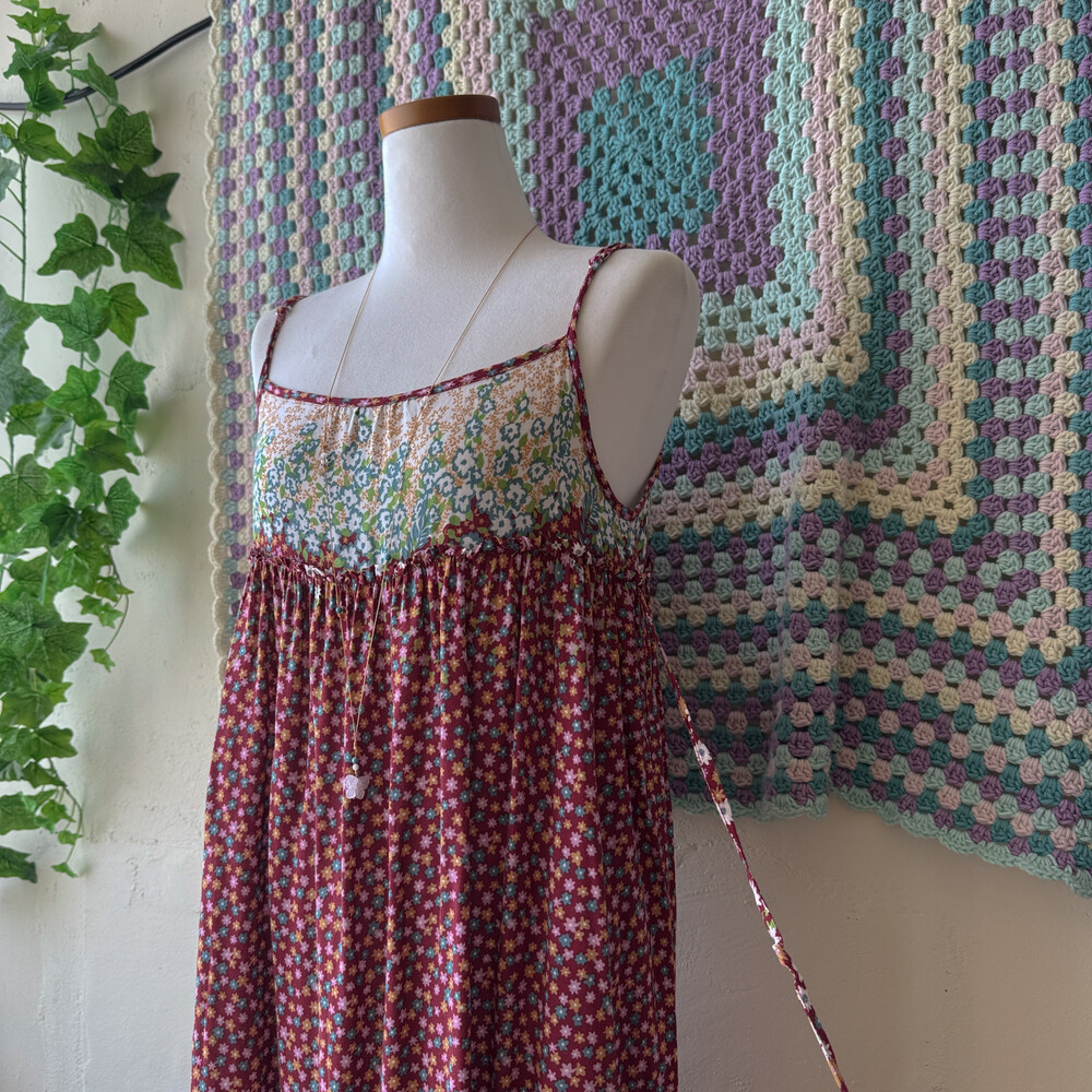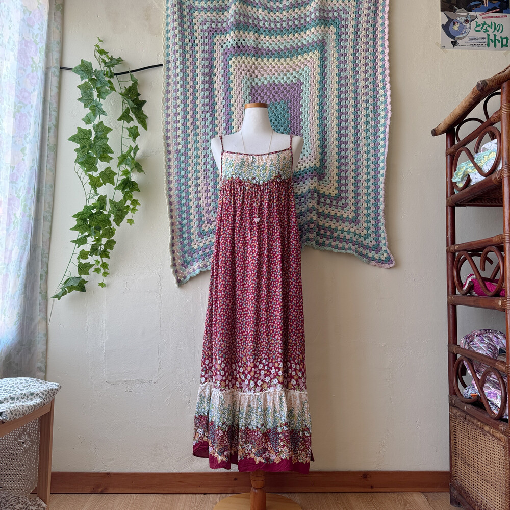 모리모리한 분위기의 레드 색감 레이온 끈원피스예요