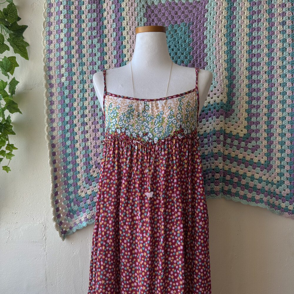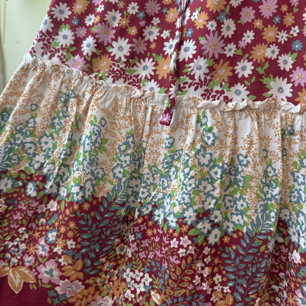 mori red base pink flower rayon ops