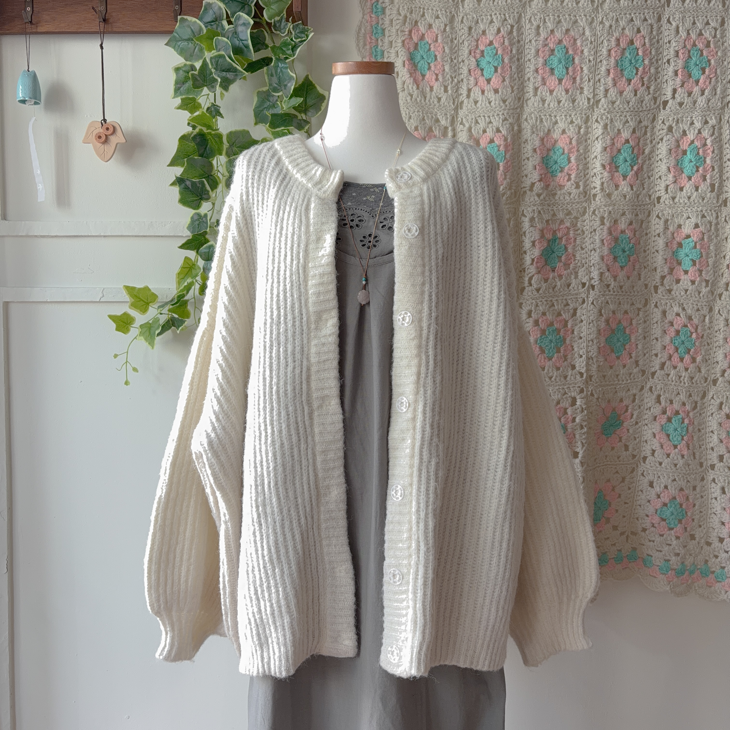 크림치즈 색감의 오버사이즈 가디건이에요
