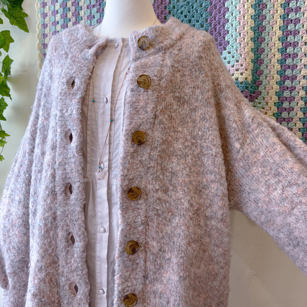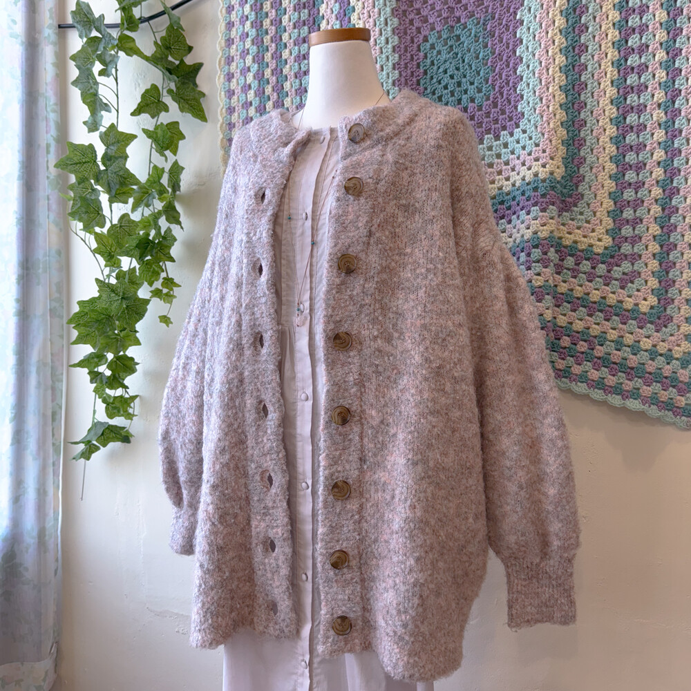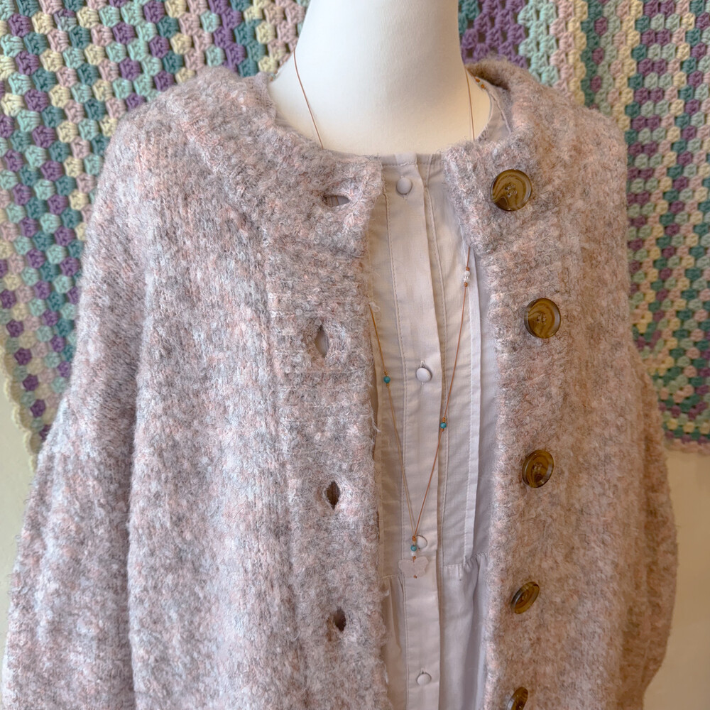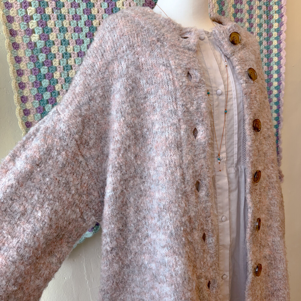 살구, 소라색이 믹스된 밀키한 가디건이에요