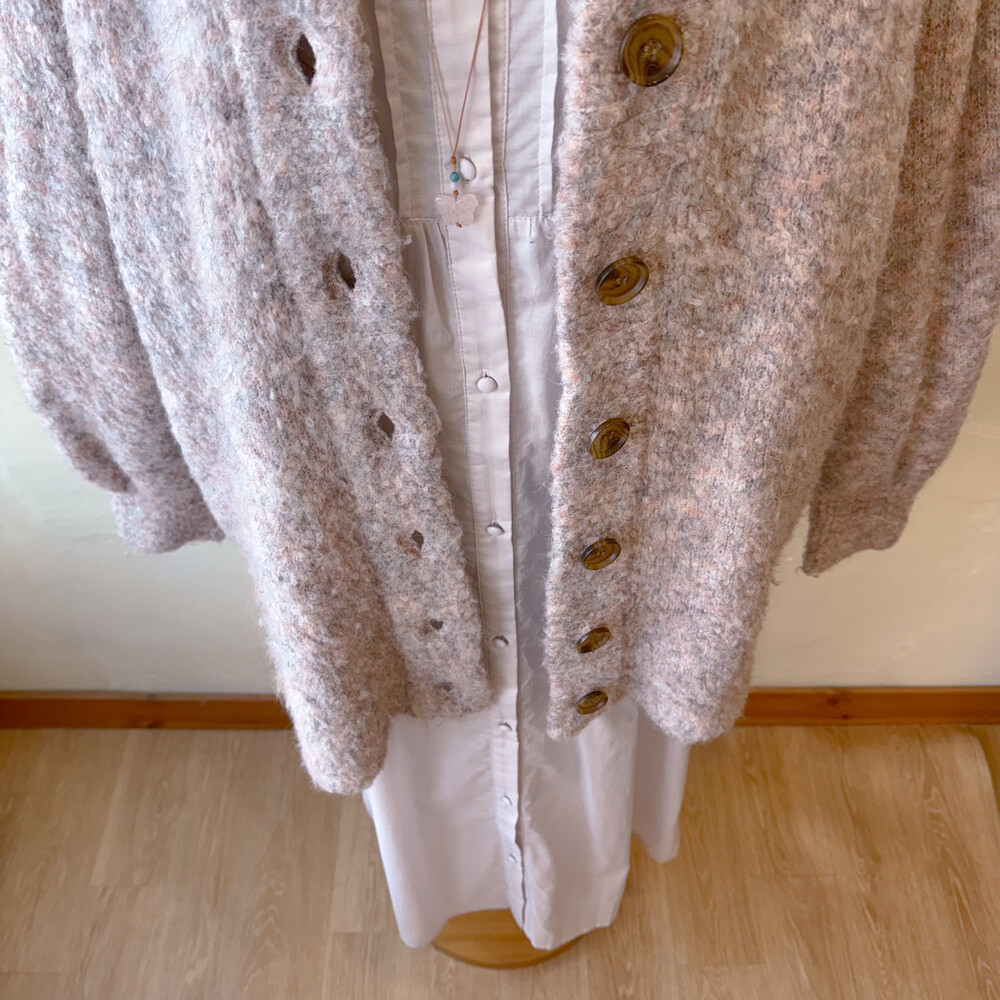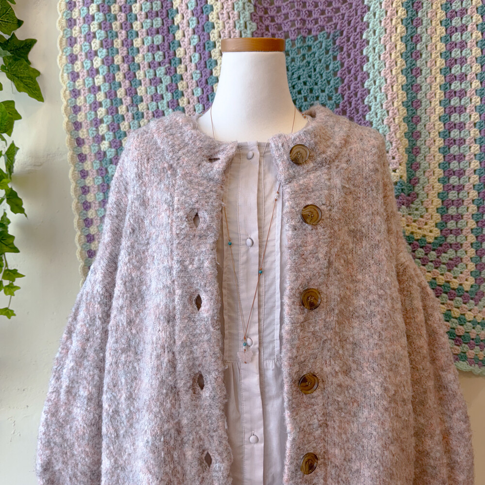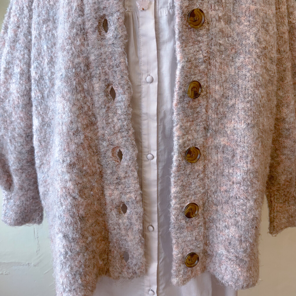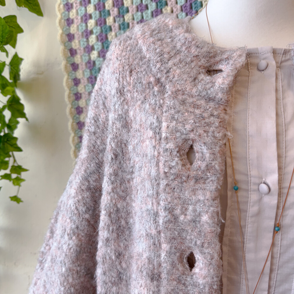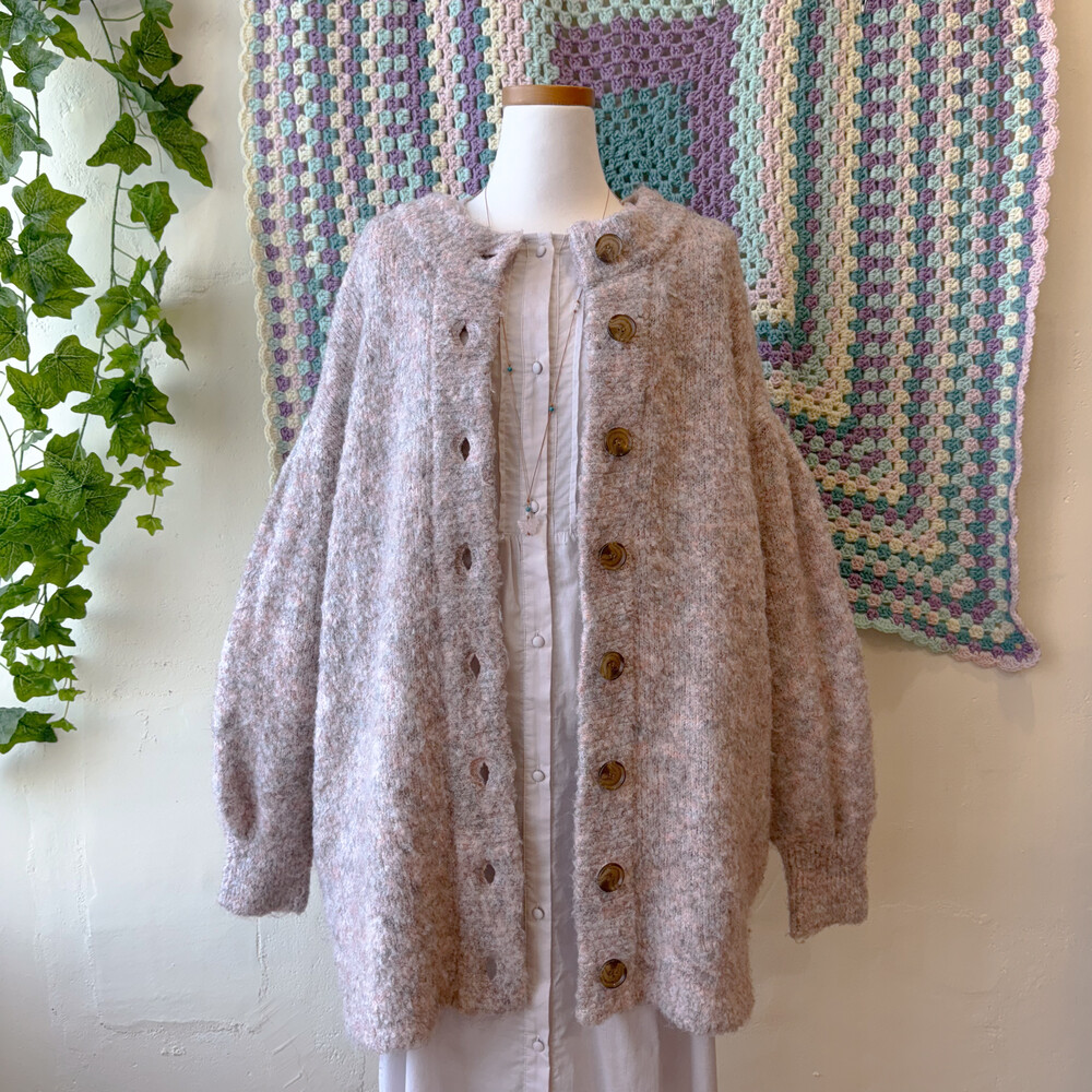 살구, 소라색이 믹스된 밀키한 가디건이에요