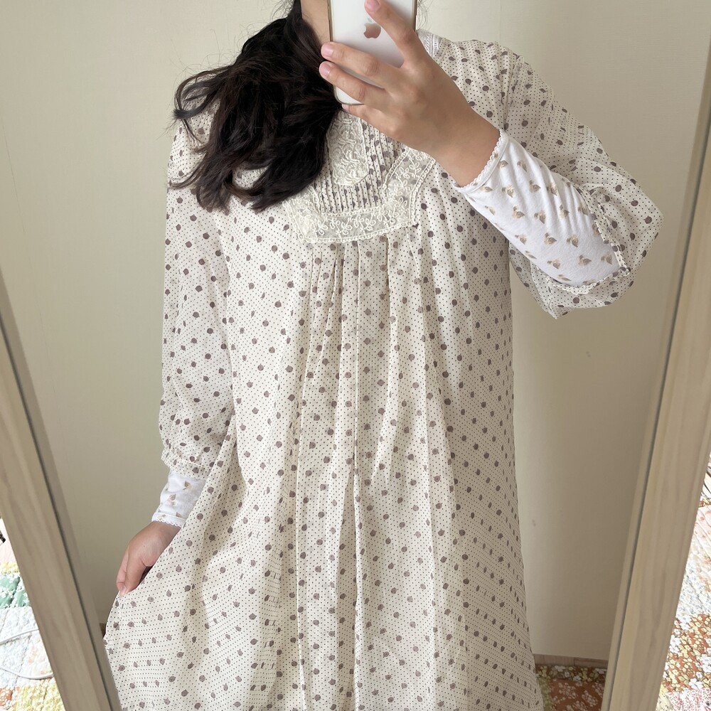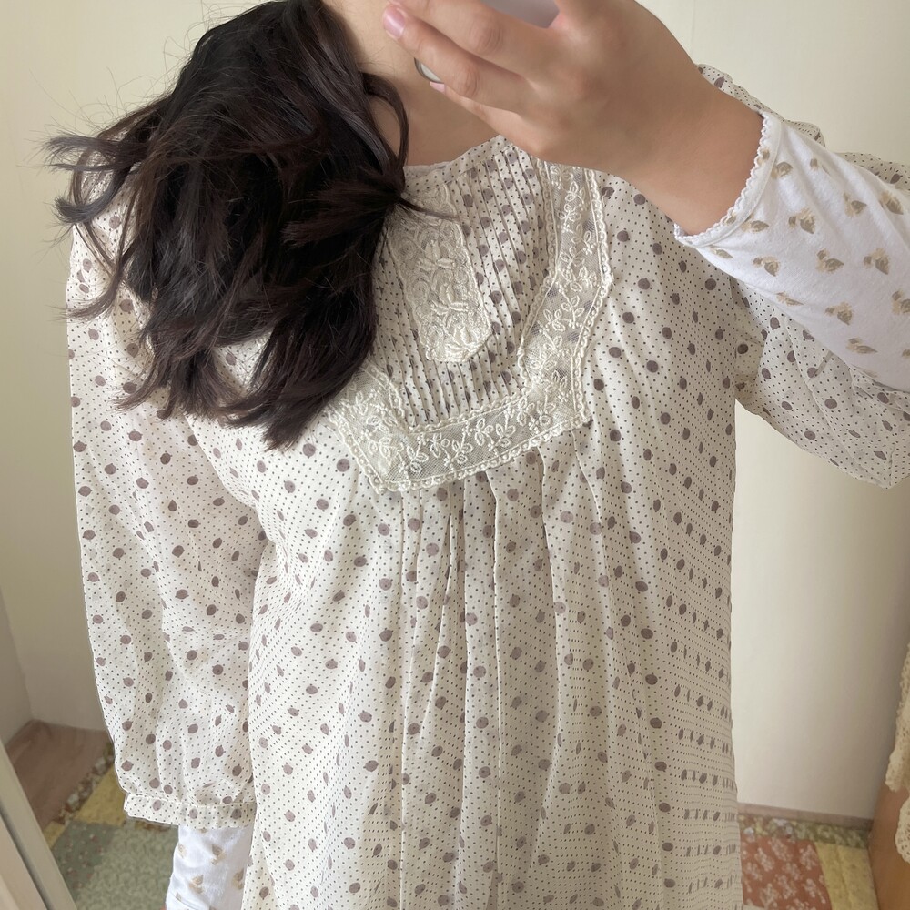 ivory base dot&lace point chiffon ops