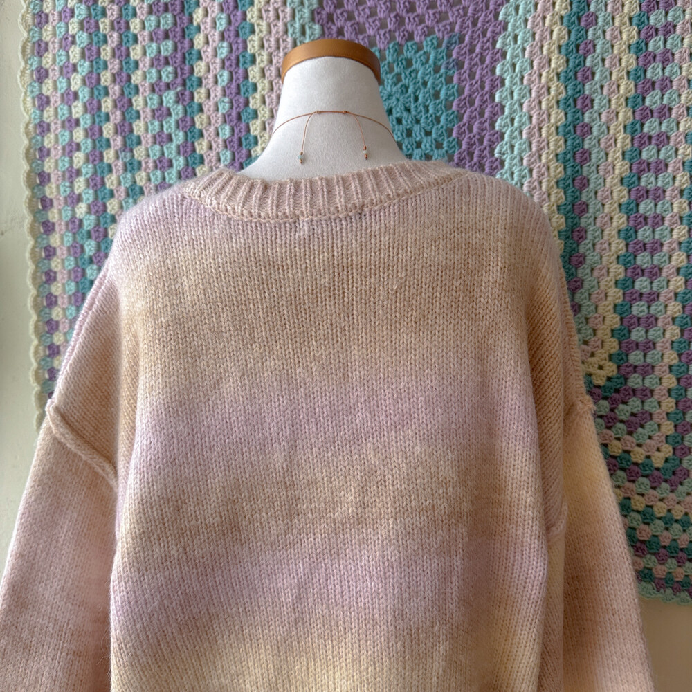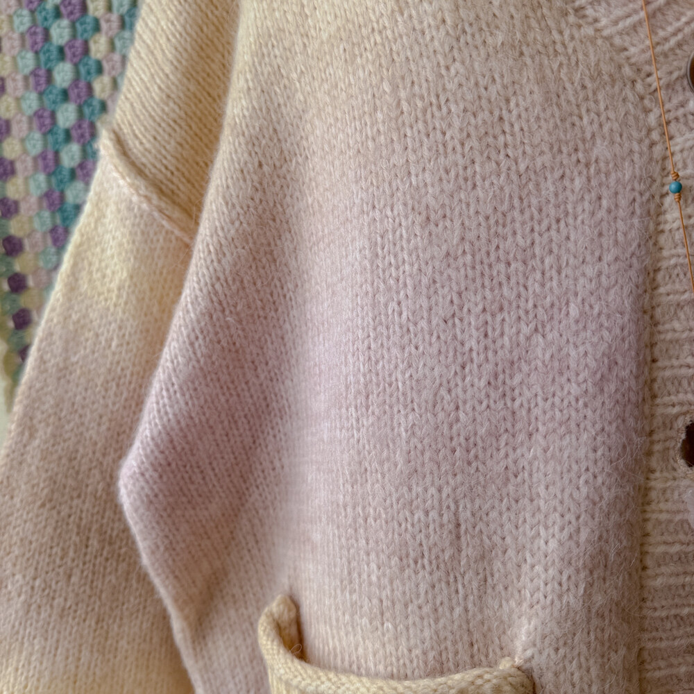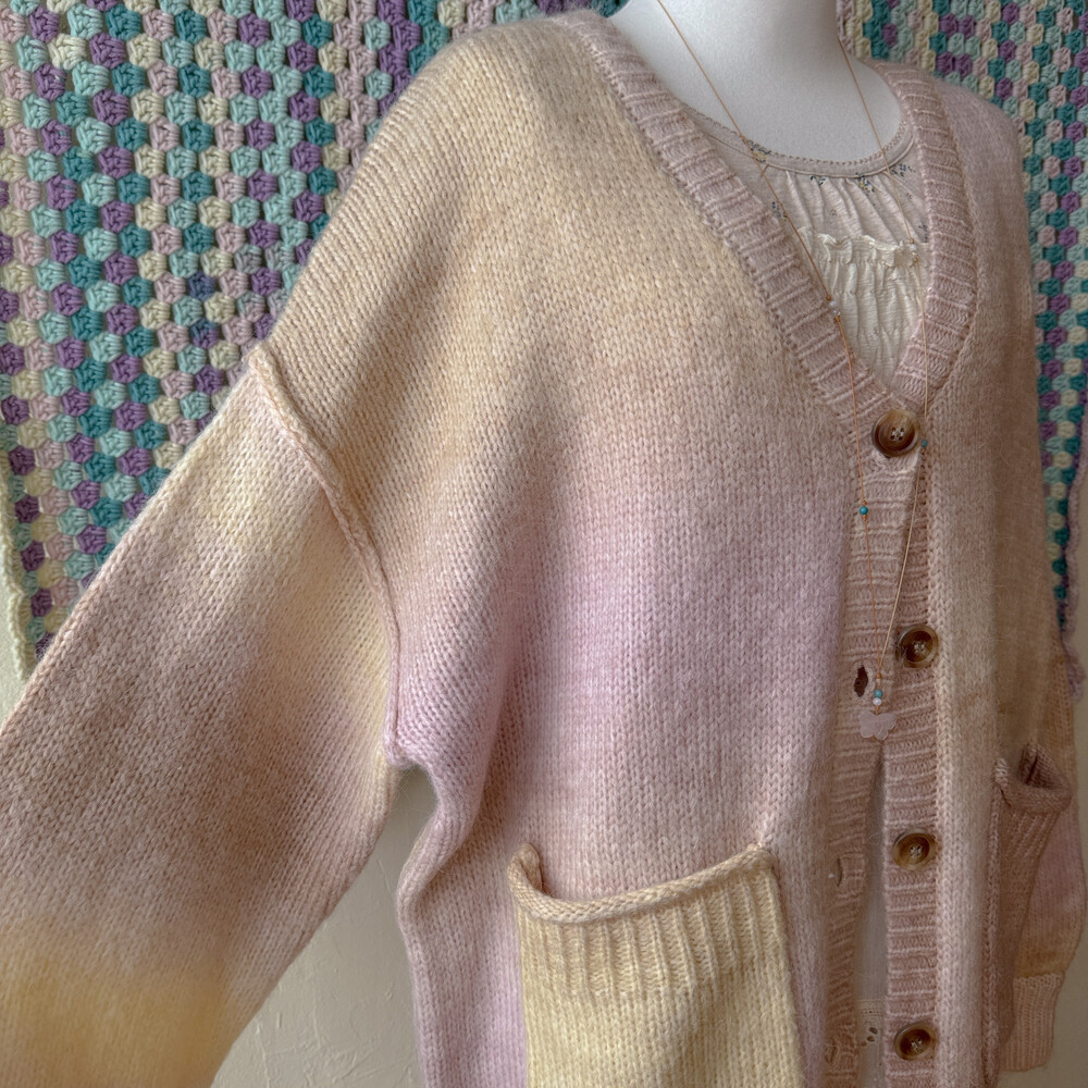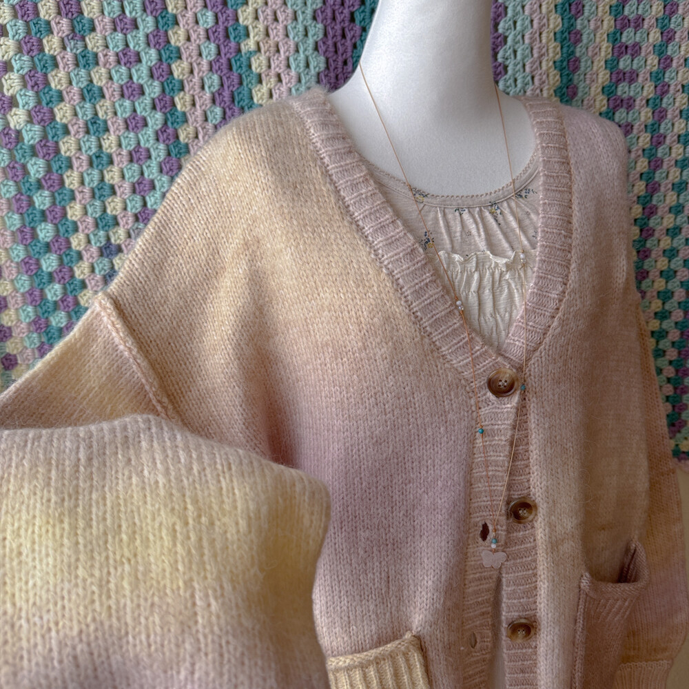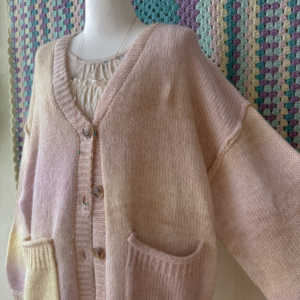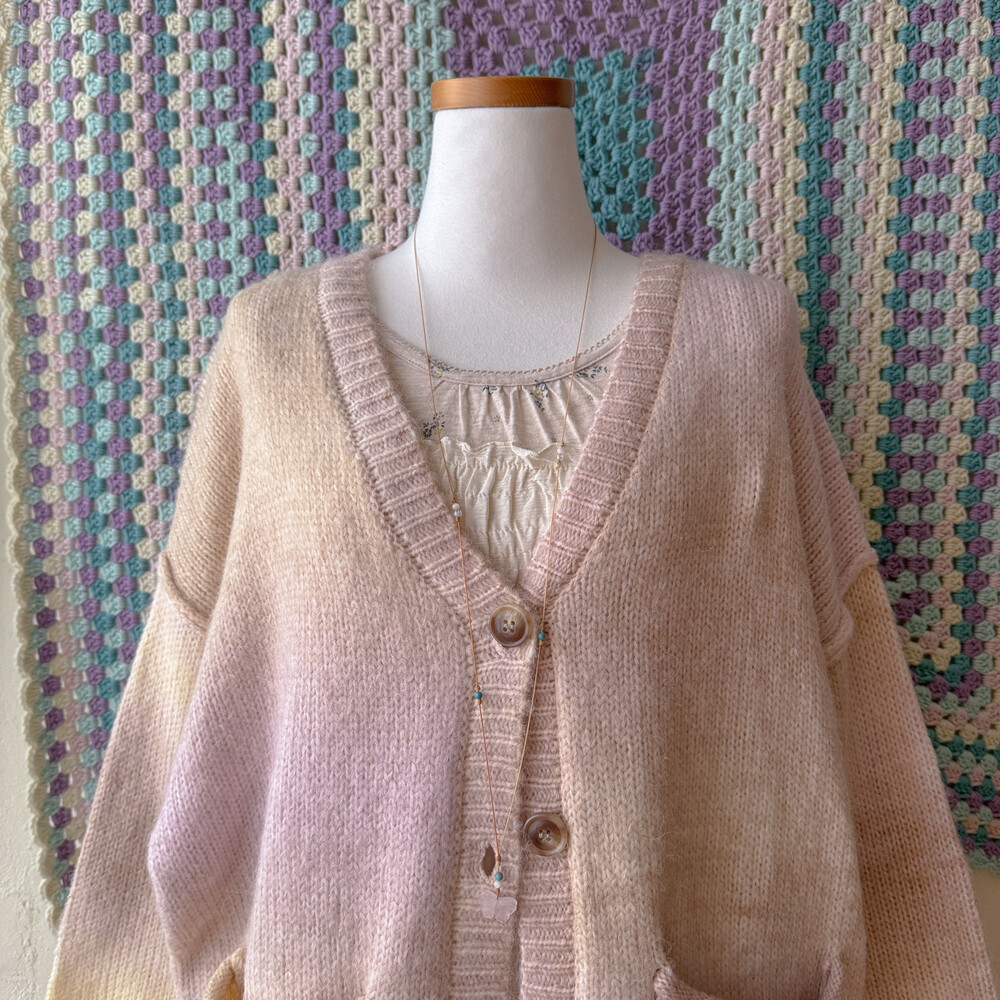 딸기우유색 핑크와 베이지가 그라데이션 된 가디건이에요