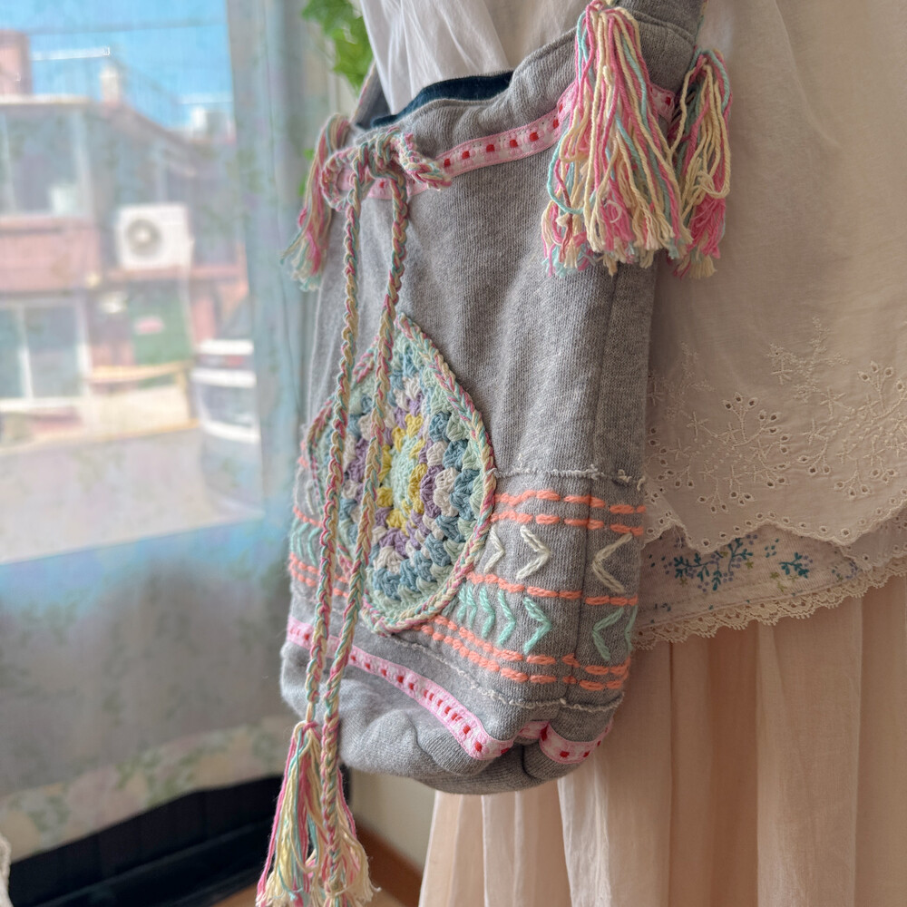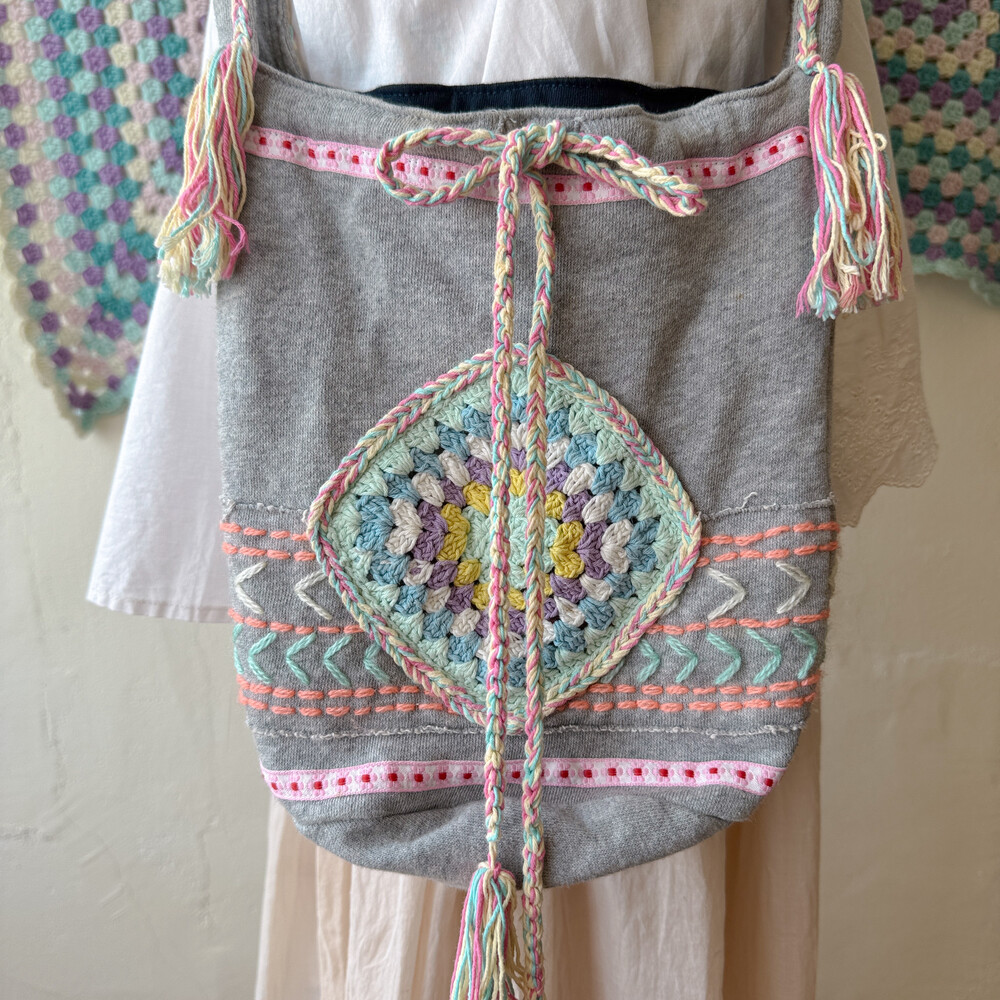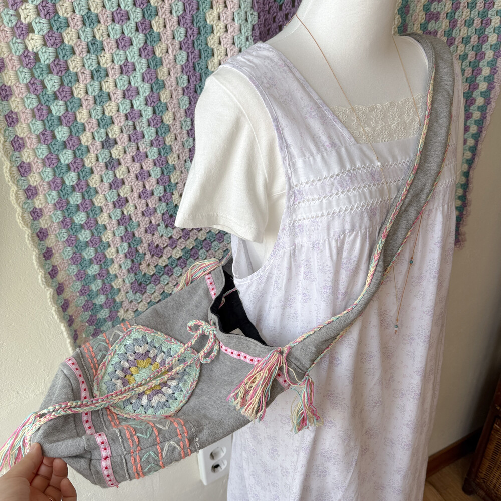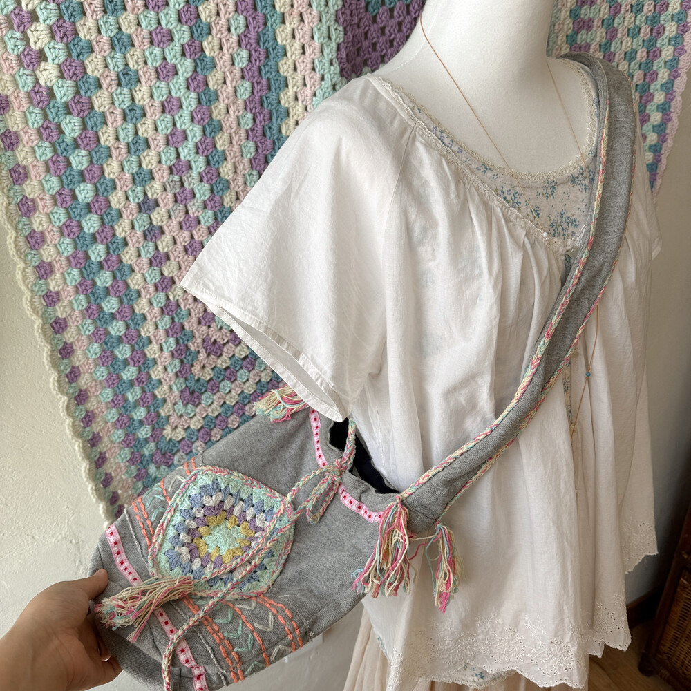 mori gray base granny square cross bag