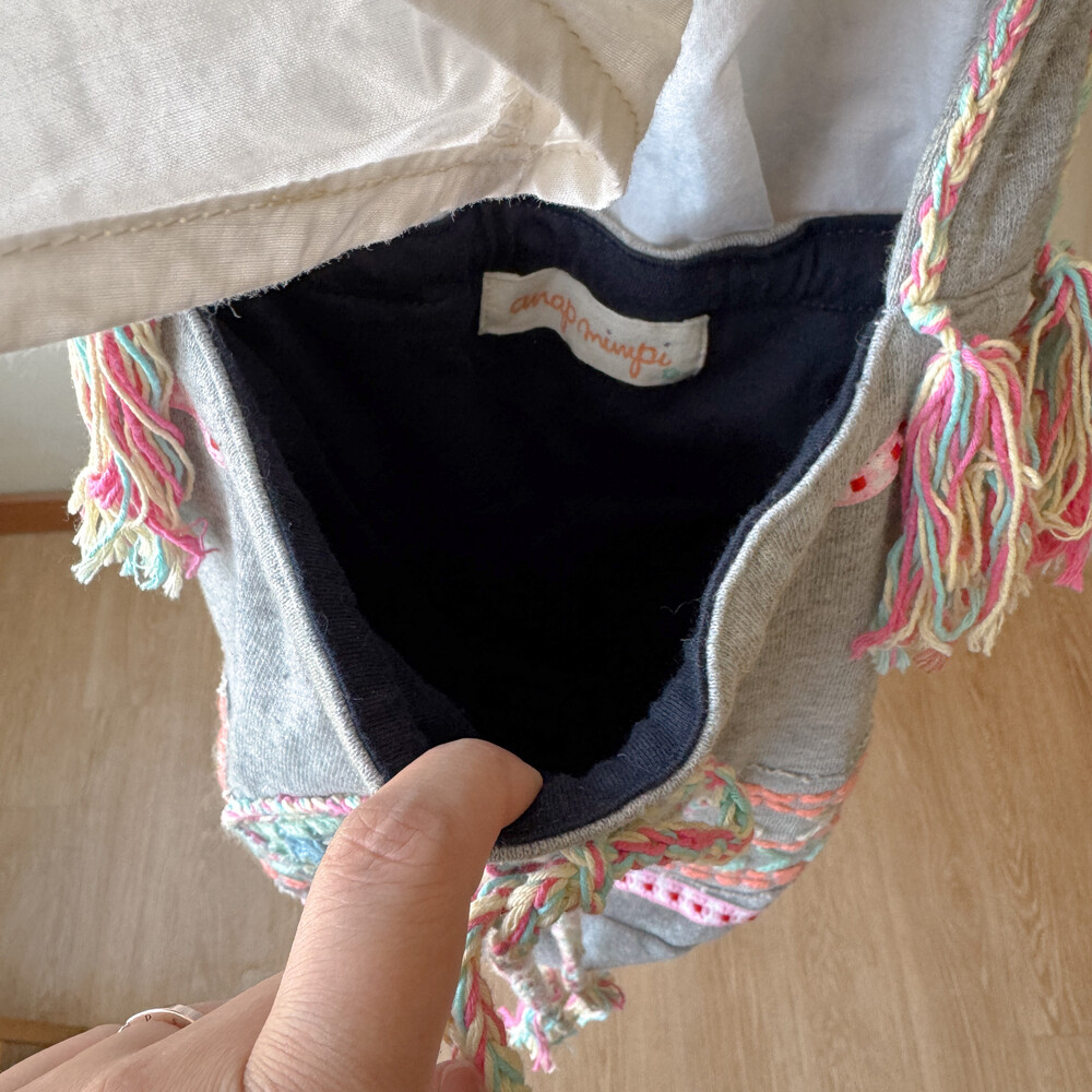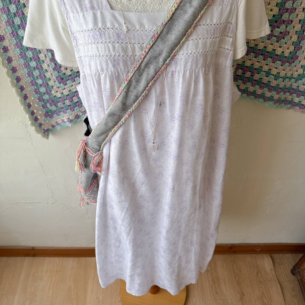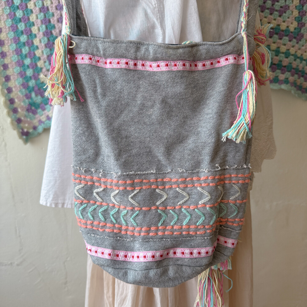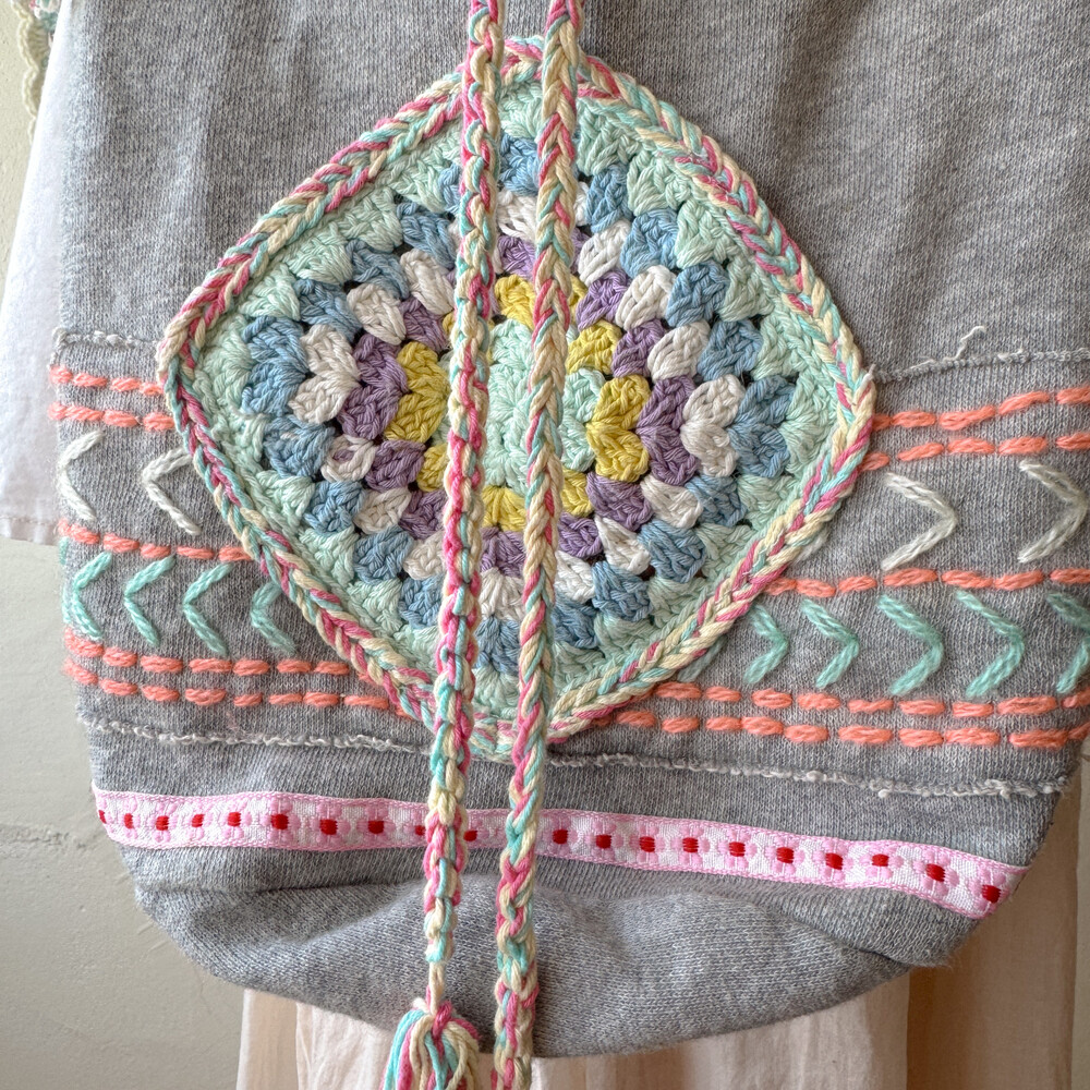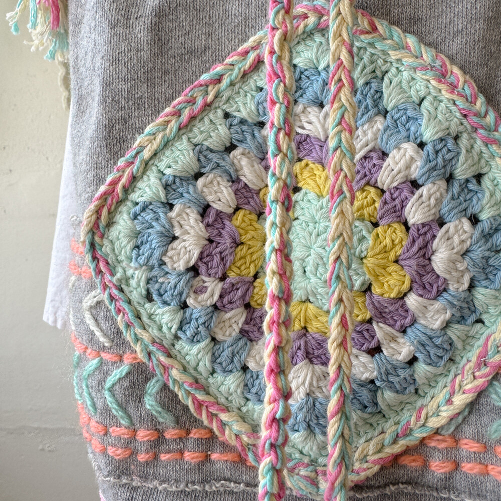 mori gray base granny square cross bag