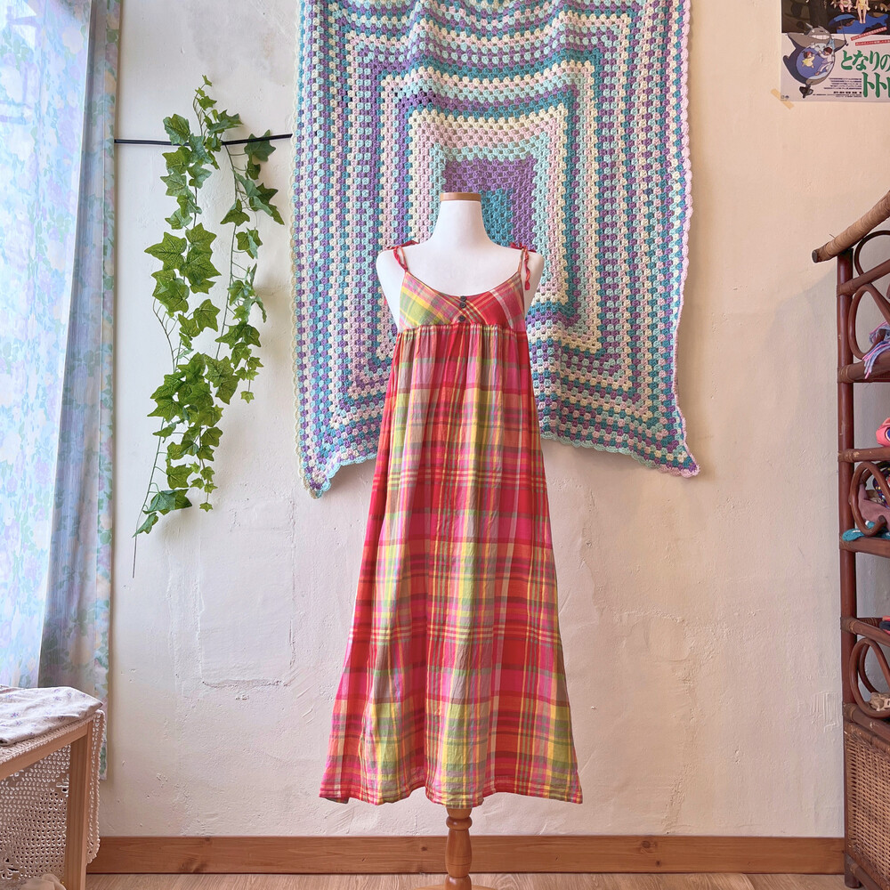 티티카카의 체크 끈원피스예요