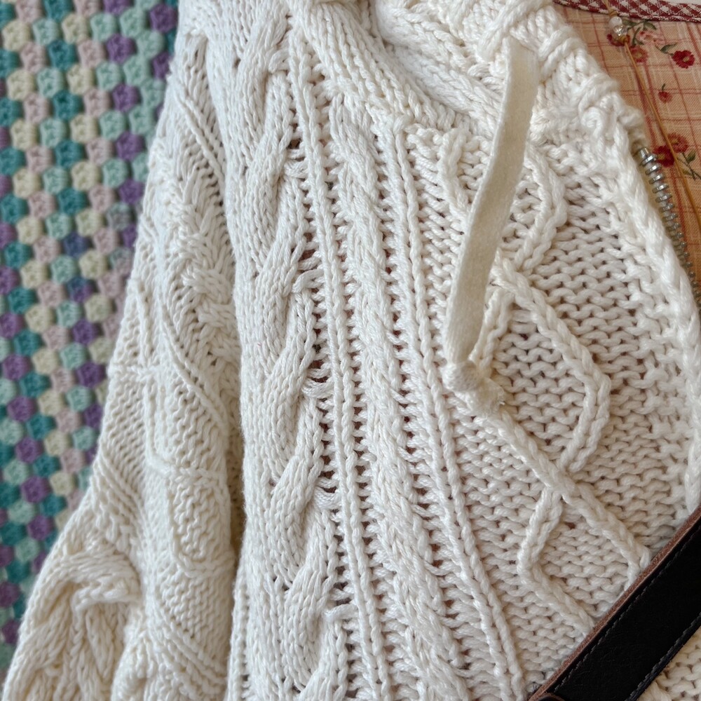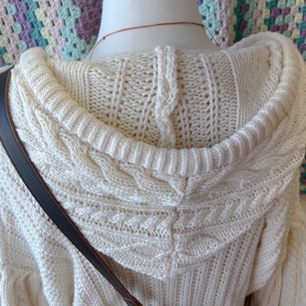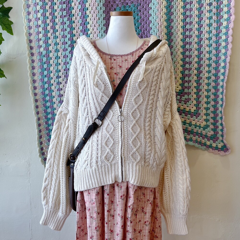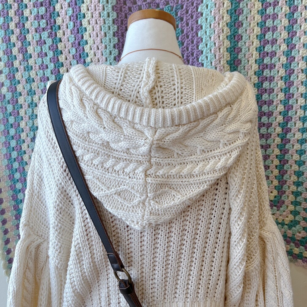 아이보리 색감의 케이블 후드 집업 가디건이에요