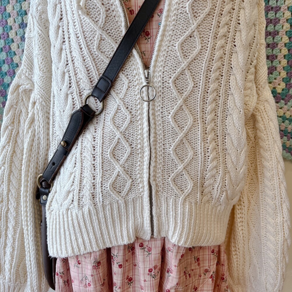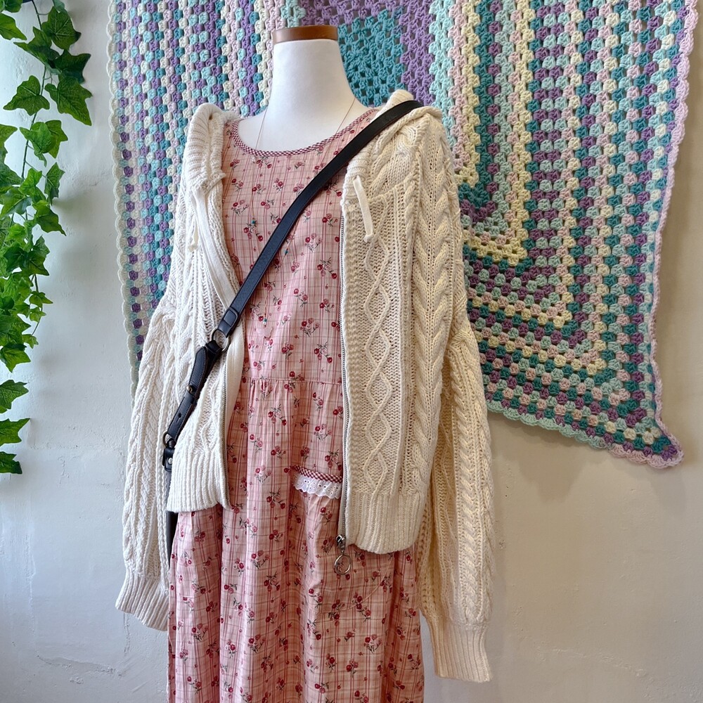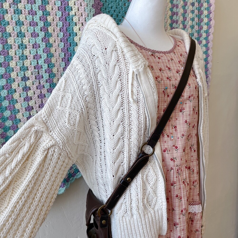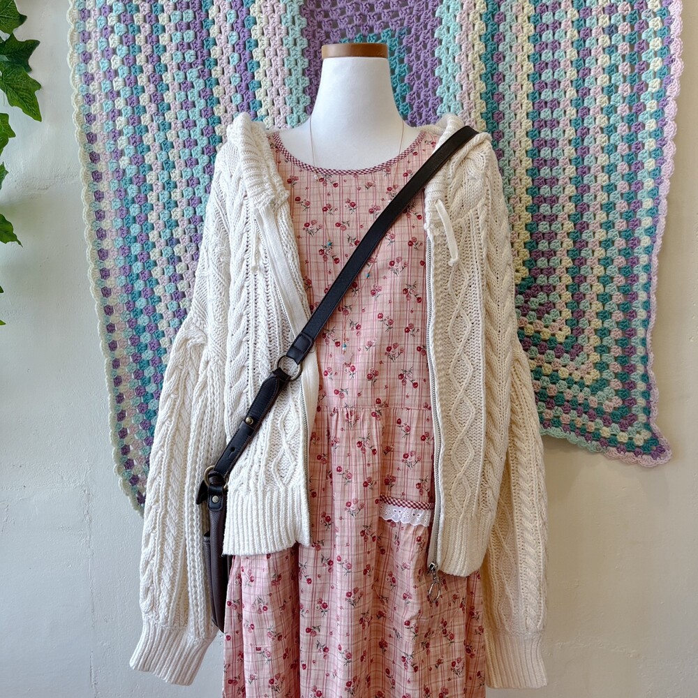 아이보리 색감의 케이블 후드 집업 가디건이에요