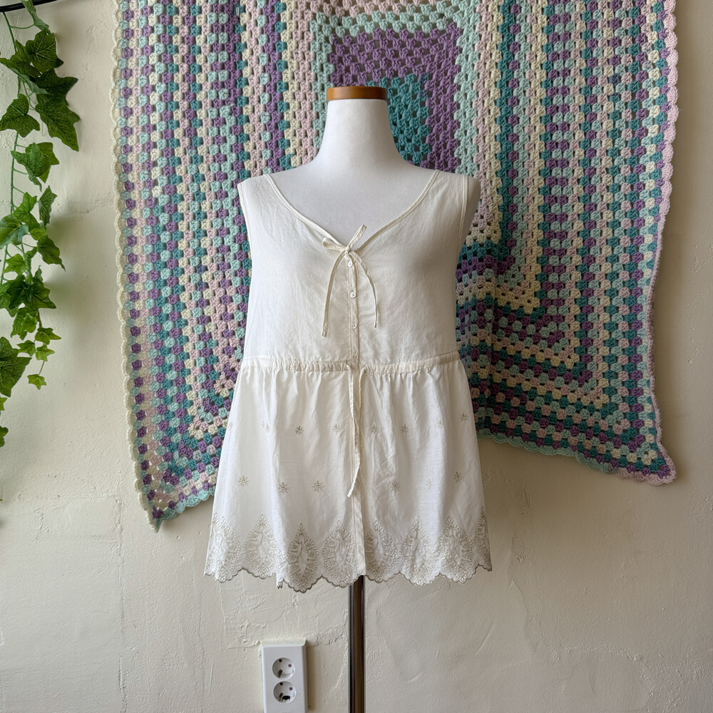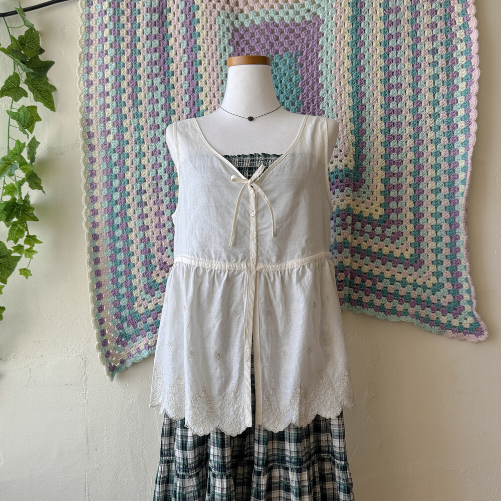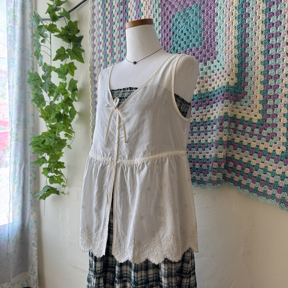 hemline embroidery button cotton vest