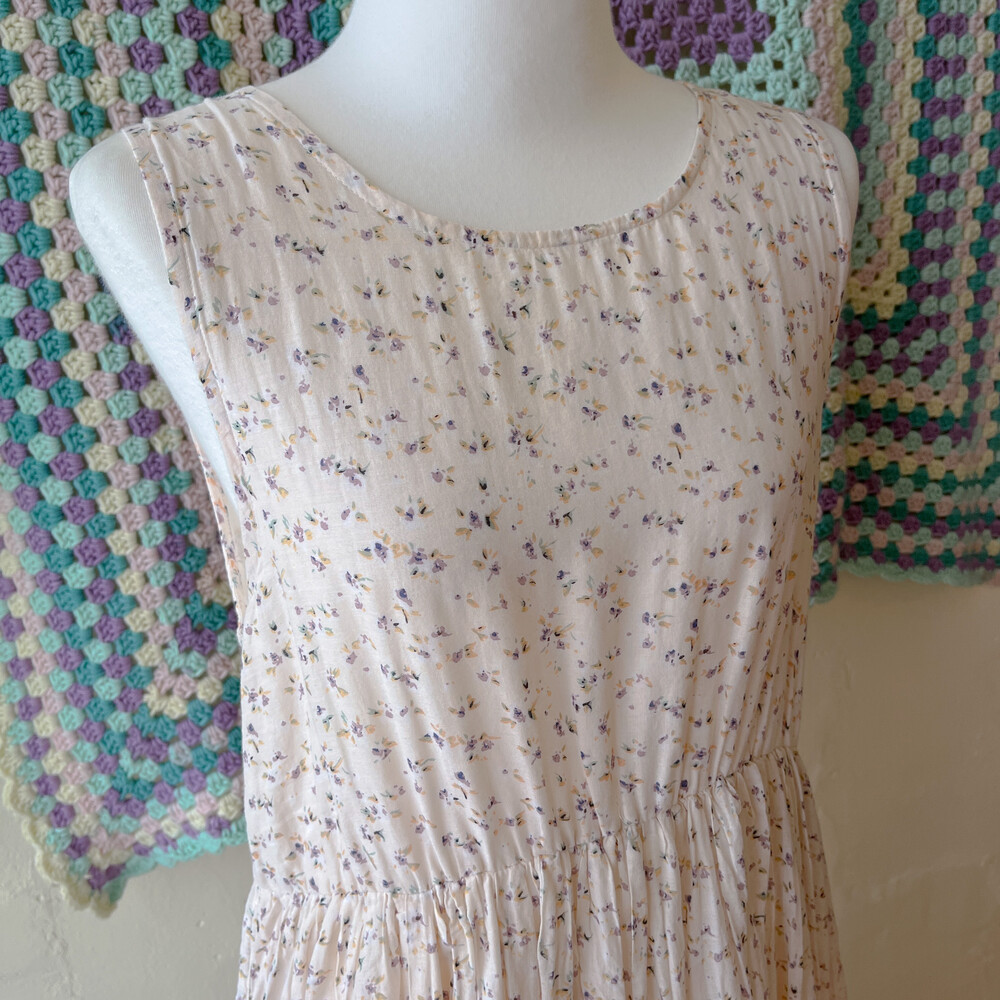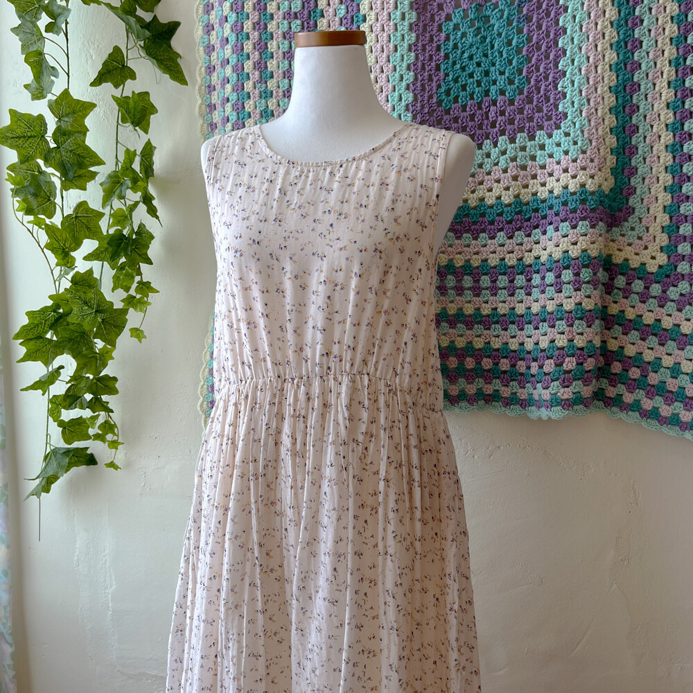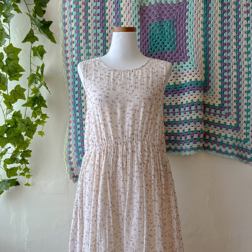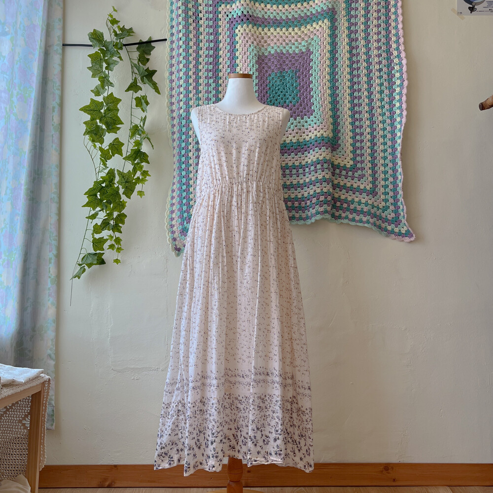 밀키한 색감의 잔꽃 민소매 원피스예요