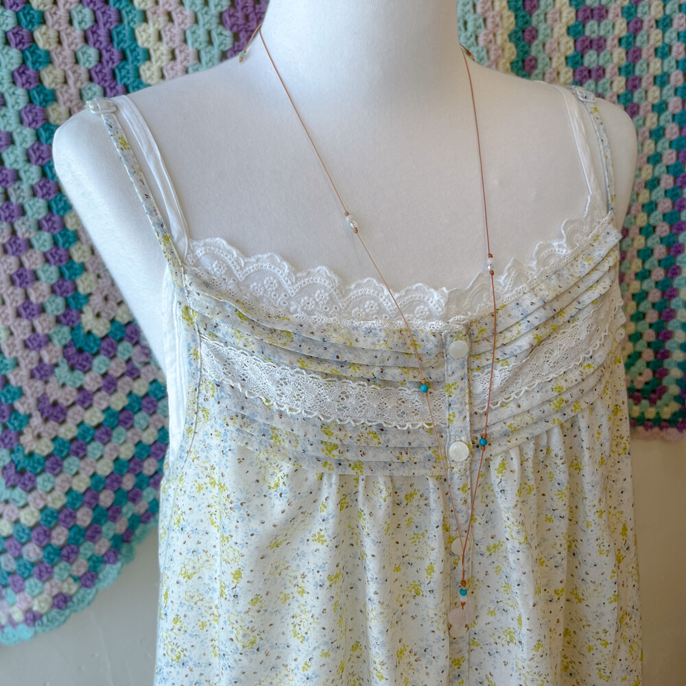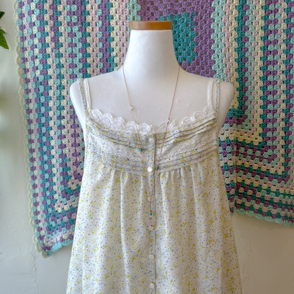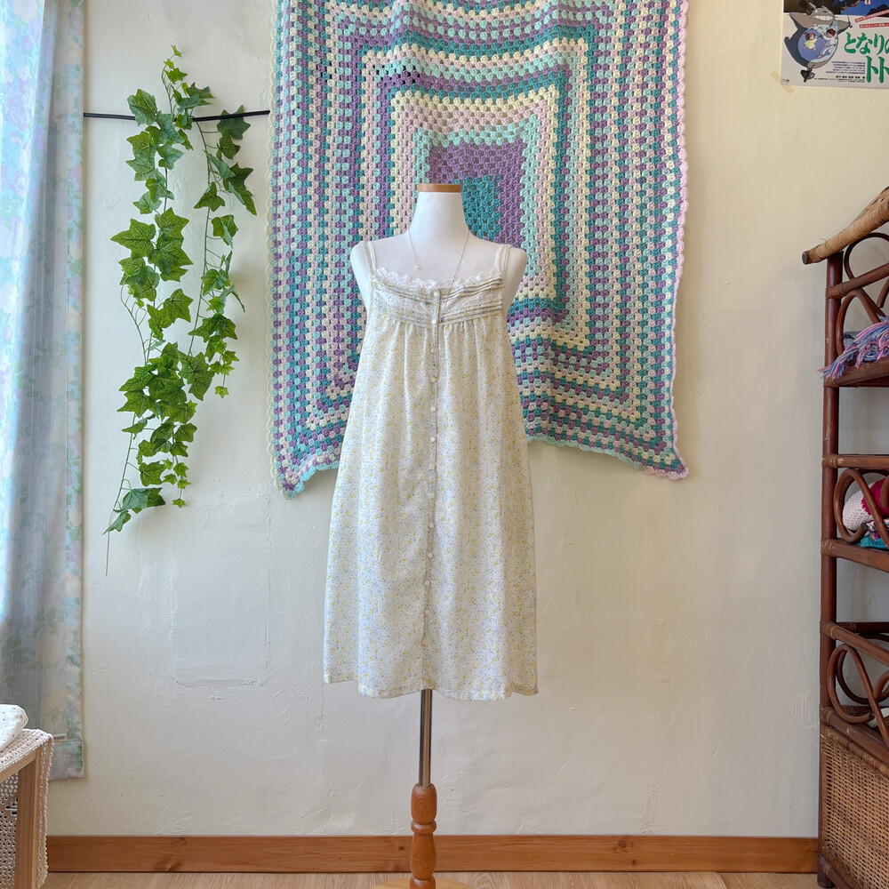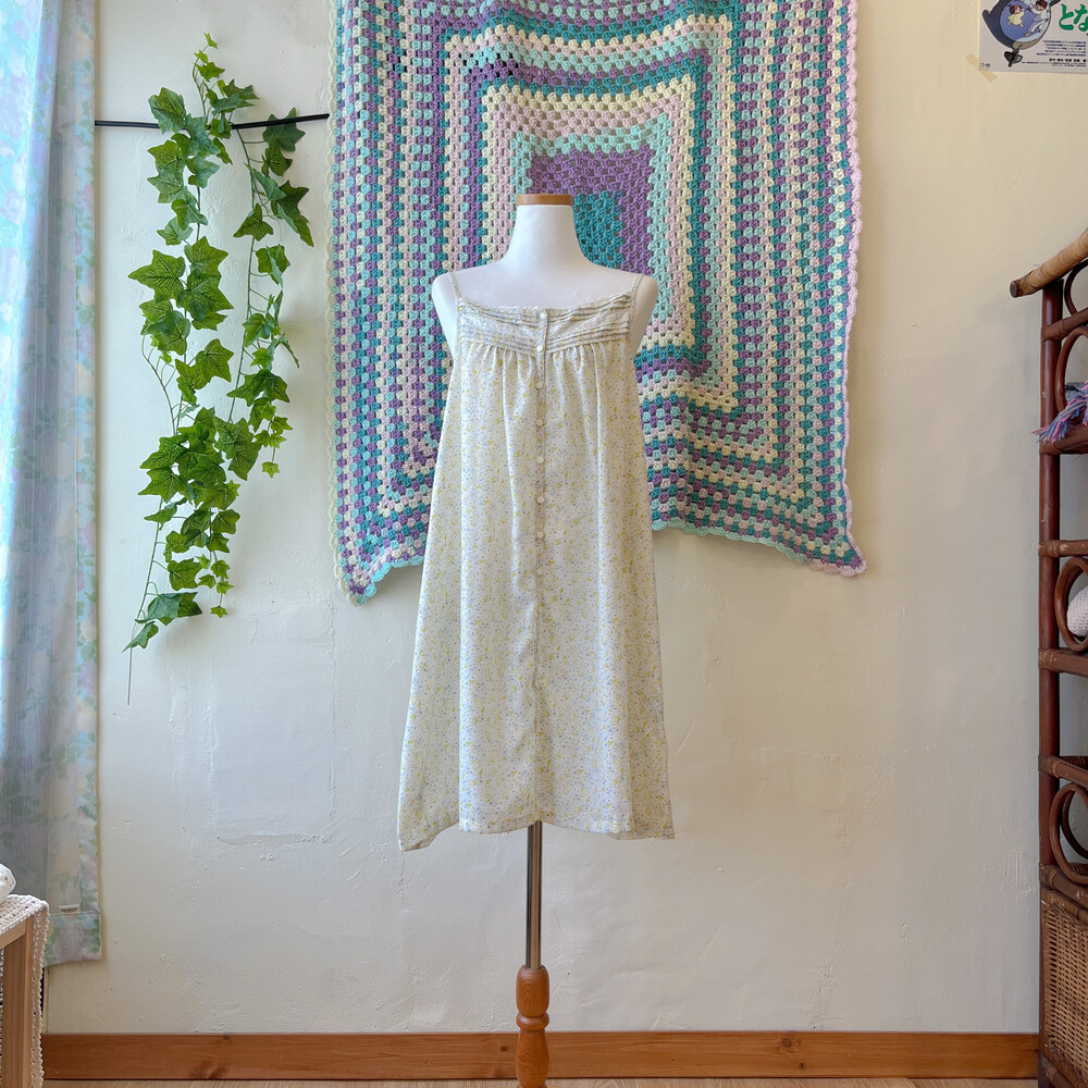 그린과 블루 잔꽃 패턴의 끈원피스예요