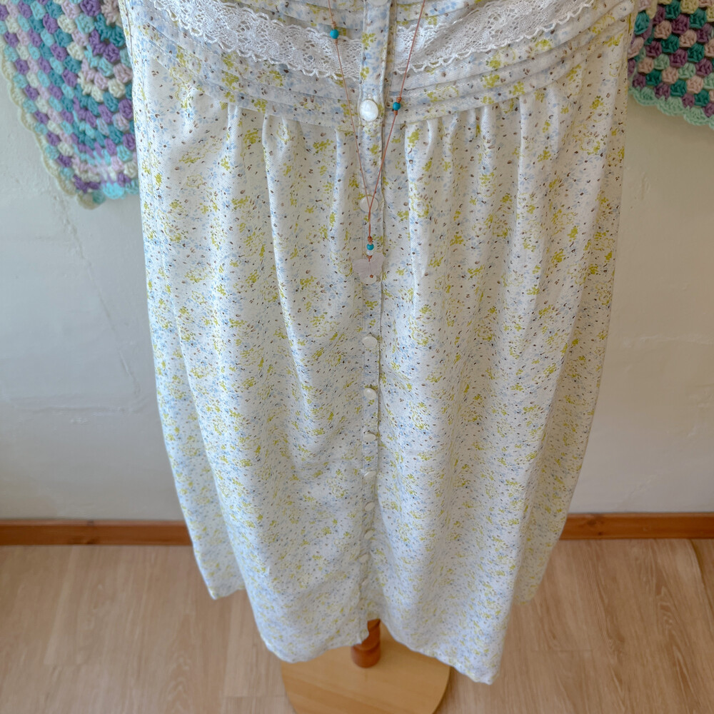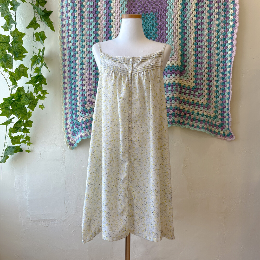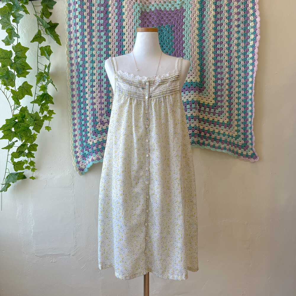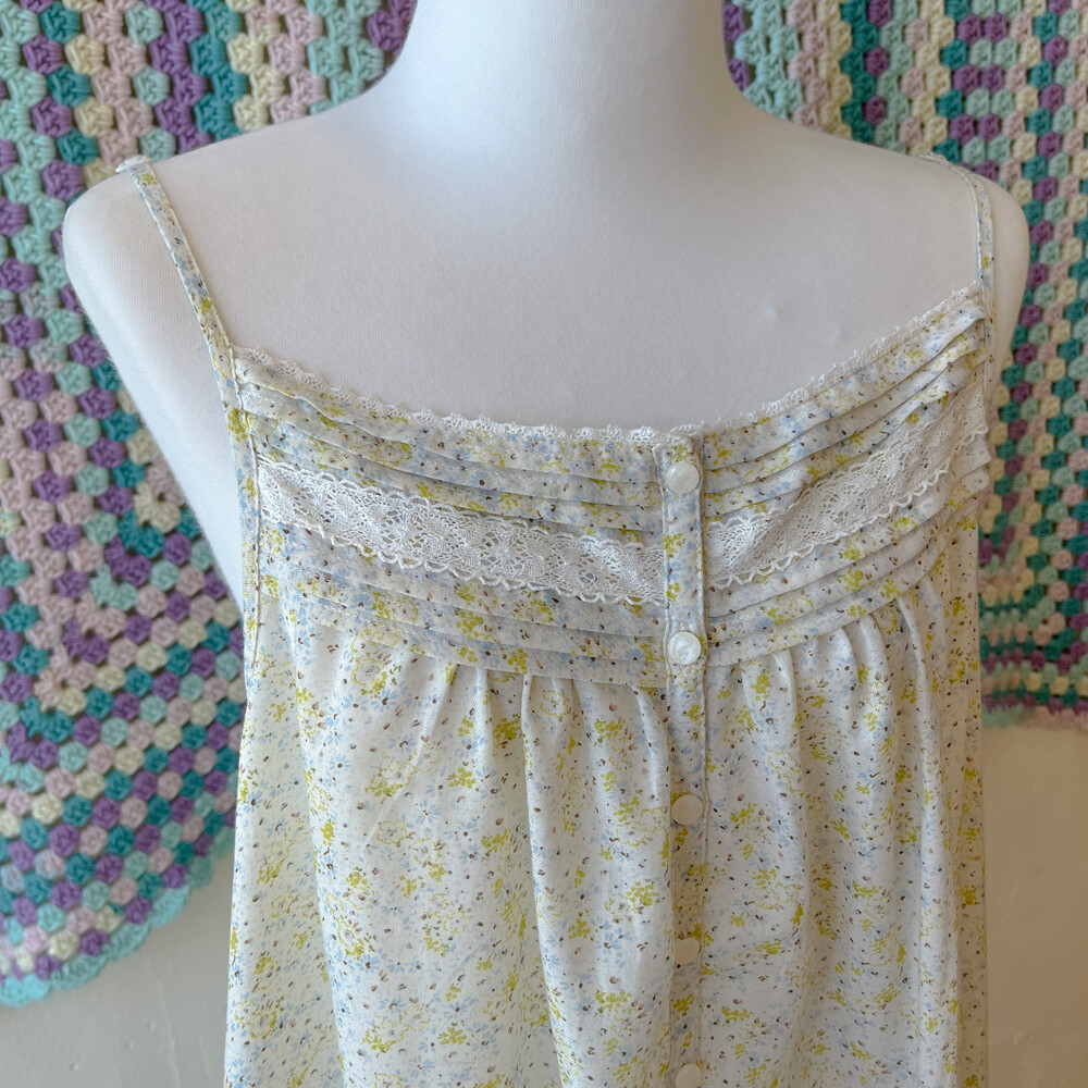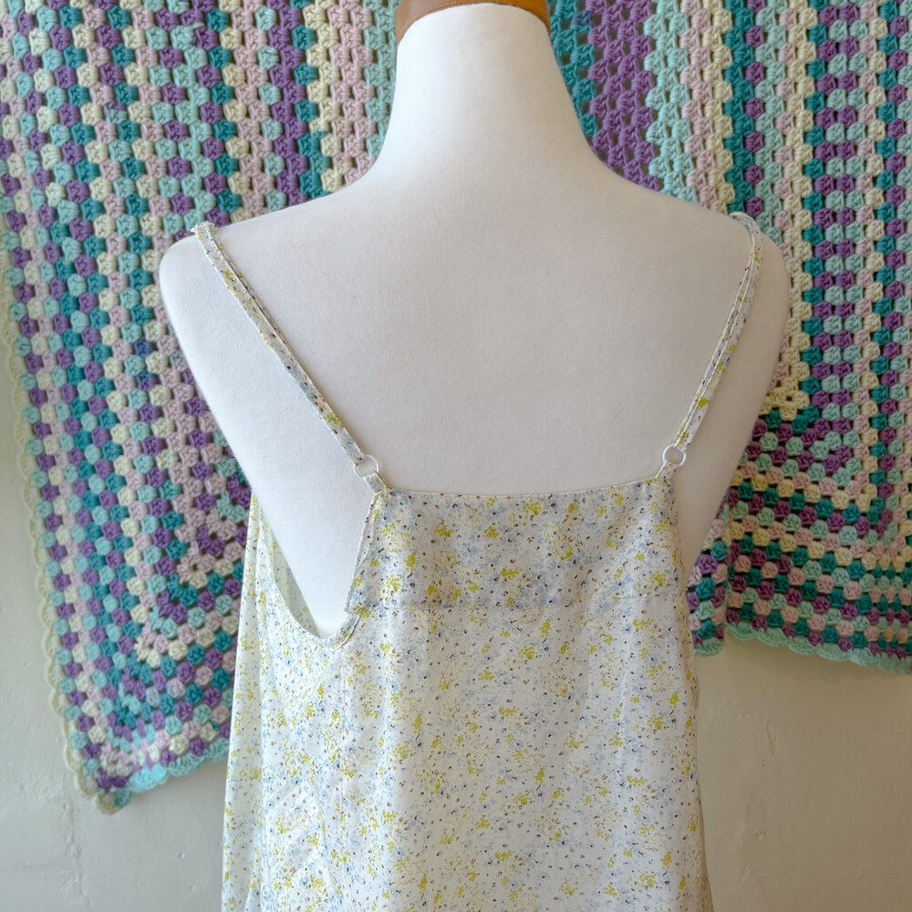 그린과 블루 잔꽃 패턴의 끈원피스예요