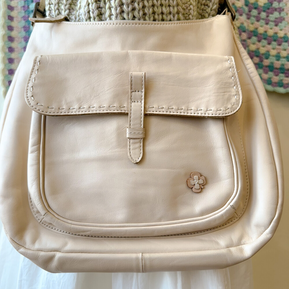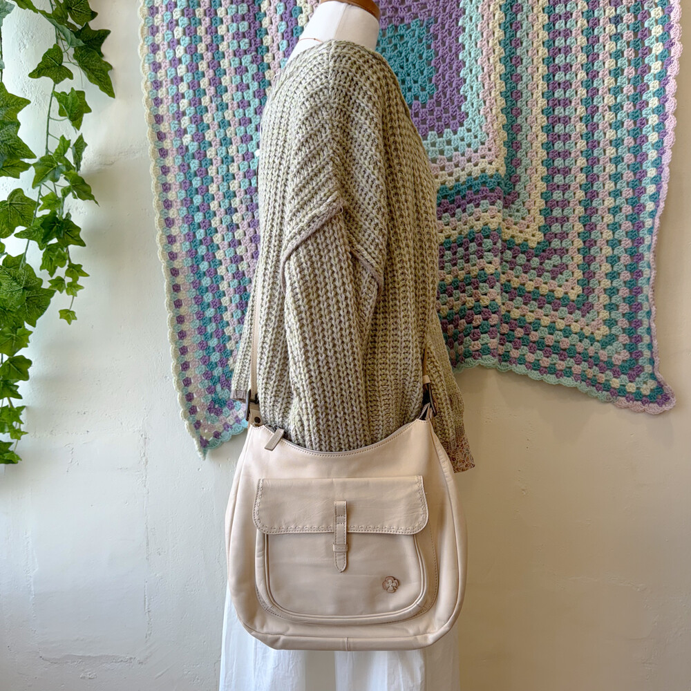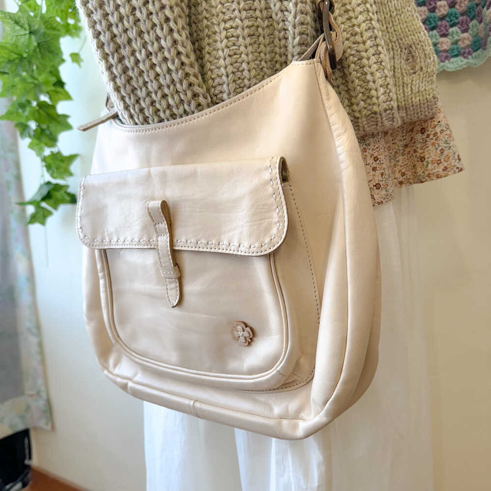 ivory flower point leather cross bag
