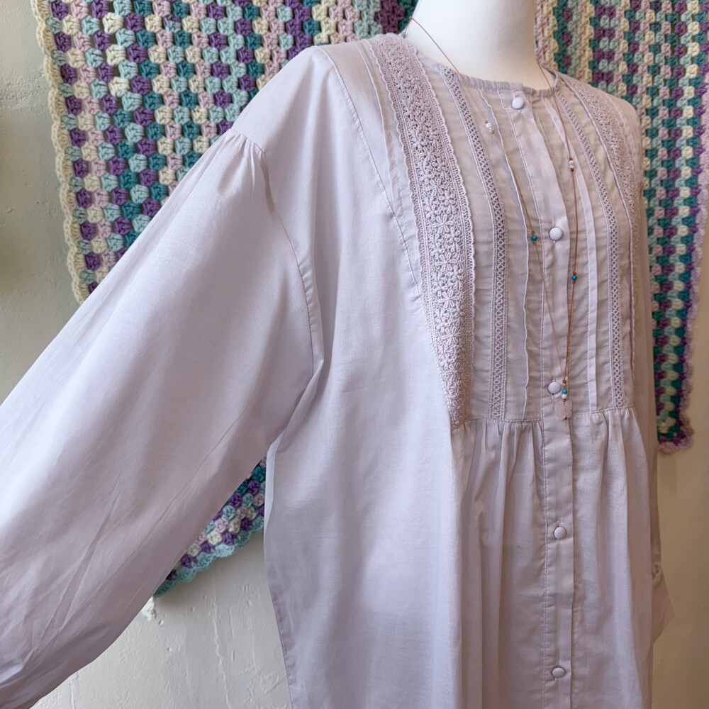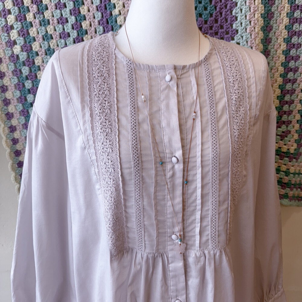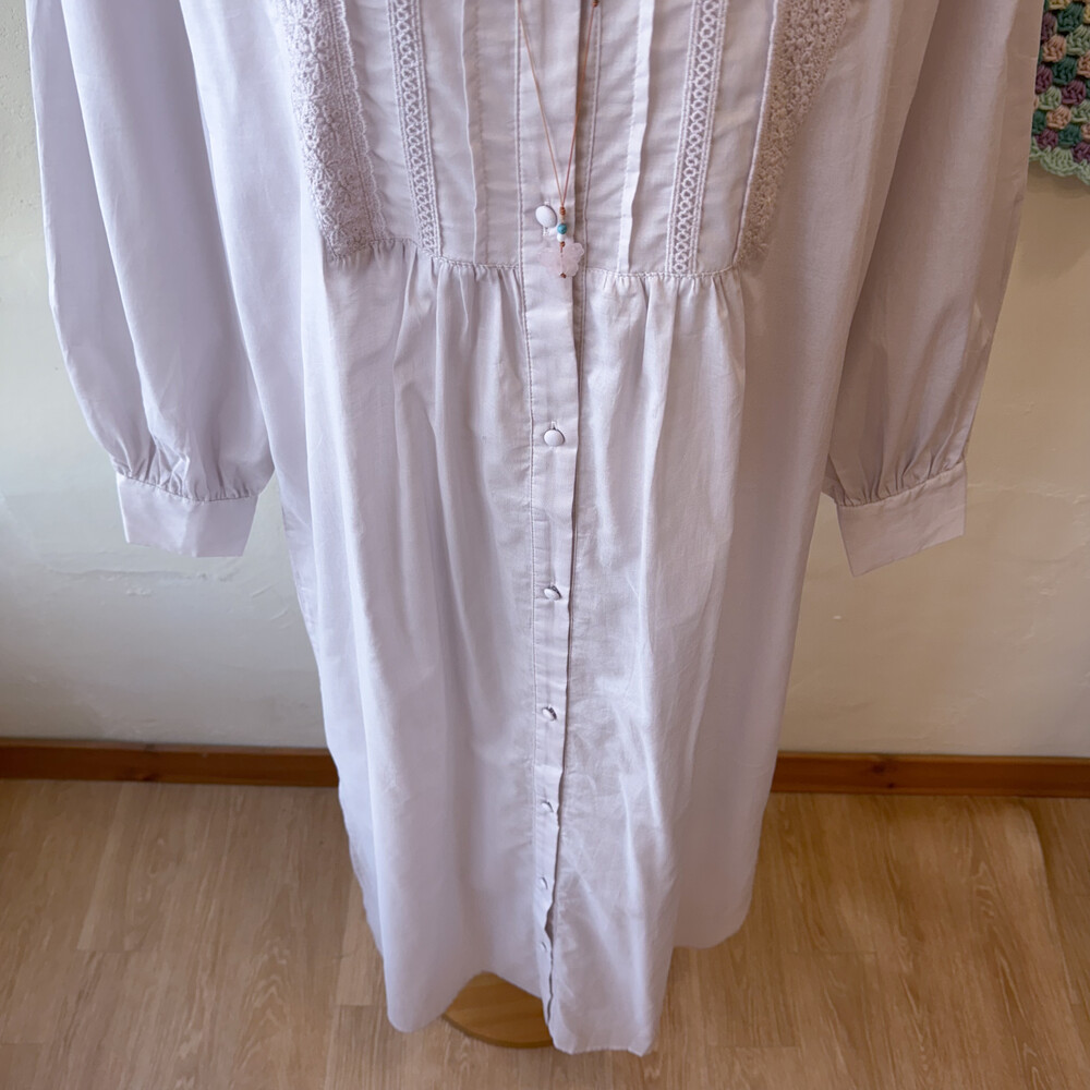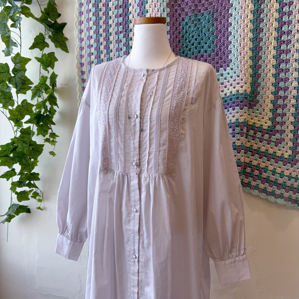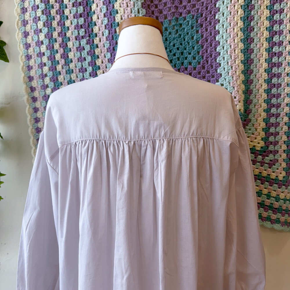 뮤트한 색감의 연보랏빛 롱셔츠 원피스예요