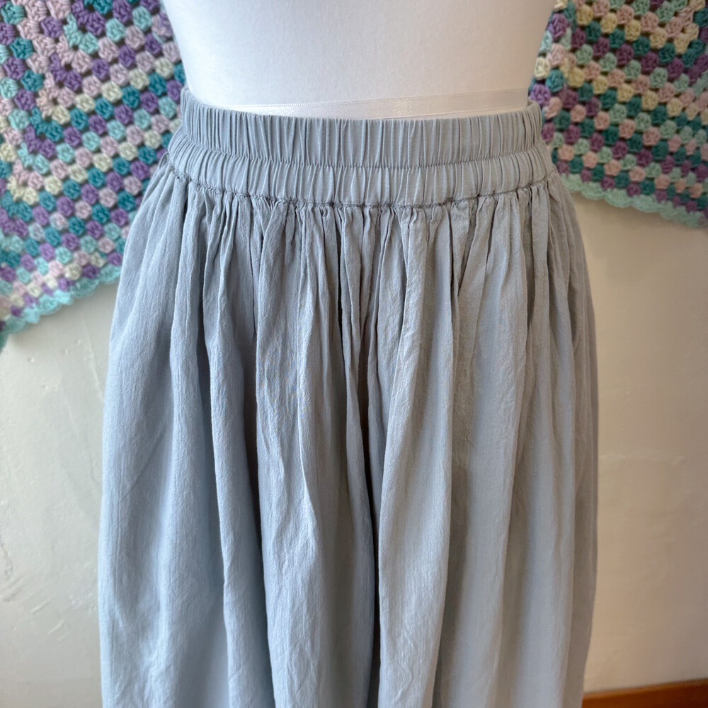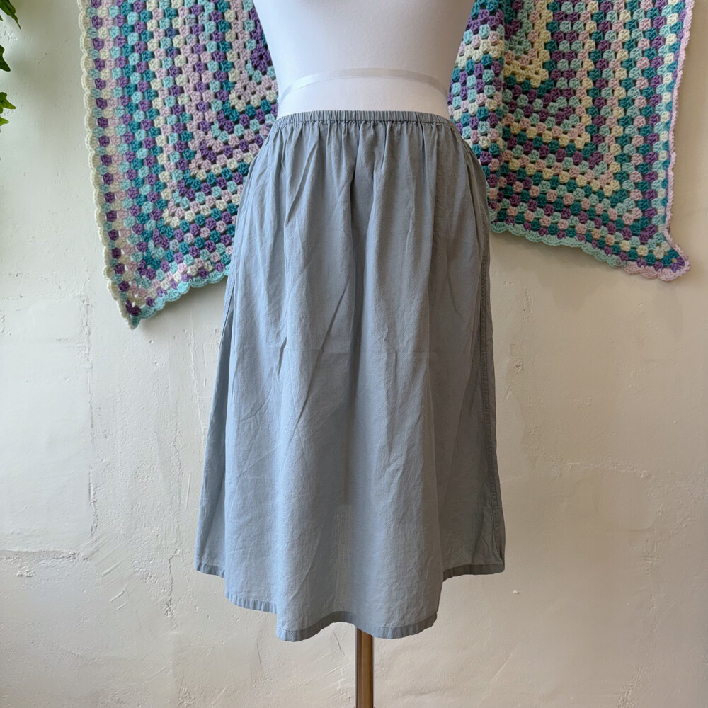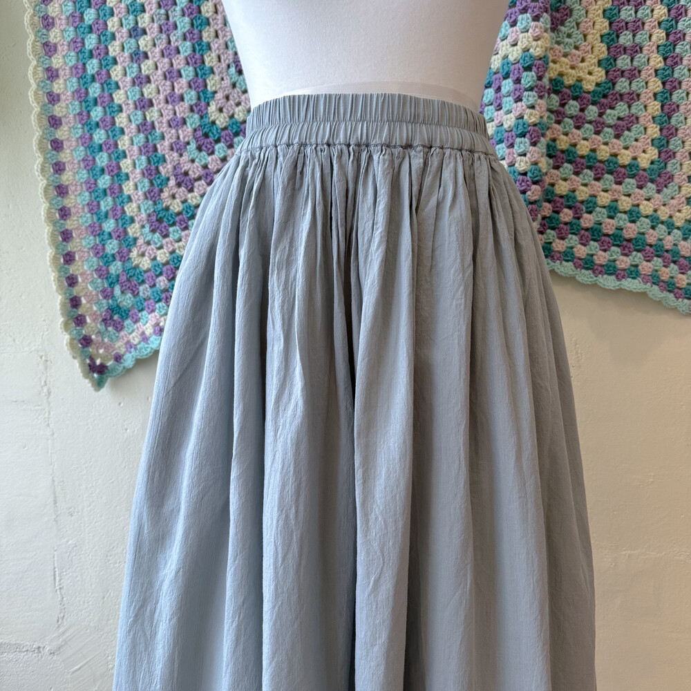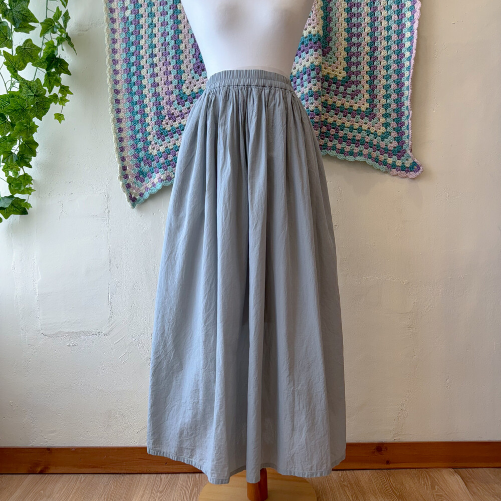 그레이와 블루가 오묘하게 섞인 색감의 코튼 스커트예요