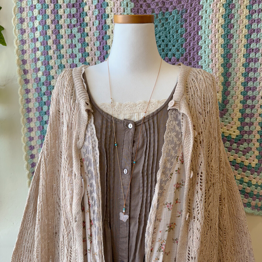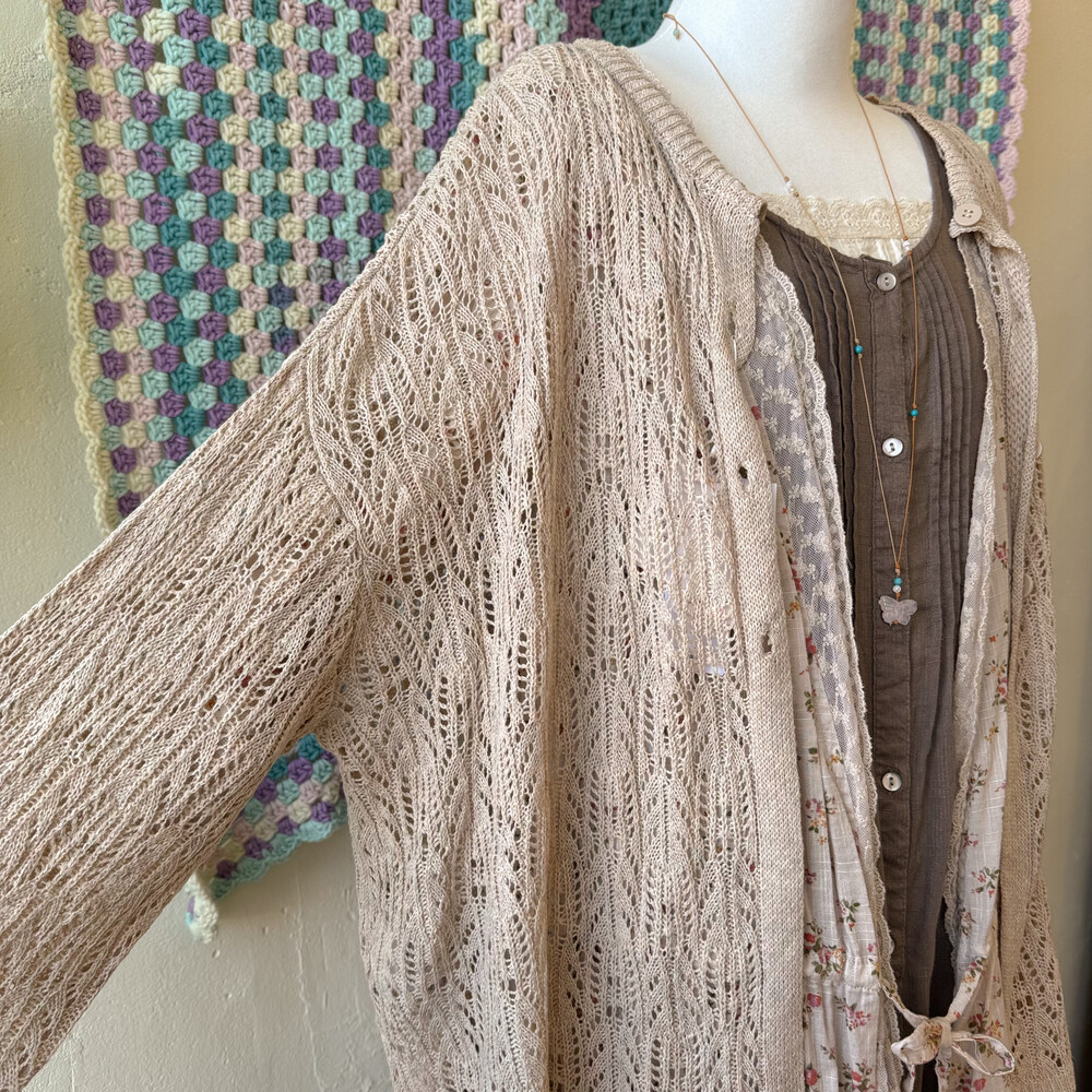 얇고 가벼운 가디건이에요, 여름까지도 입을 수 있을 것 같아요!