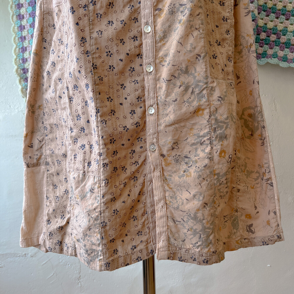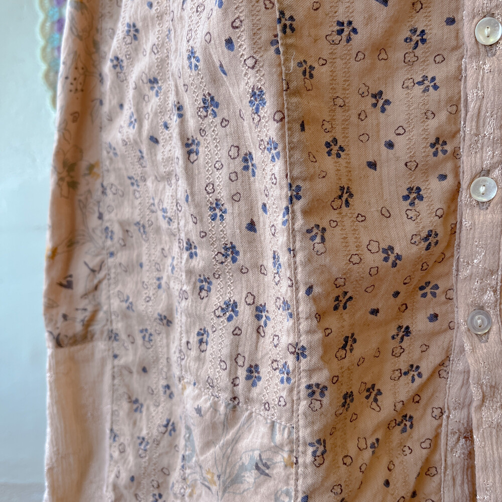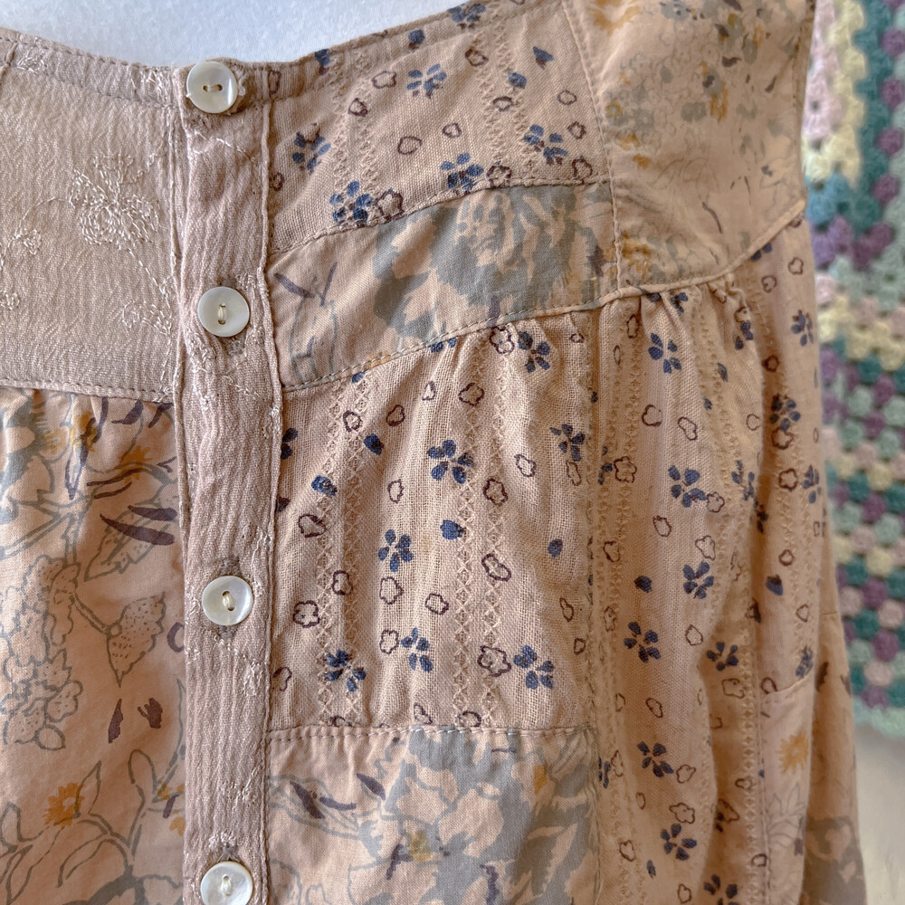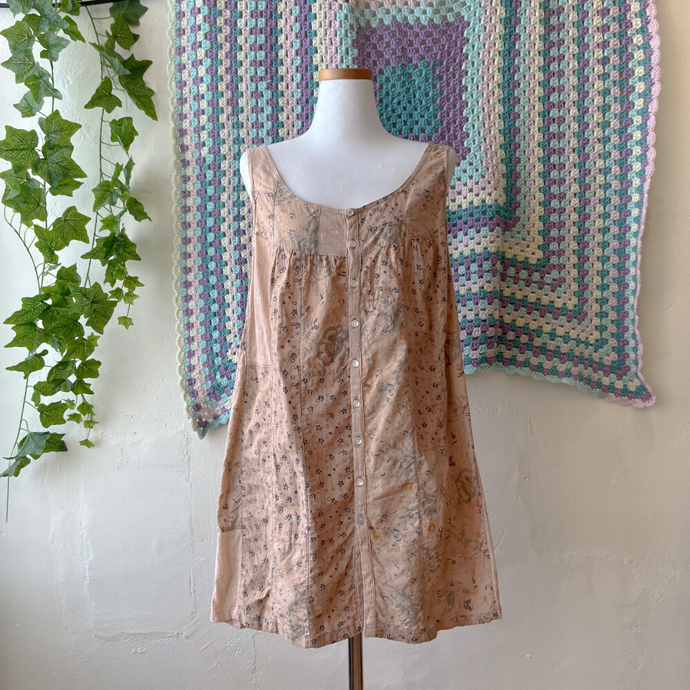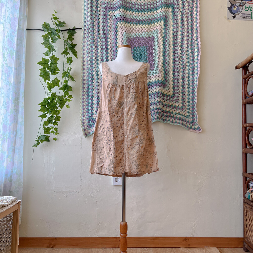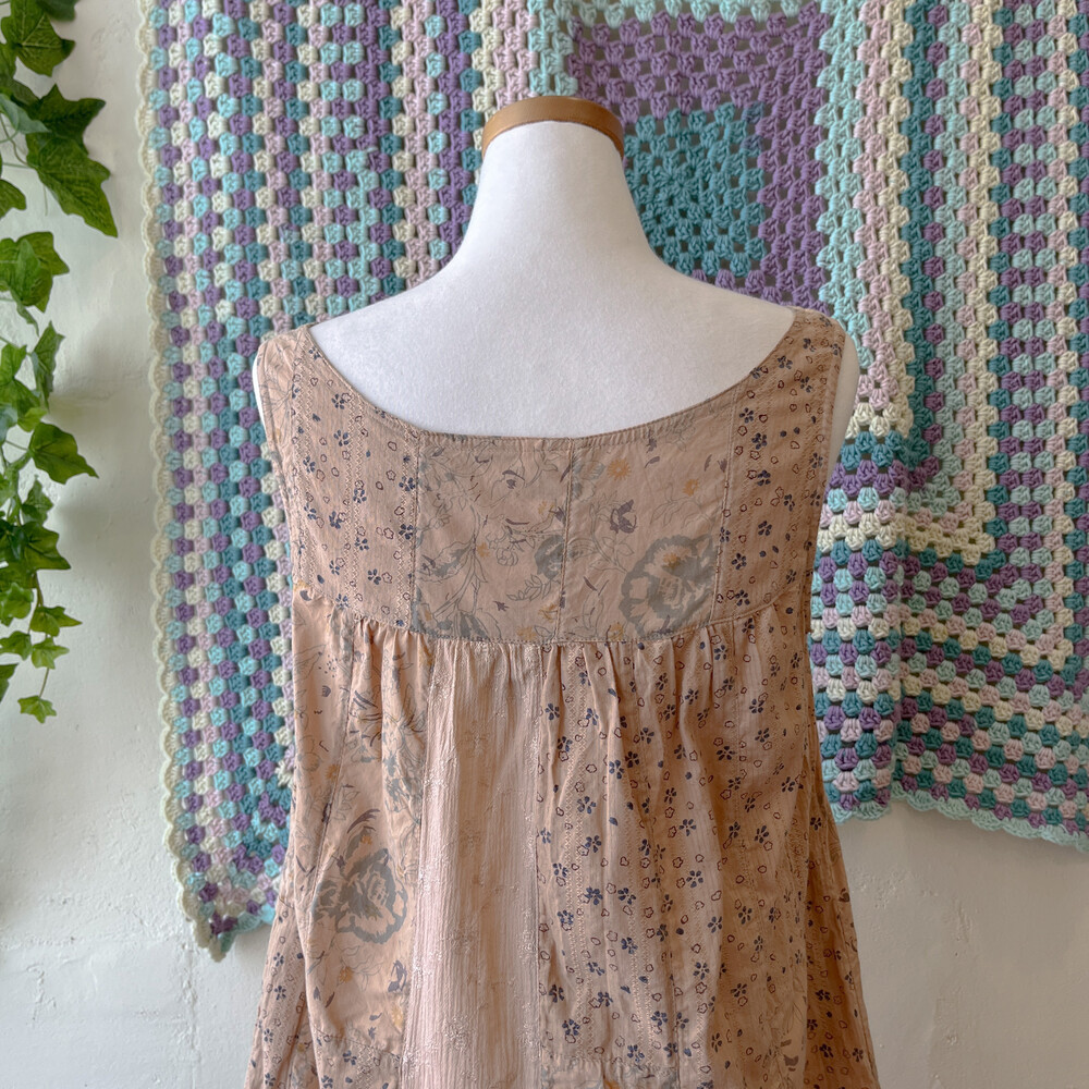 연한 브라운 색감의 패치워크 민소매 원피스에요