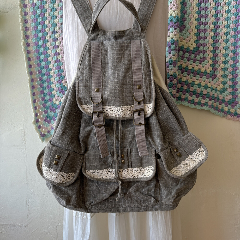 dark gray lace point 3 pocket backpack