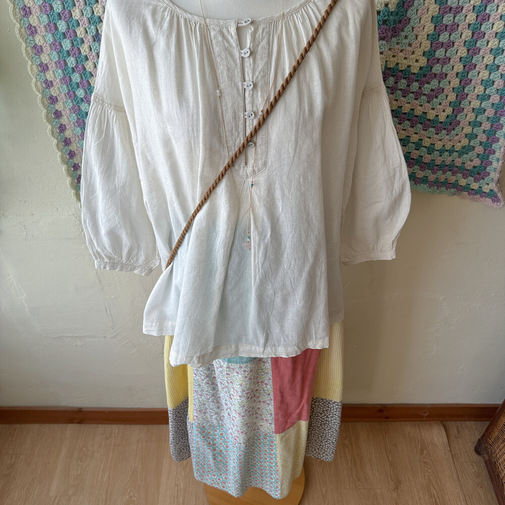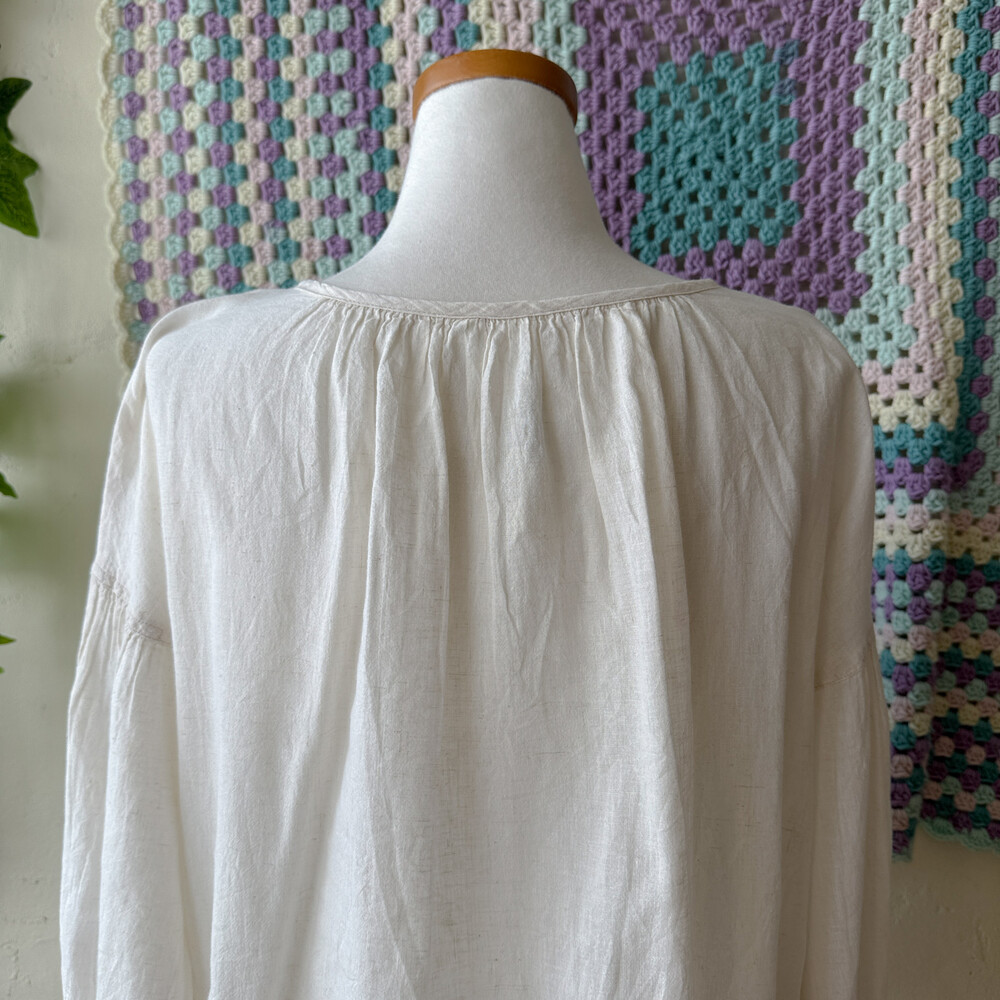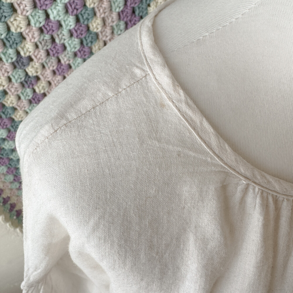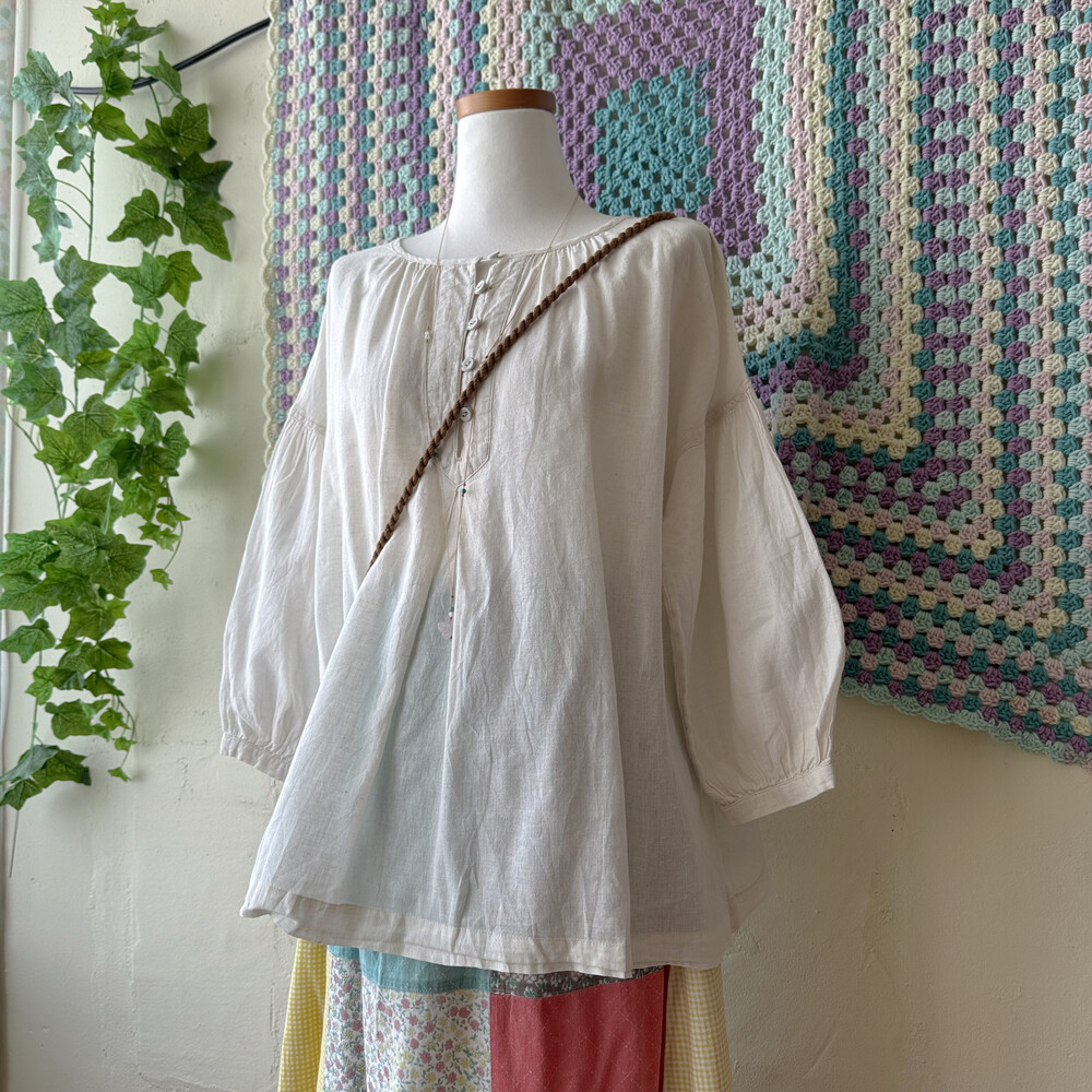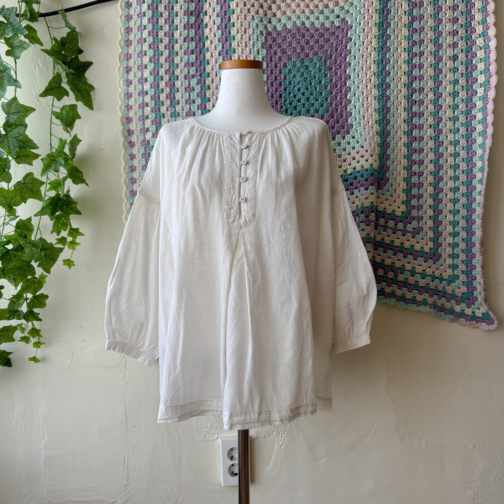 밀크색에 가까운 밝은 오트밀 블라우스예요