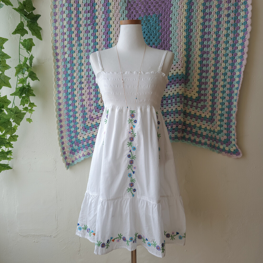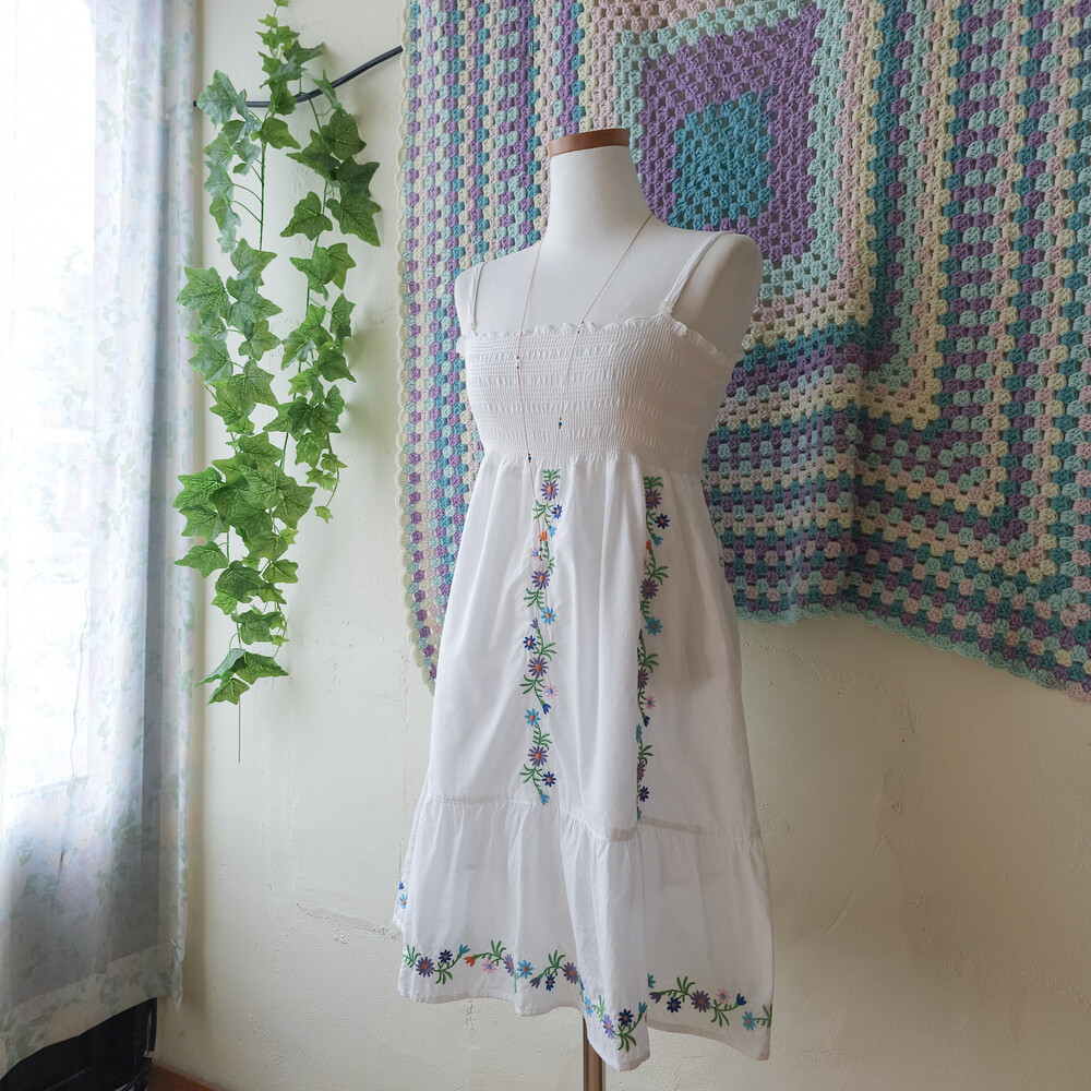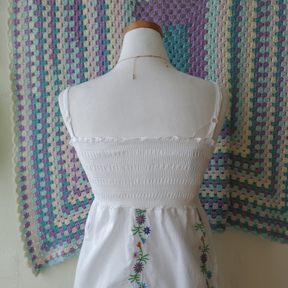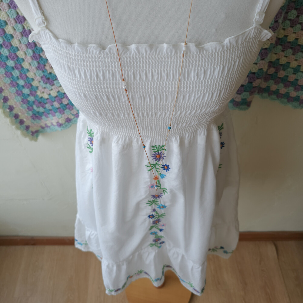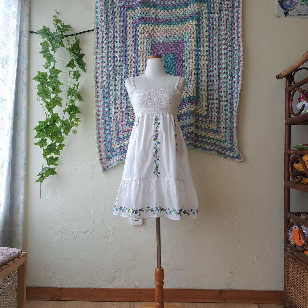 자수 포인트의 미니 끈원피스예요