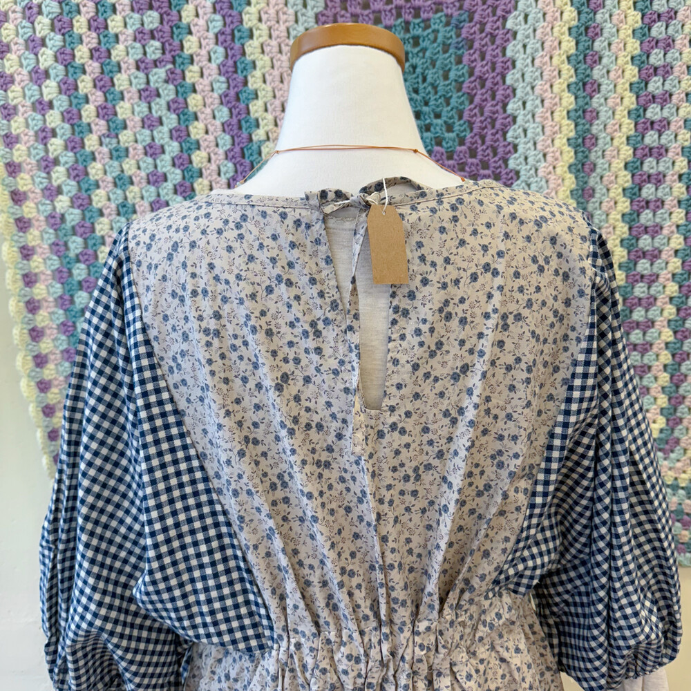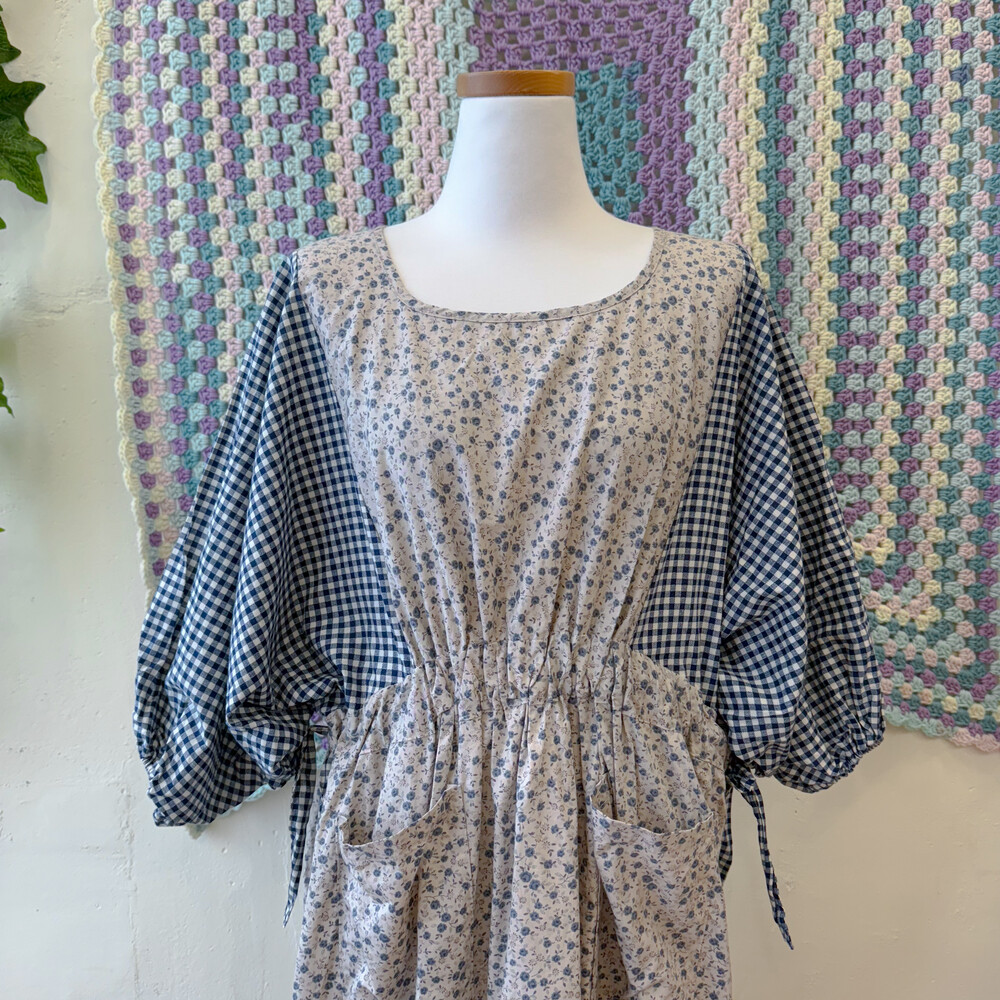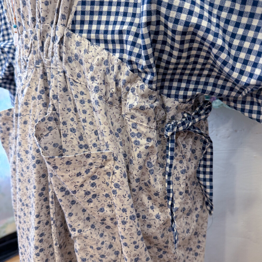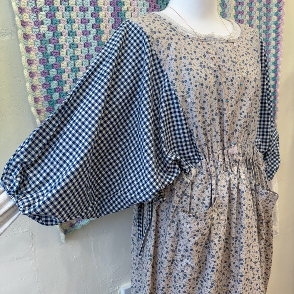 팔부분과 밑단은 체크 원단이고 가운데는 꽃무늬 원단이에요!