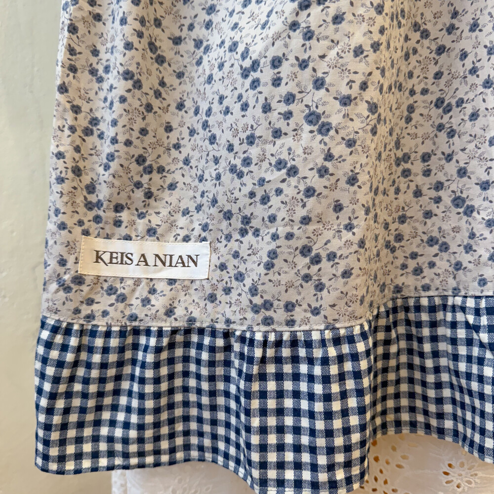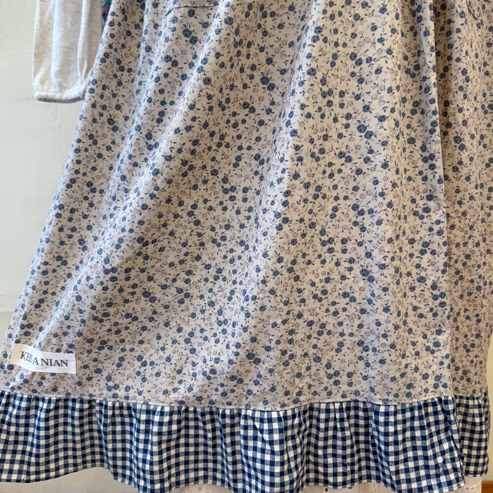 네이비 색감의 체크, 꽃무늬 원피스예요