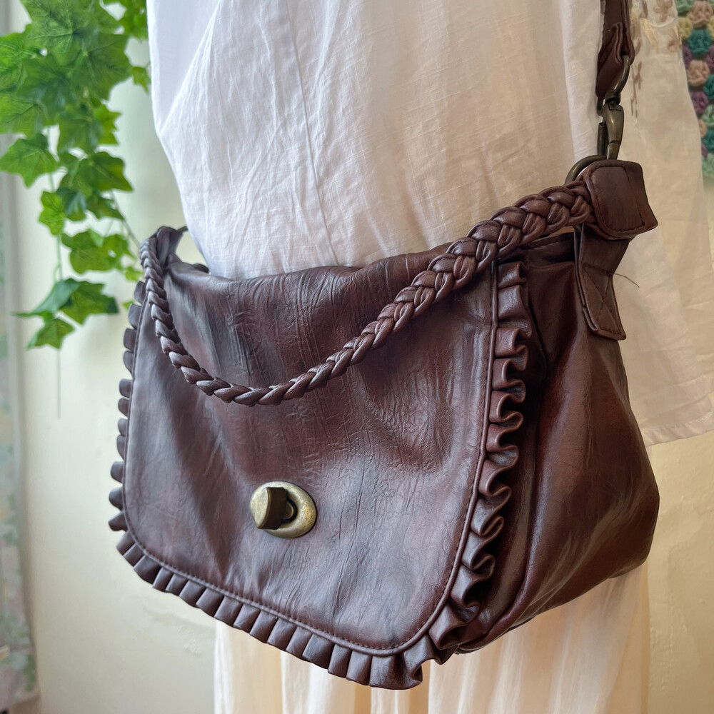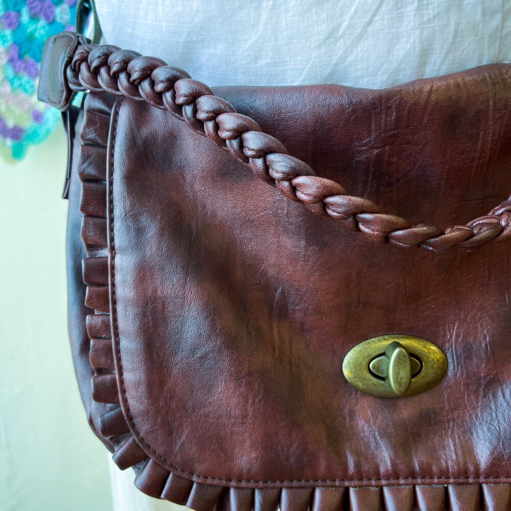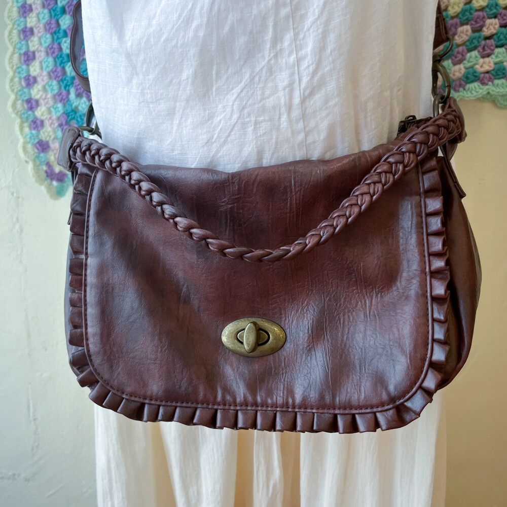 brown twist strap point cross bag