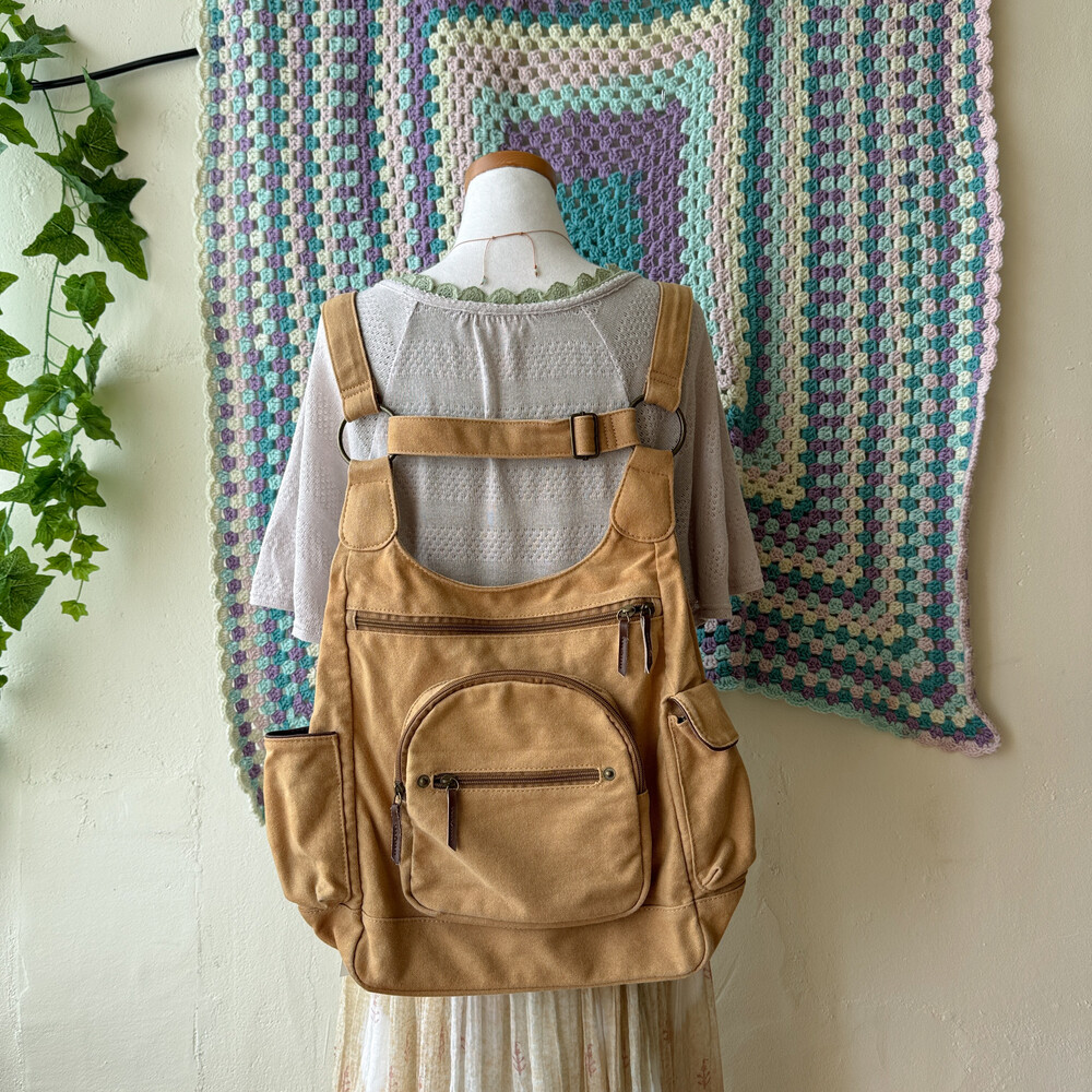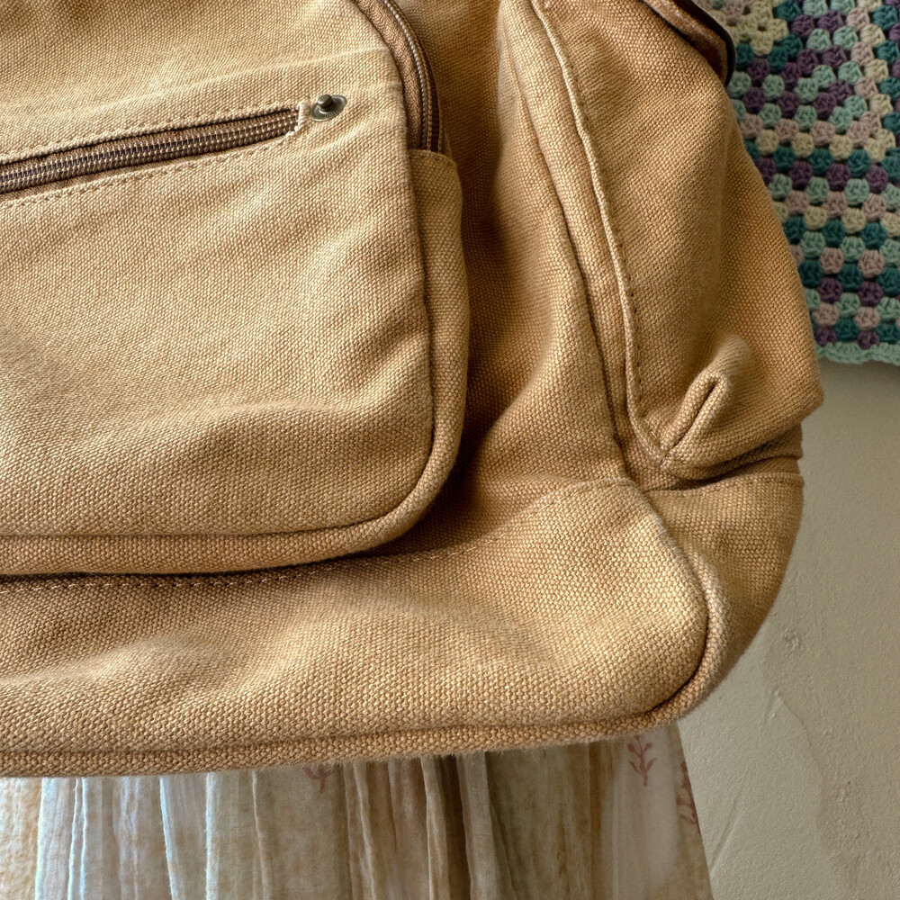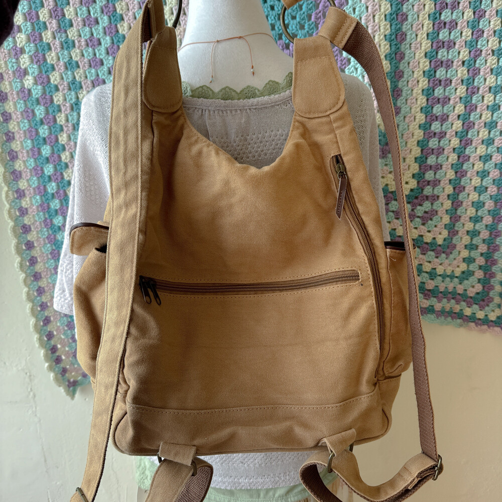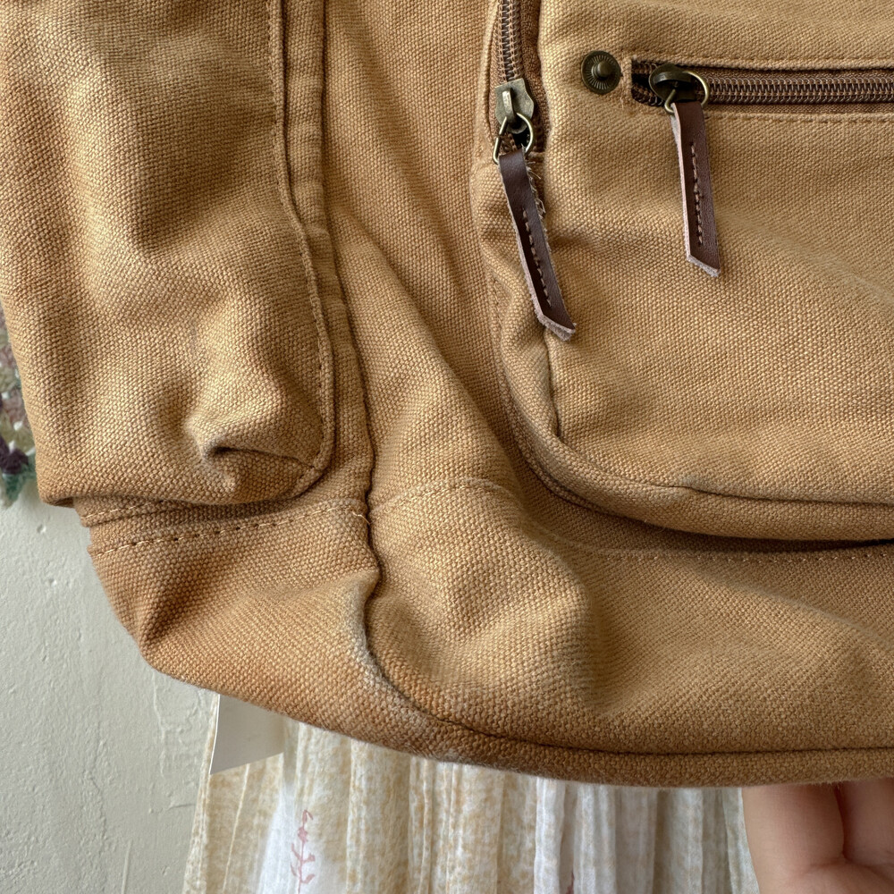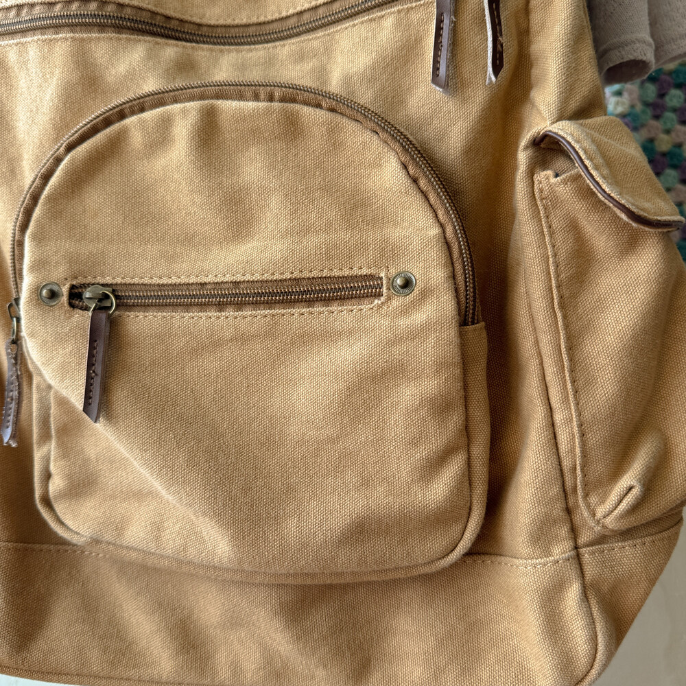 camel vintage pocket strap backpack