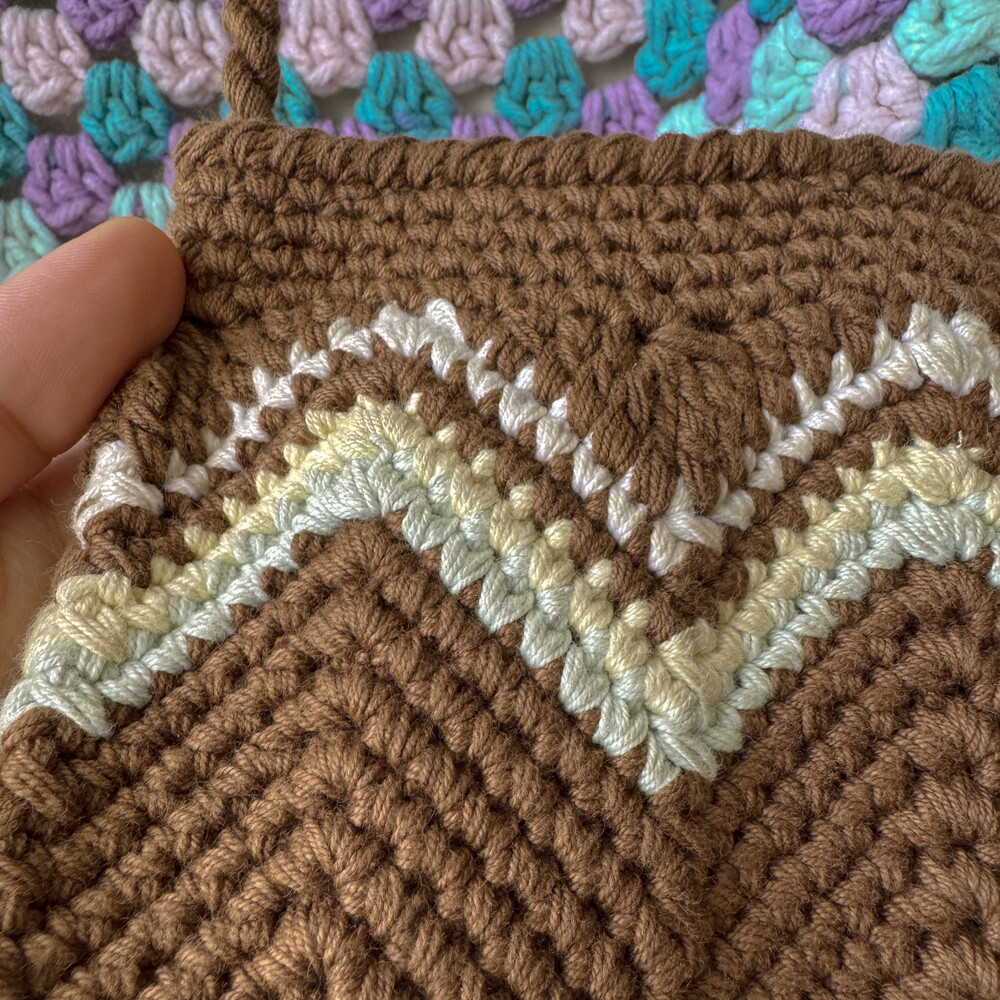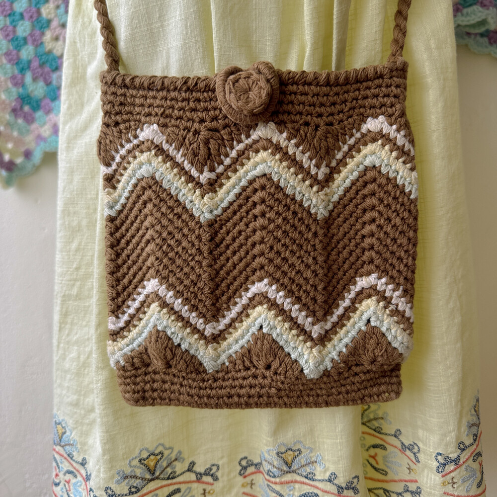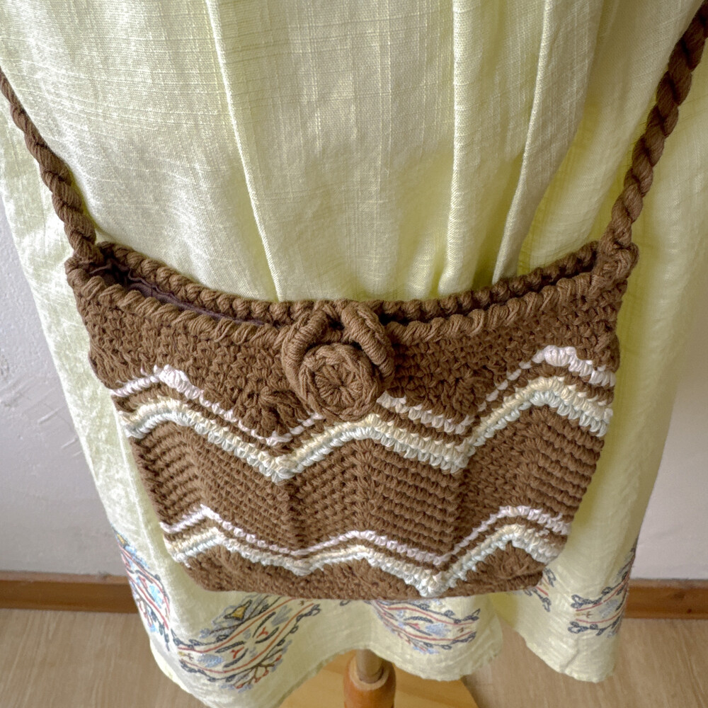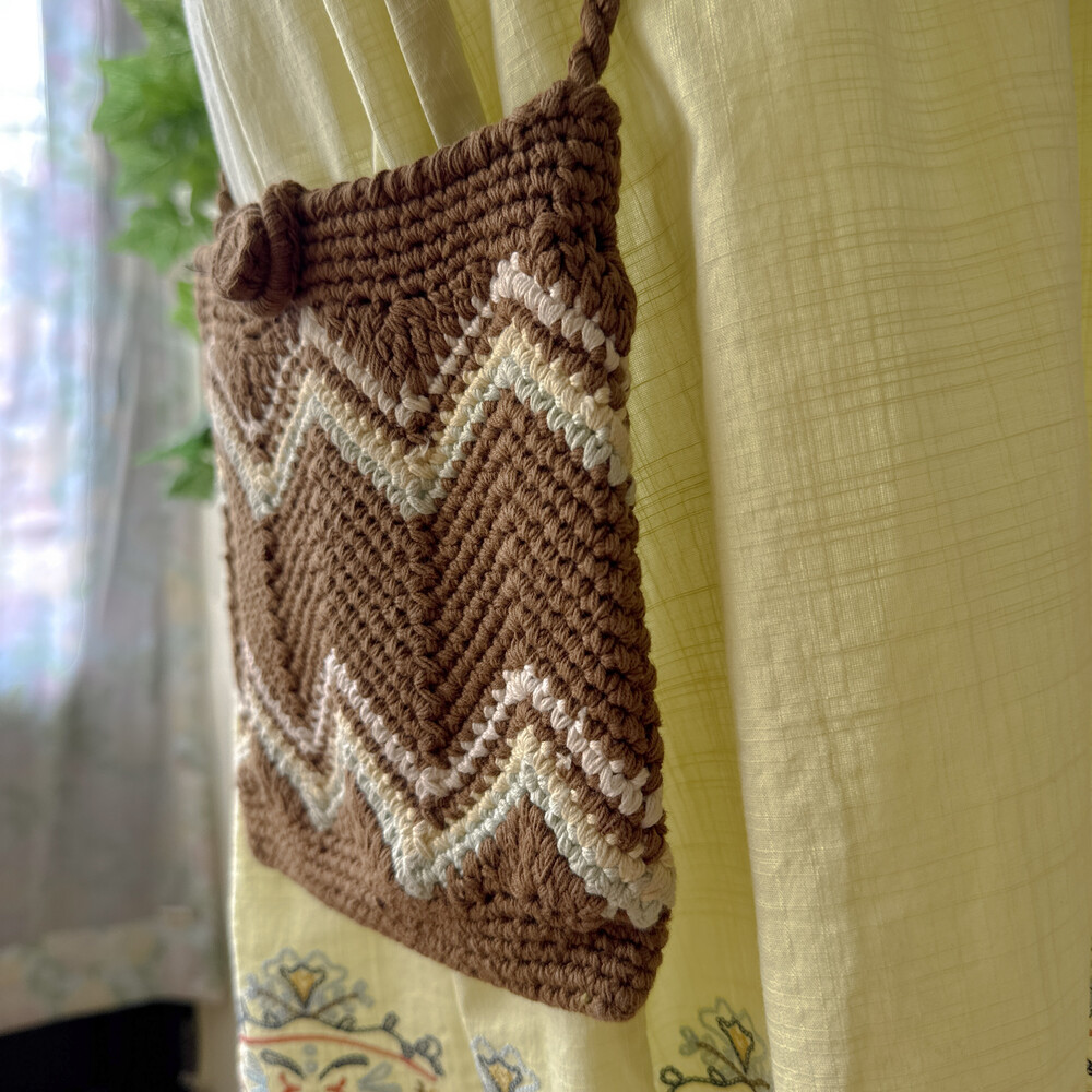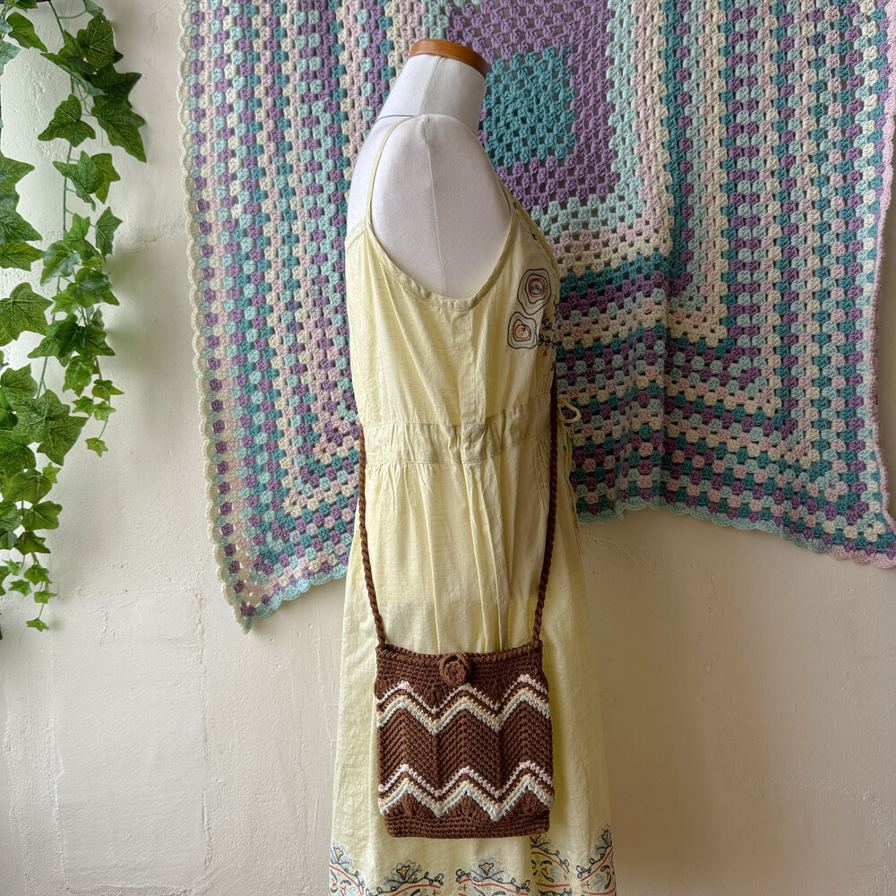 브라운 색감의 크로셰 크로스백이에요