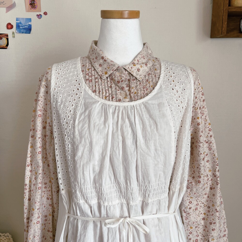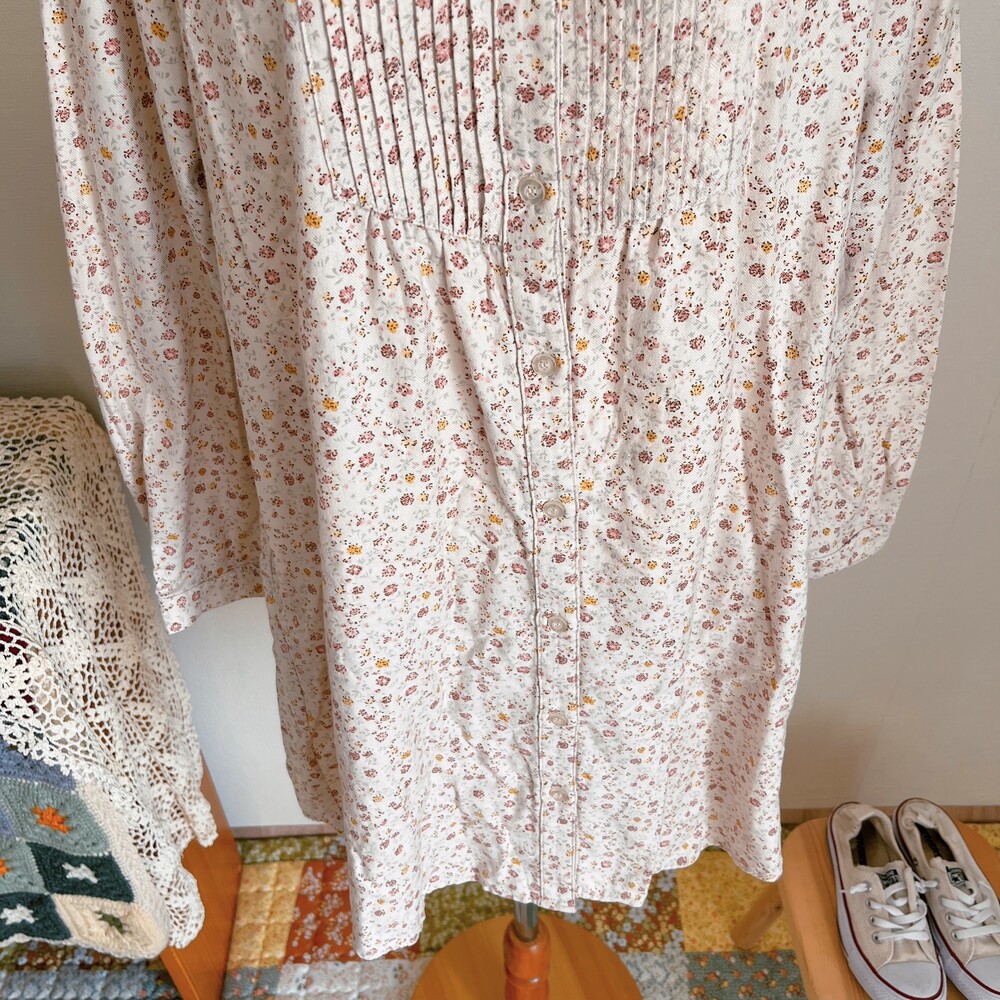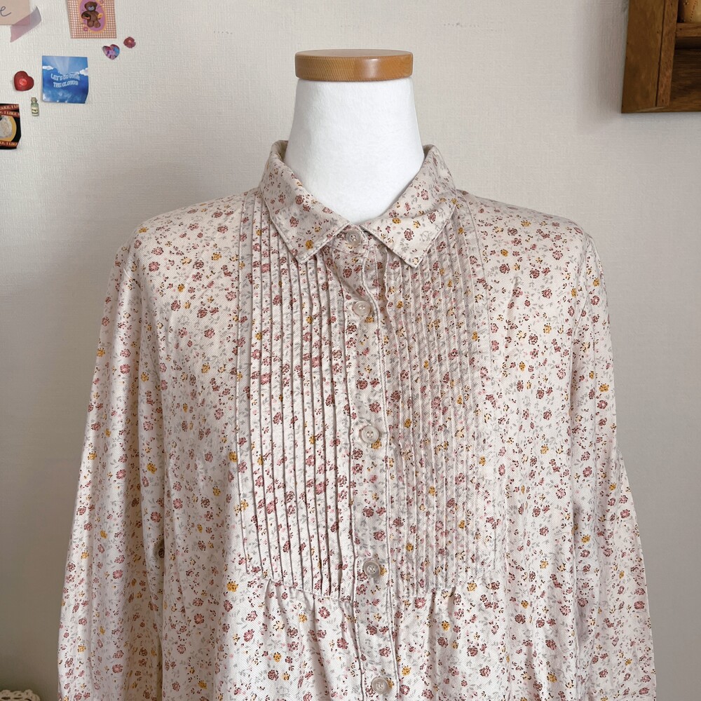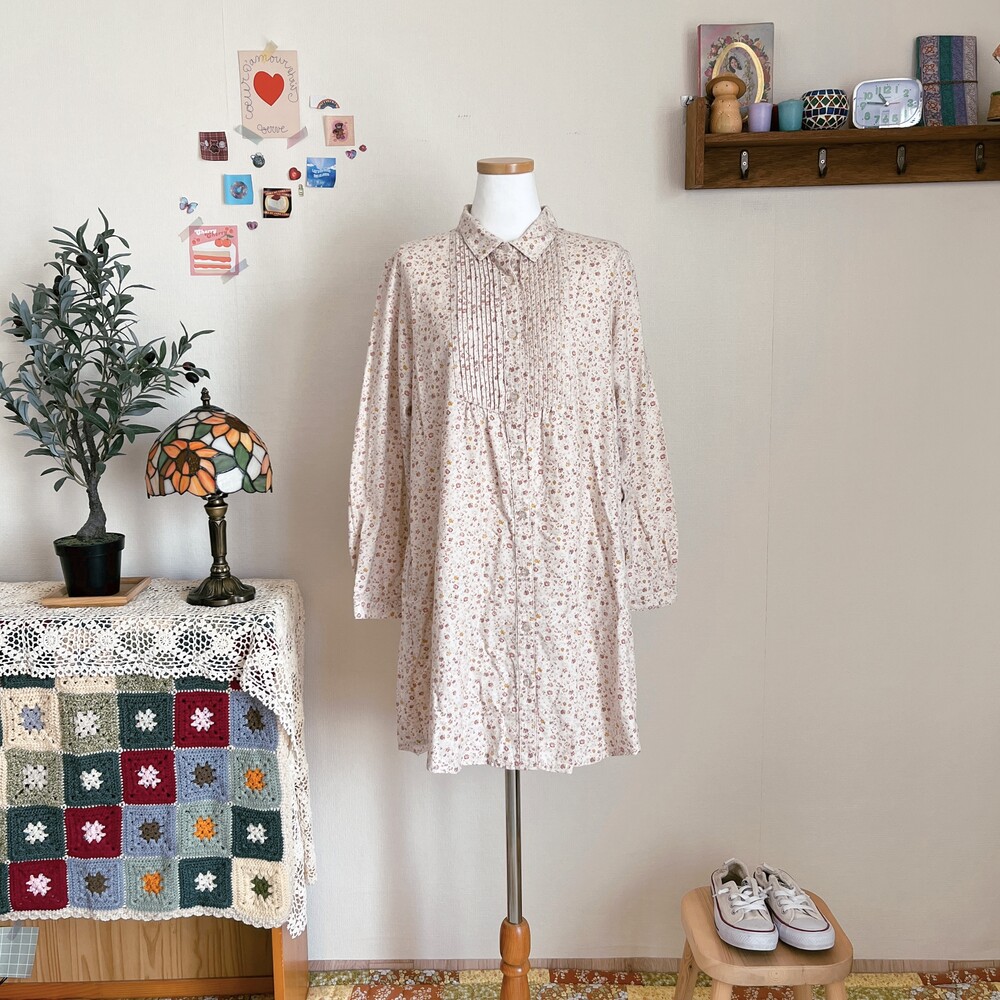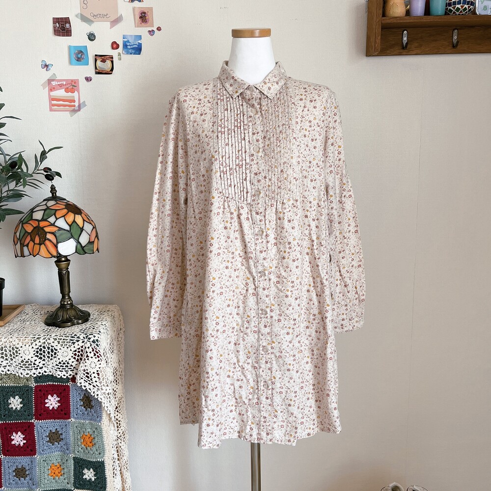 코튼 잔꽃 카라 핀턱 셔츠 원피스예요