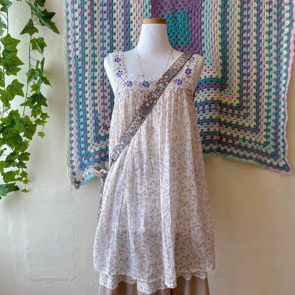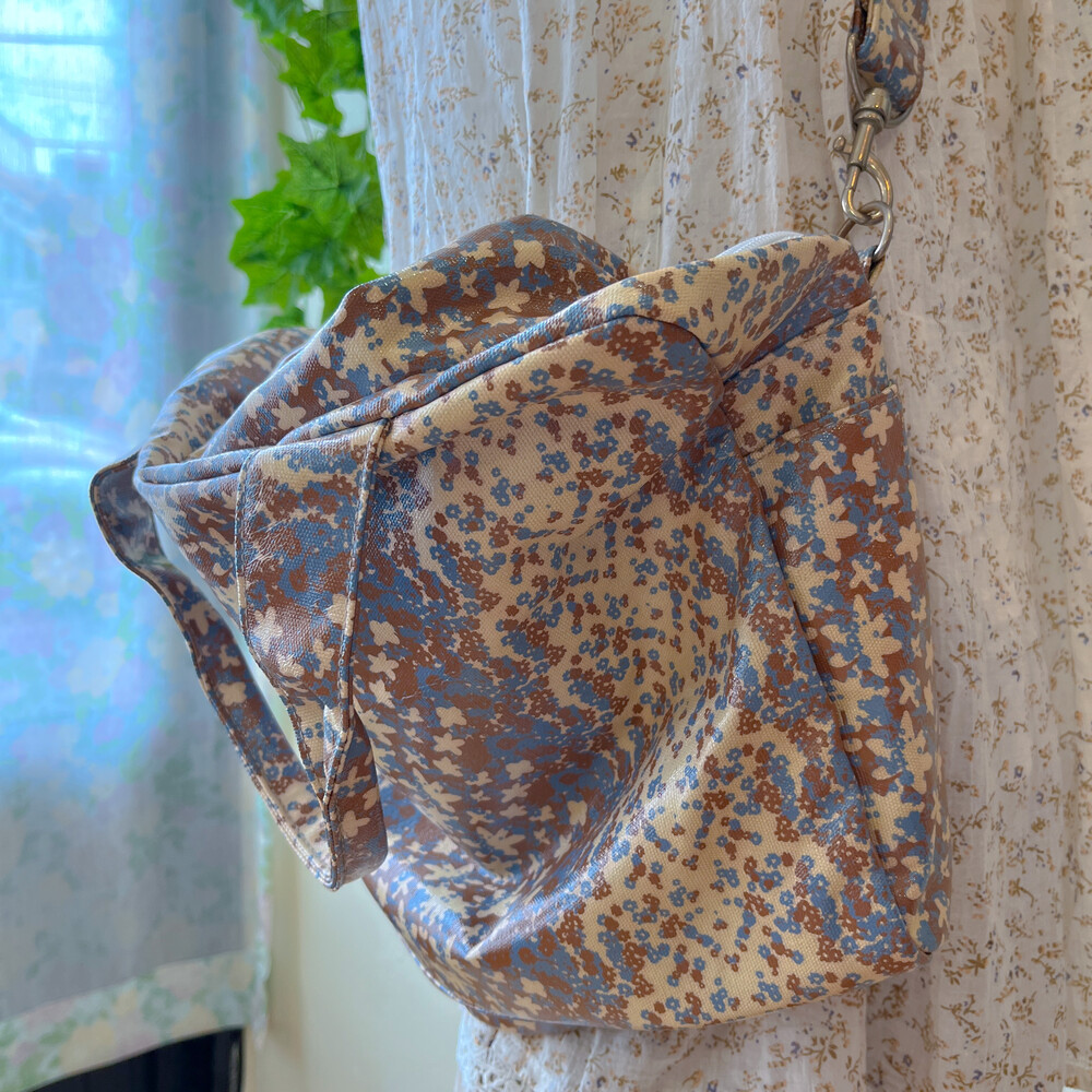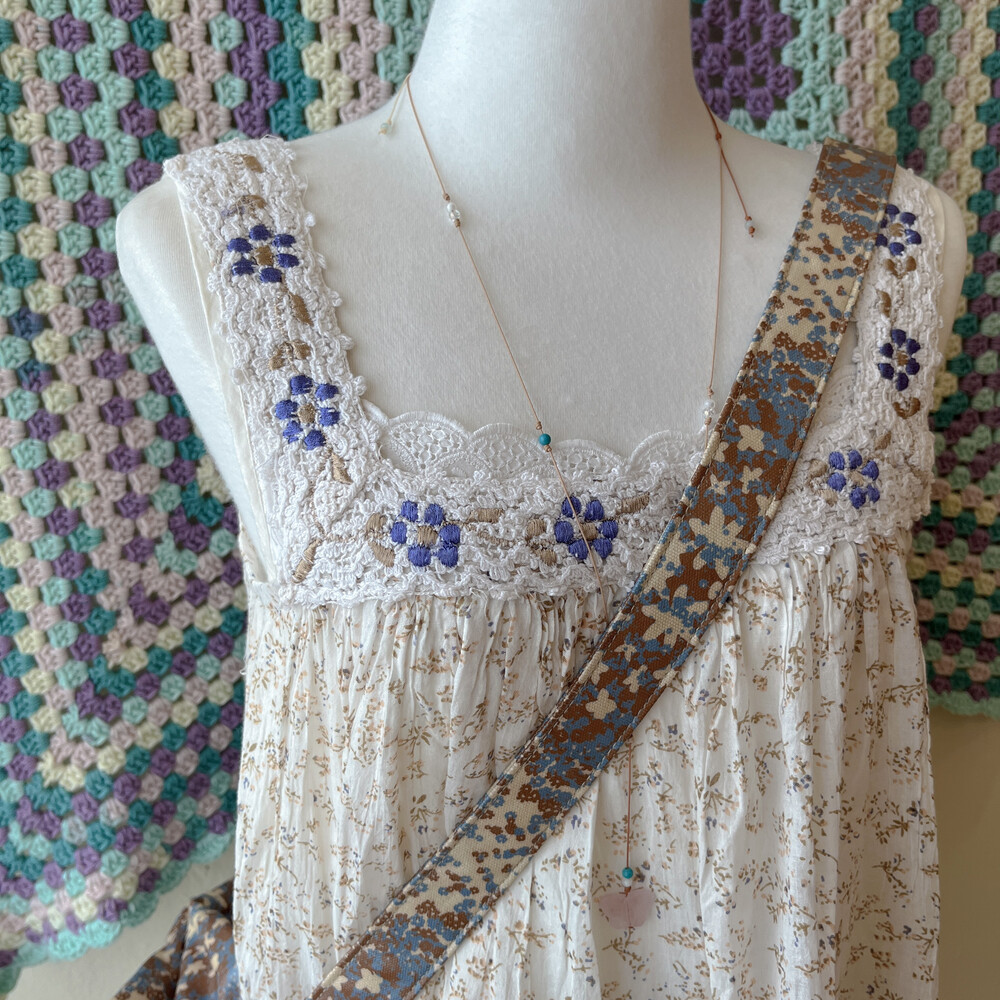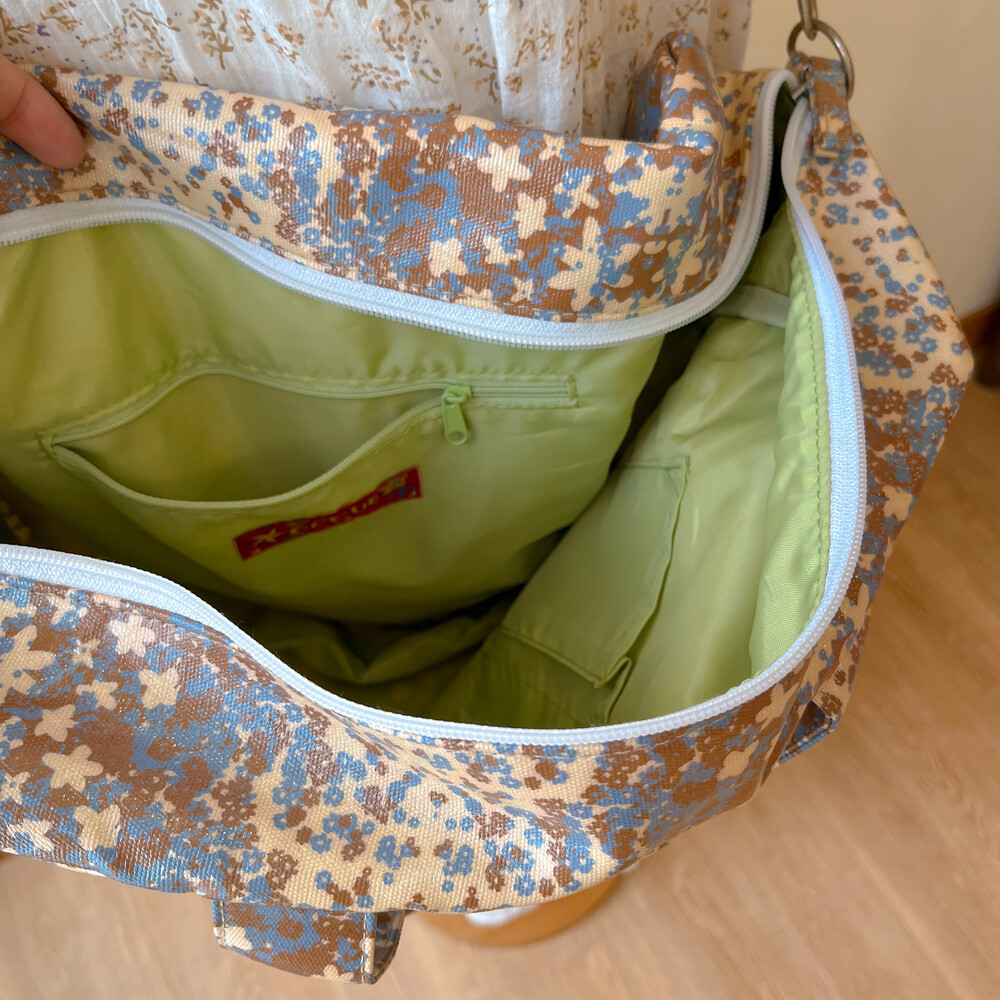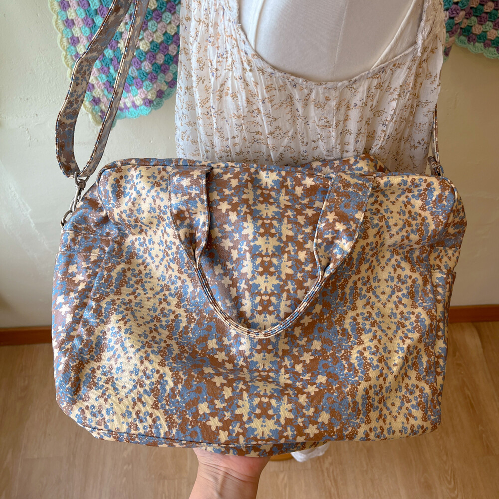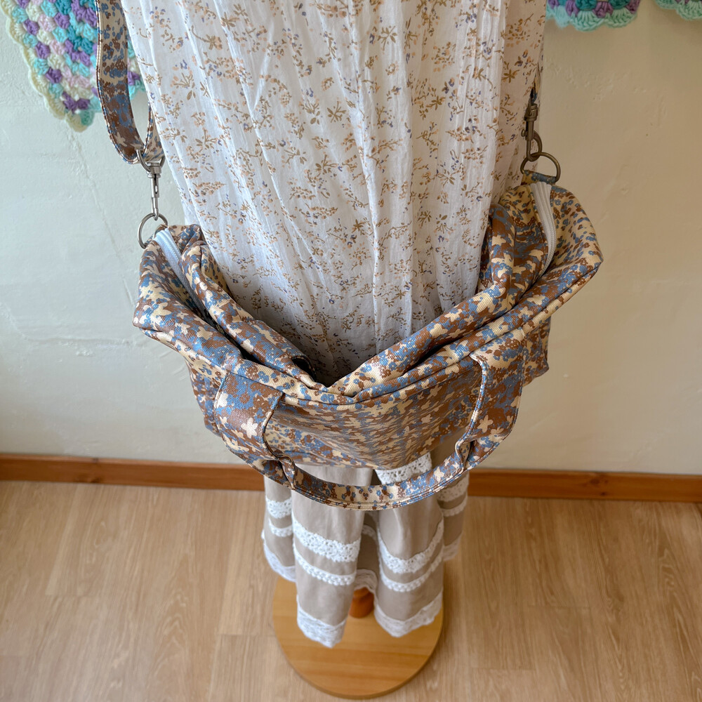 beige&blue flower boston cross bag