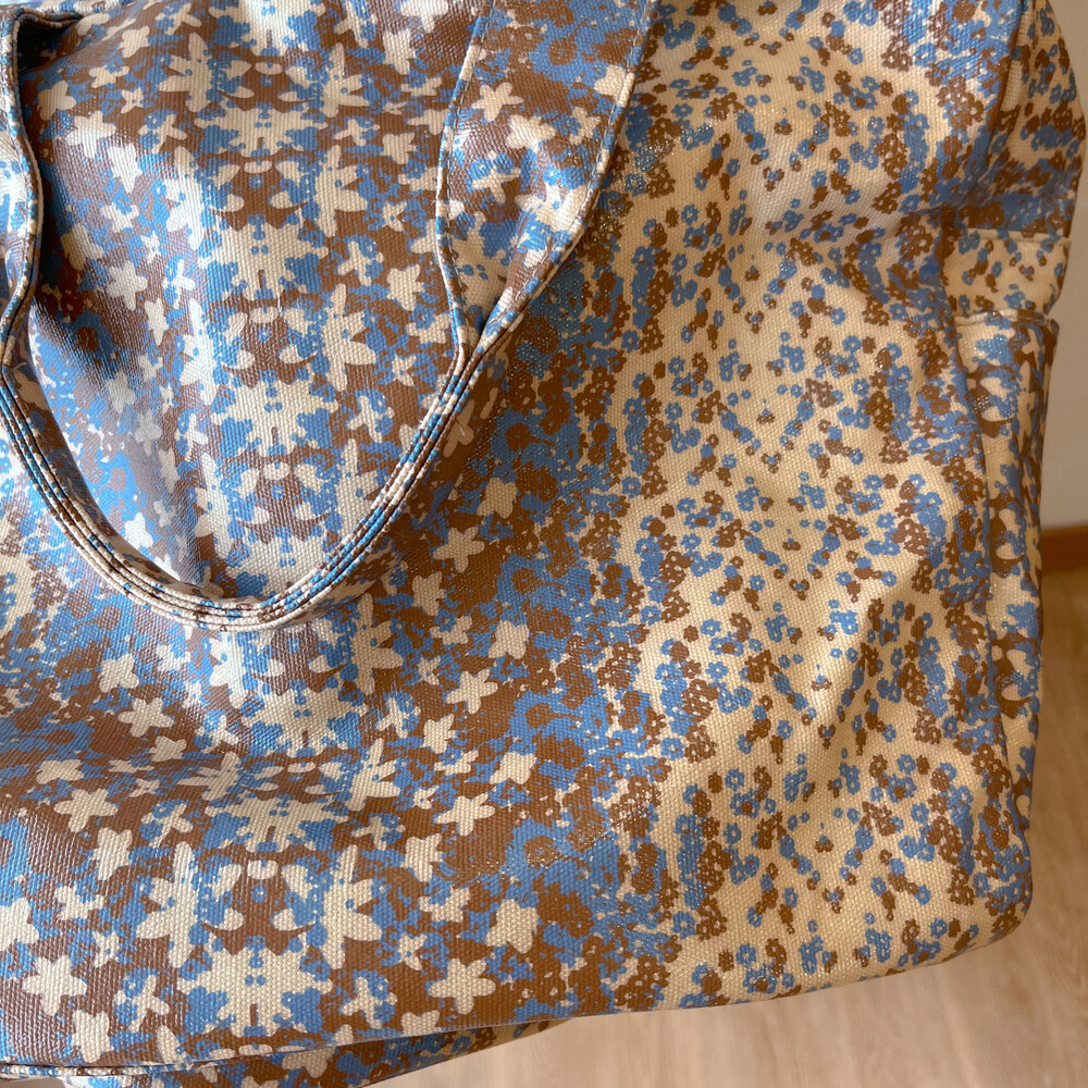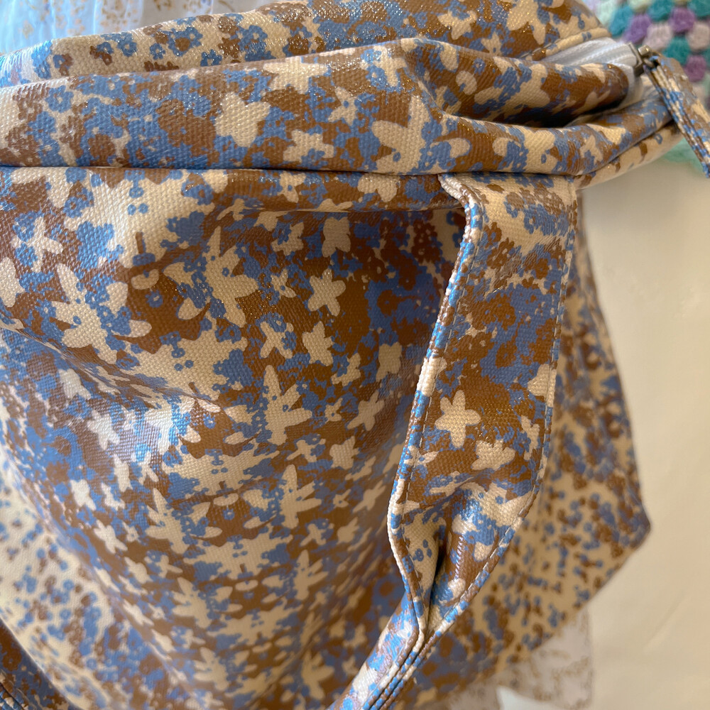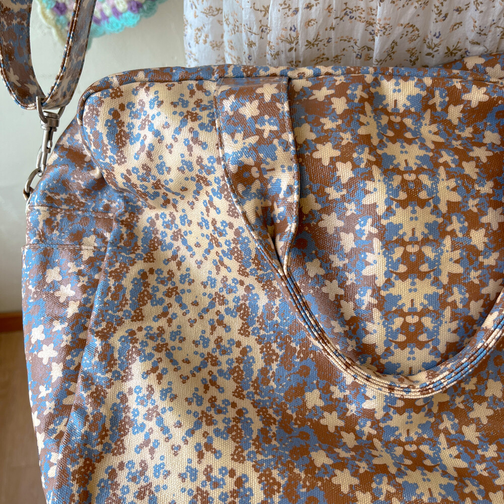 베이지 베이스에 블루 플라워 패턴 보스턴 크로스백이에요