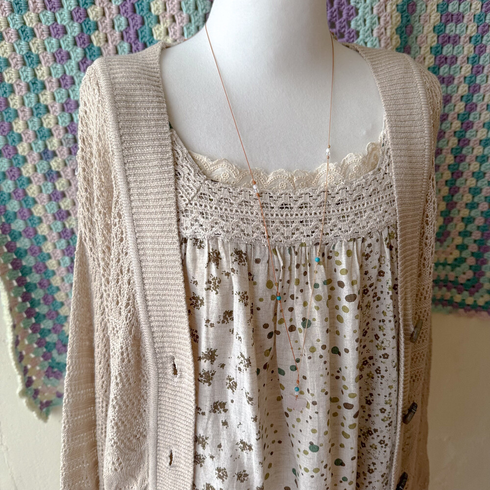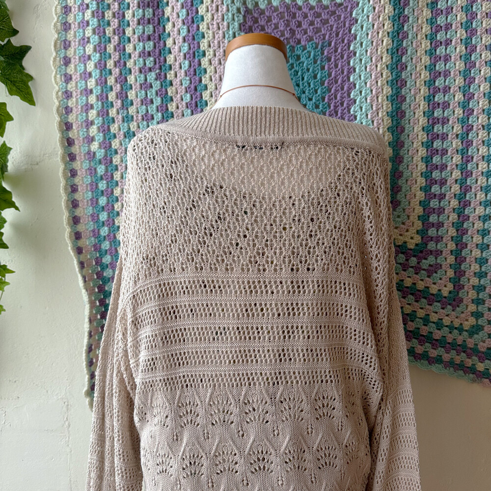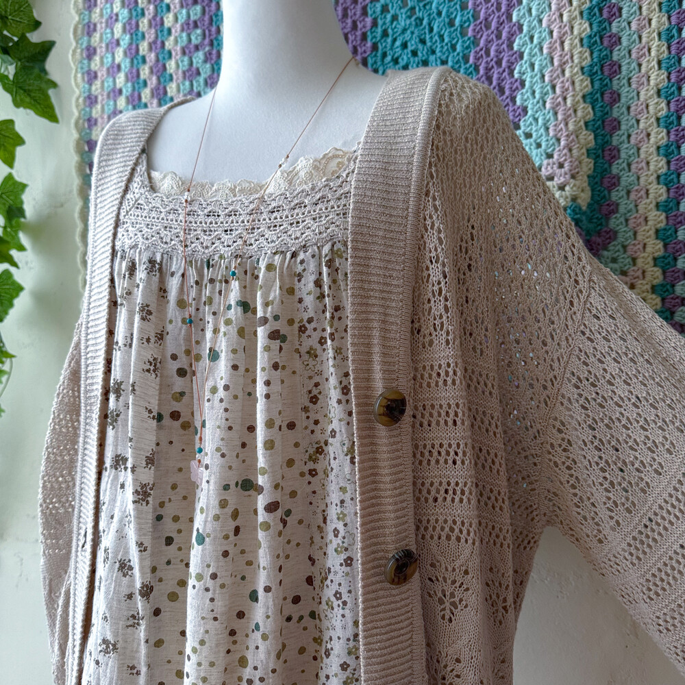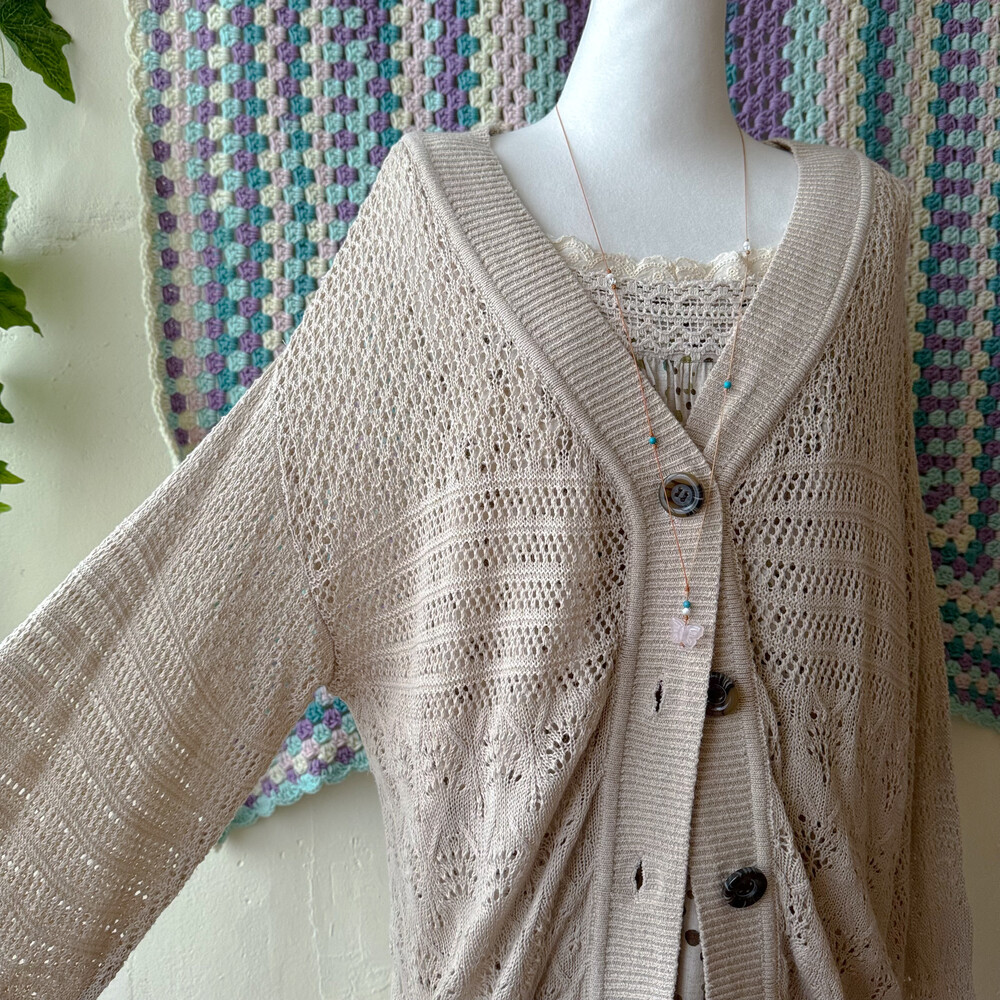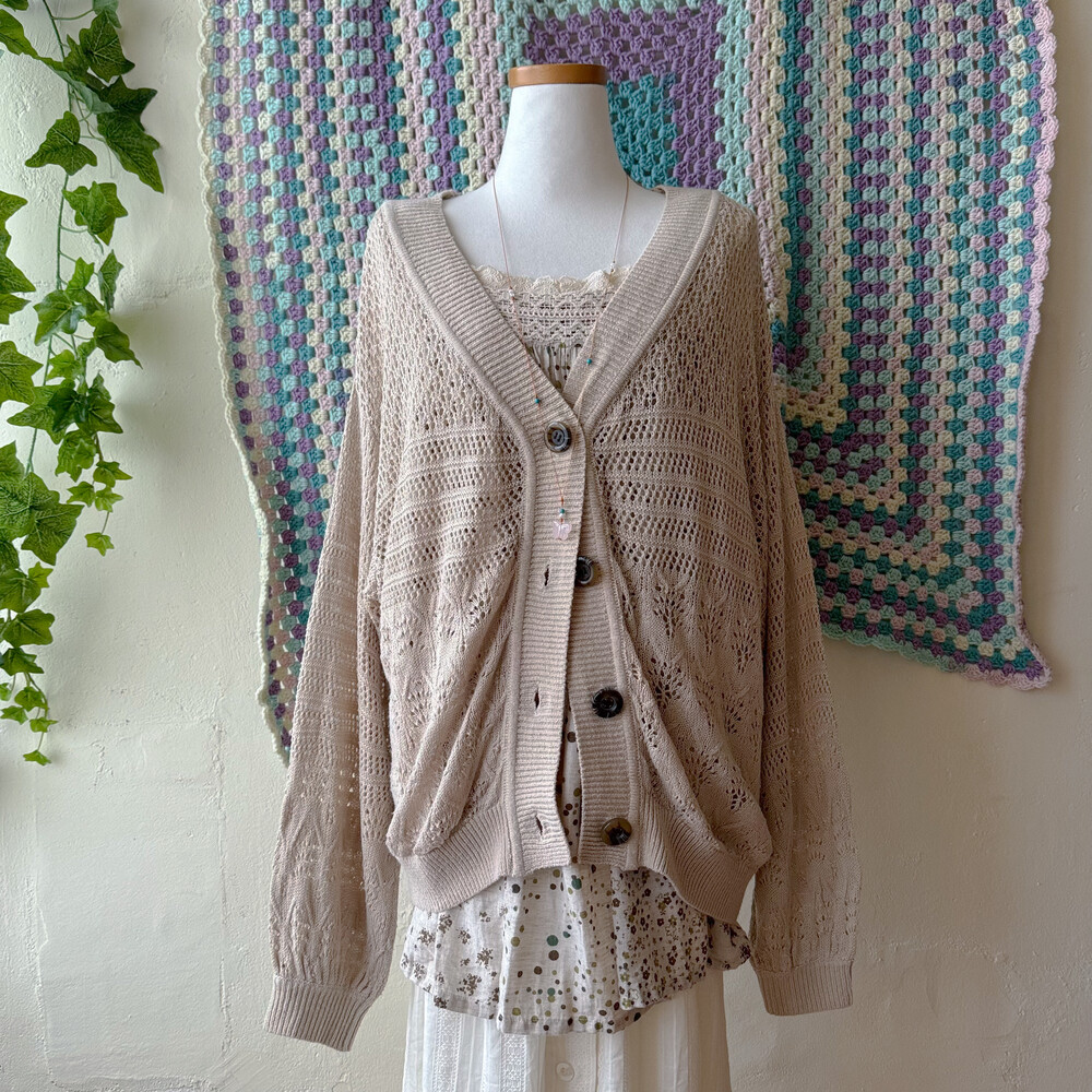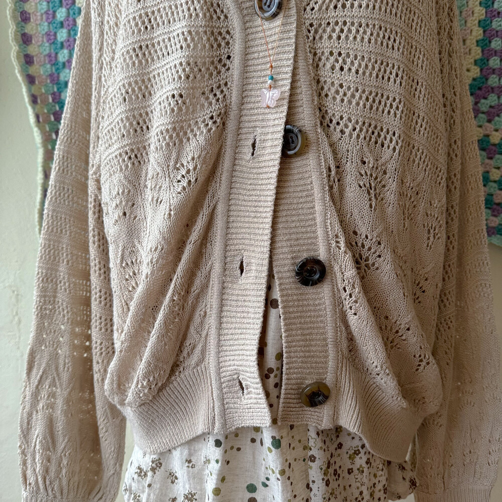 베이지 색감의 펀칭 크로셰 가디건이에요