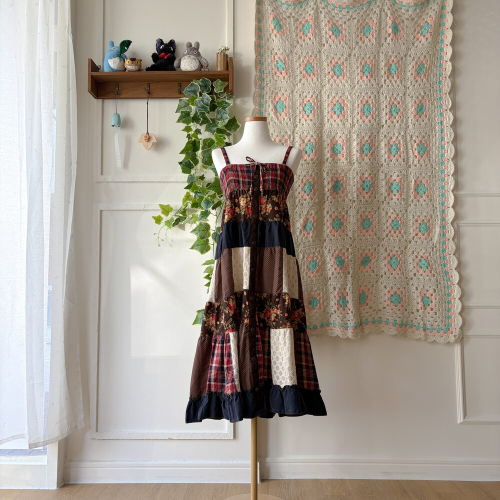 다양한 패턴의 패치가 조합된 투웨이 원피스예요