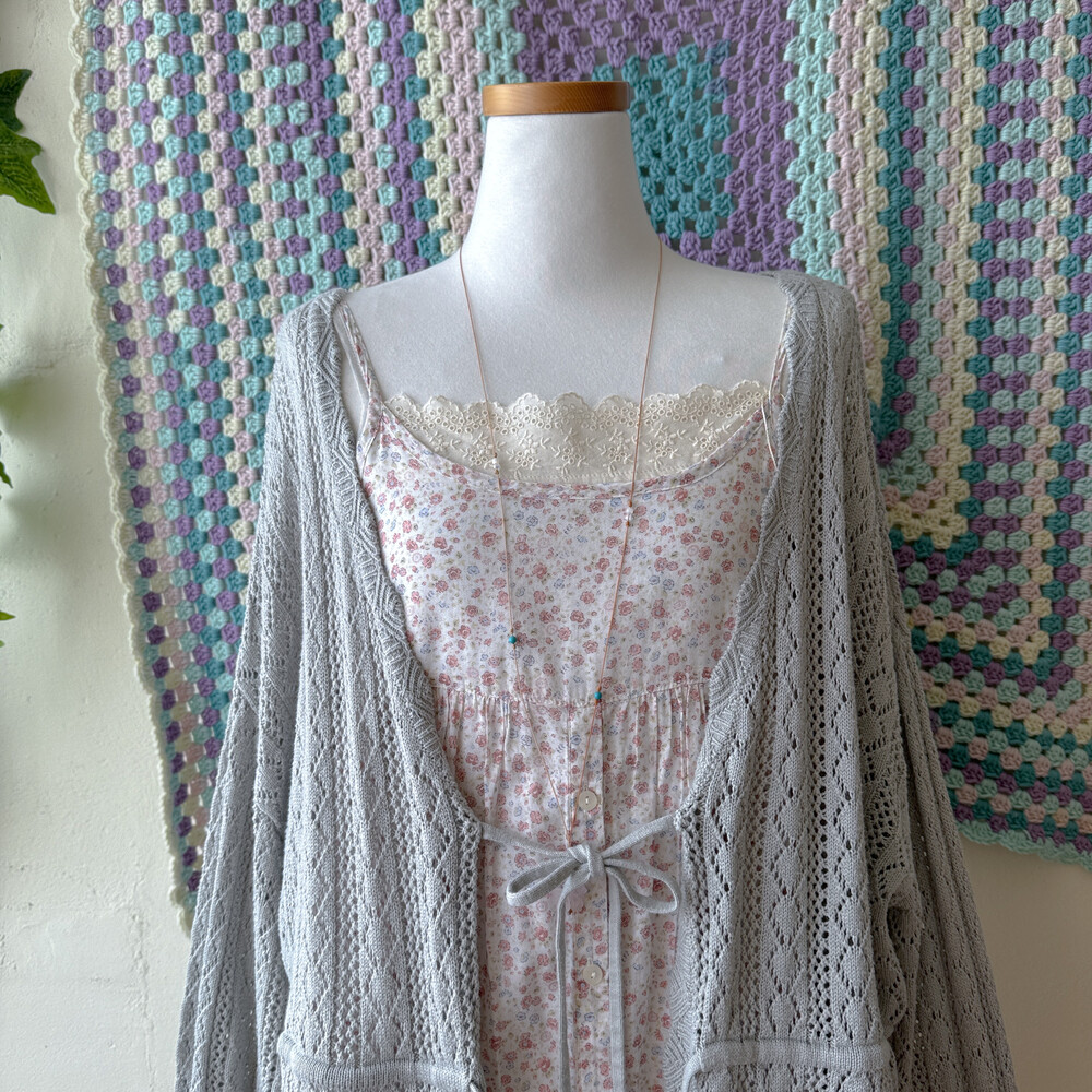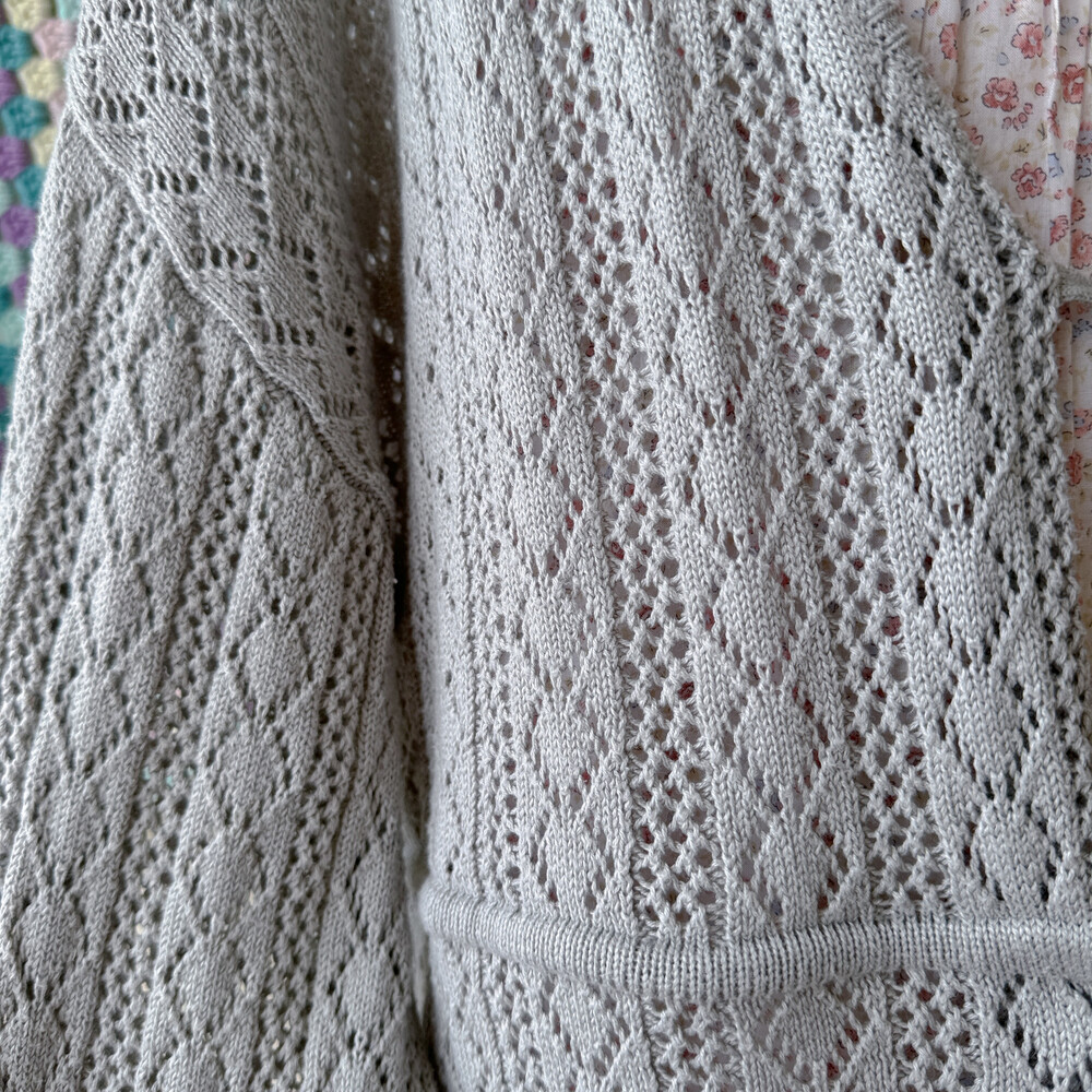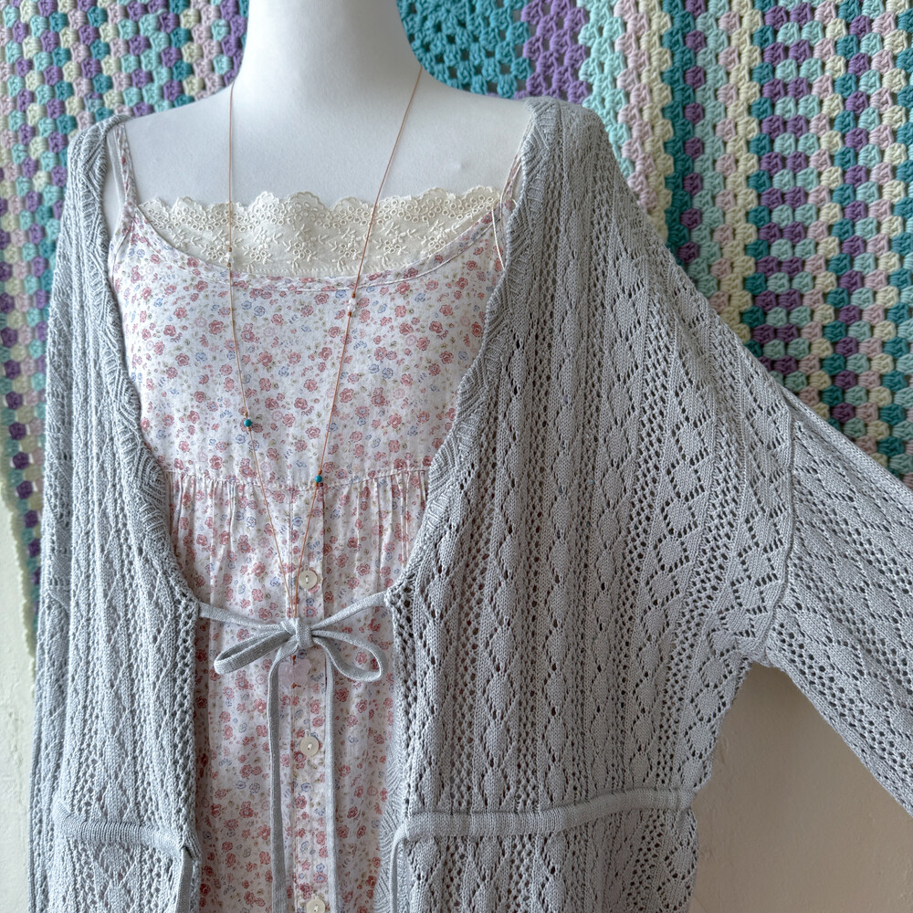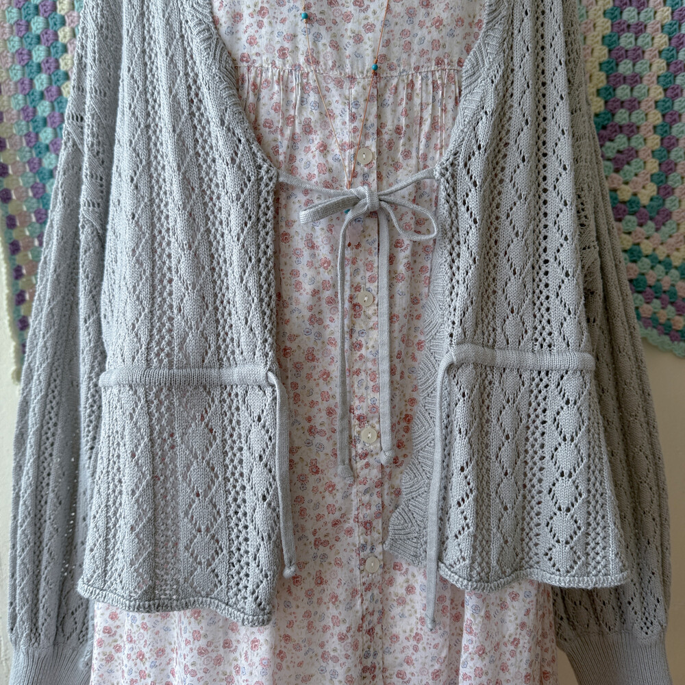 뮤트한 블루-그레이 색감의 펀칭 가디건이에요