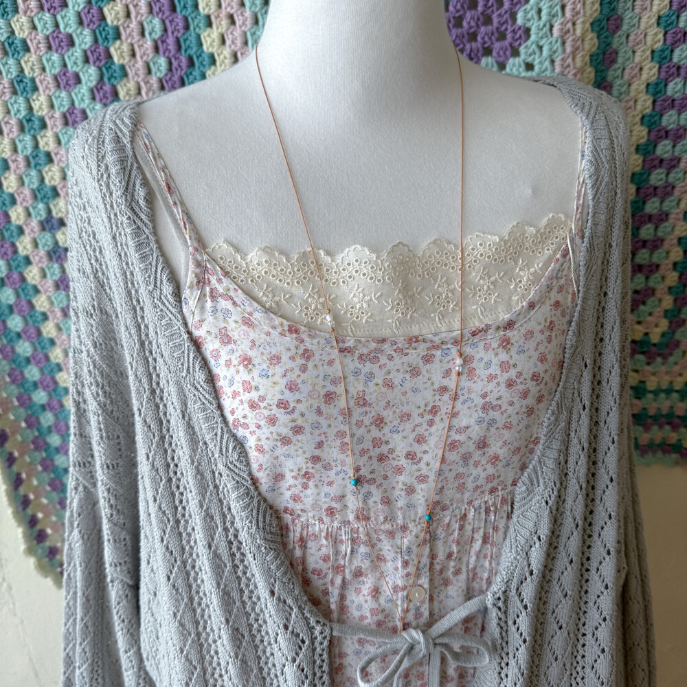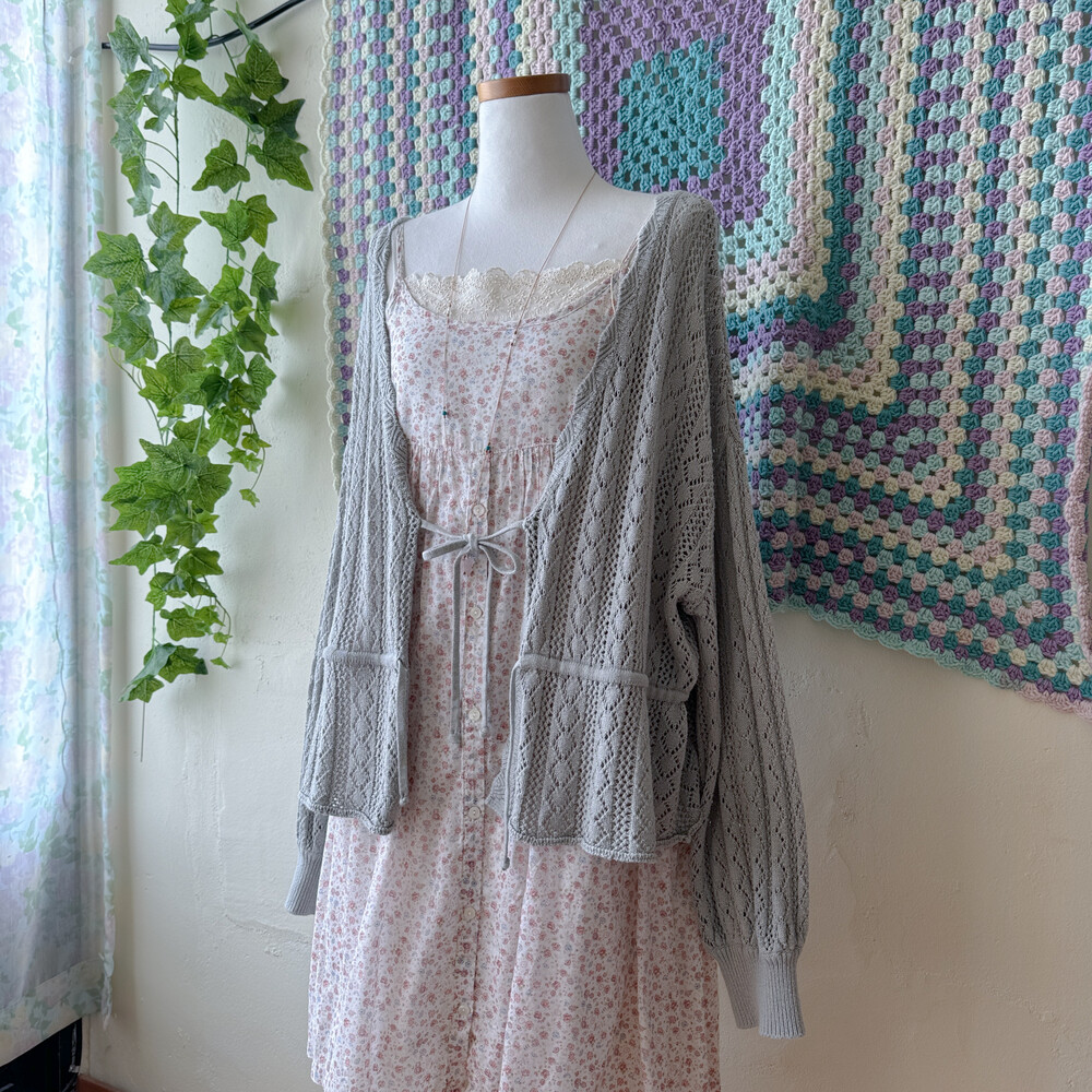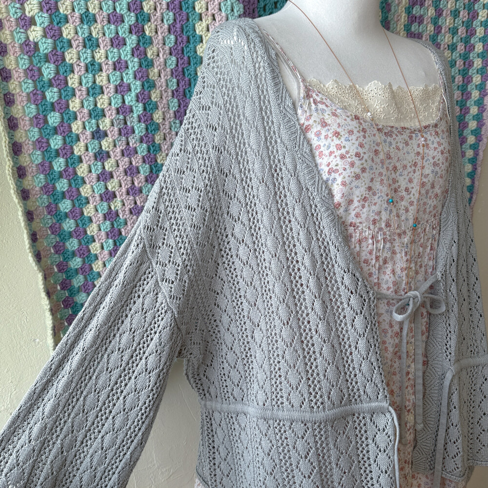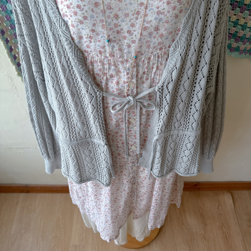 뮤트한 블루-그레이 색감의 펀칭 가디건이에요