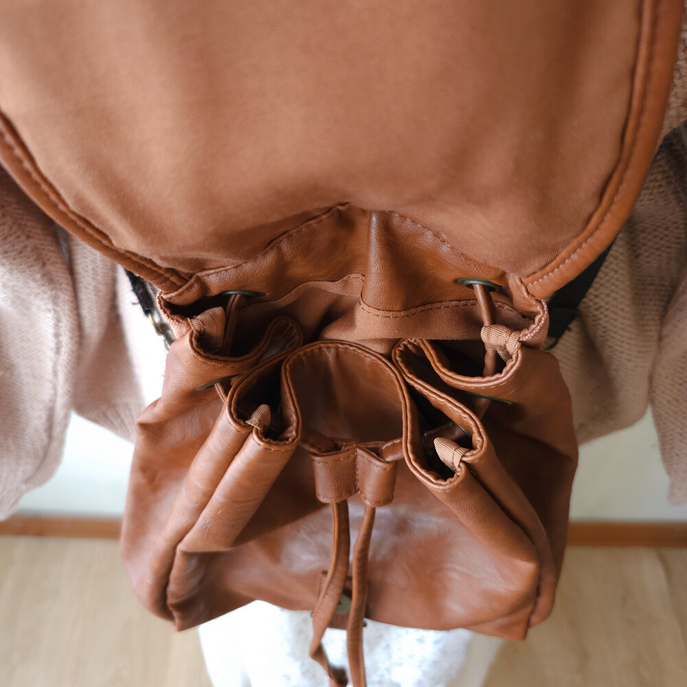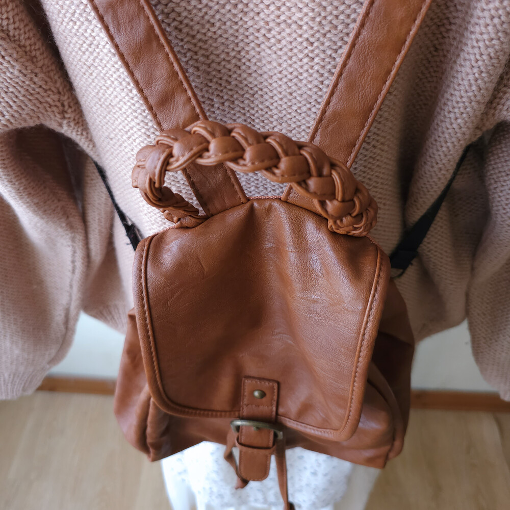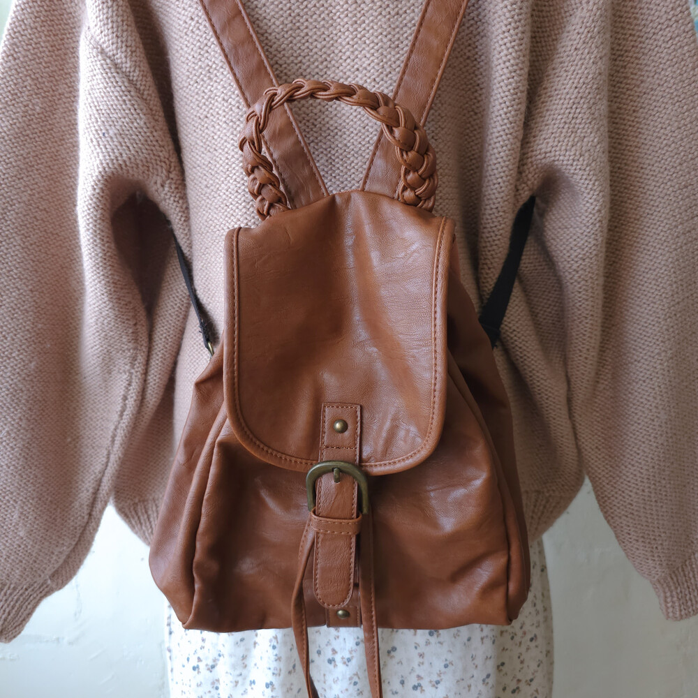 brown twist strap mini backpack