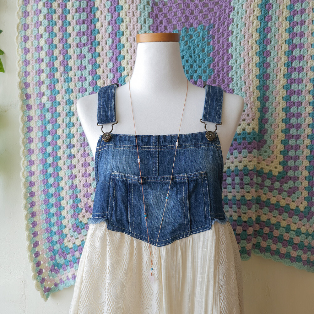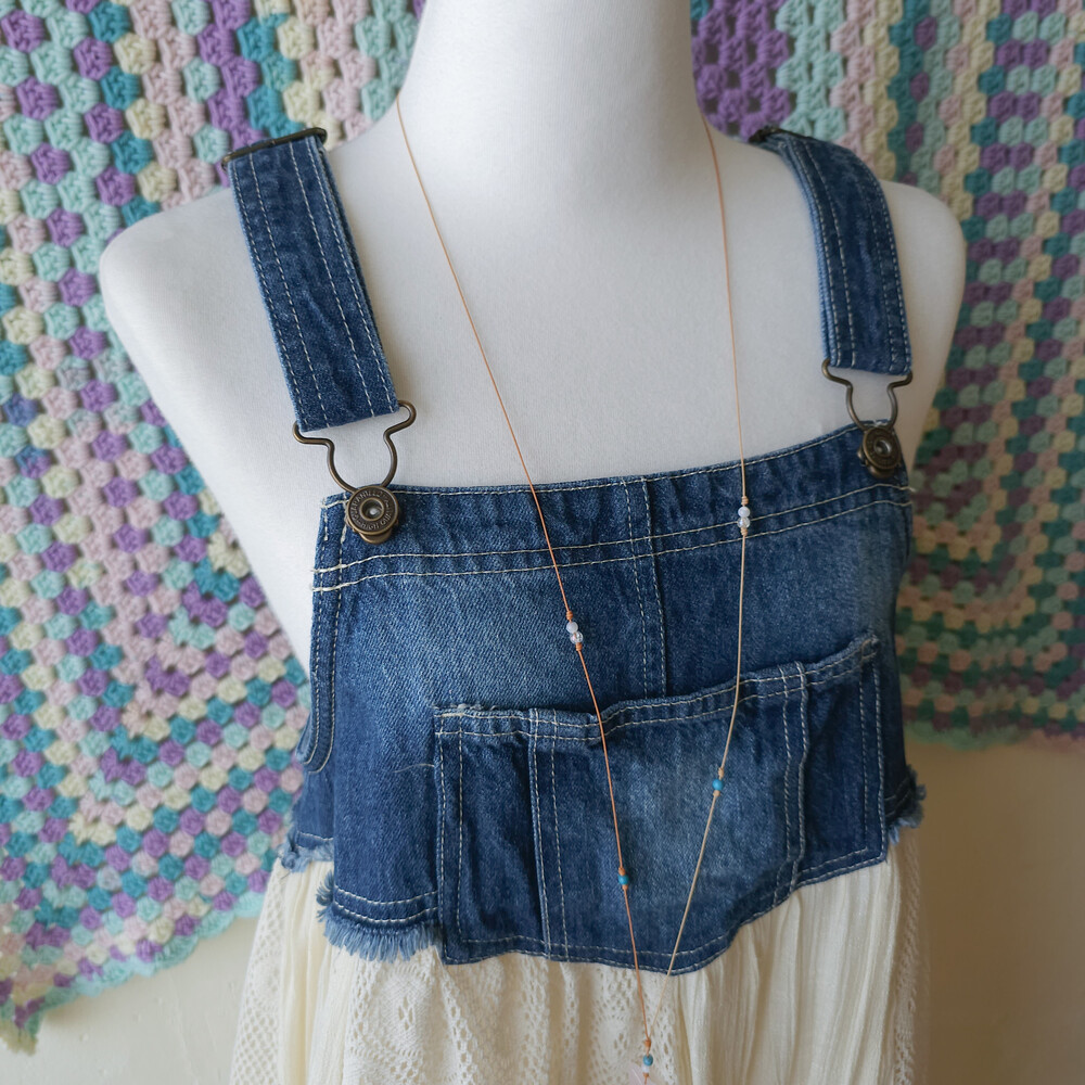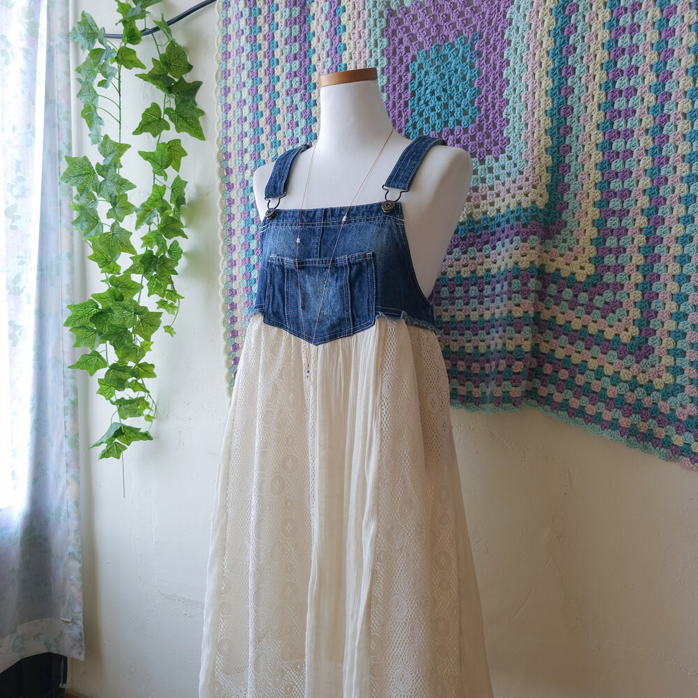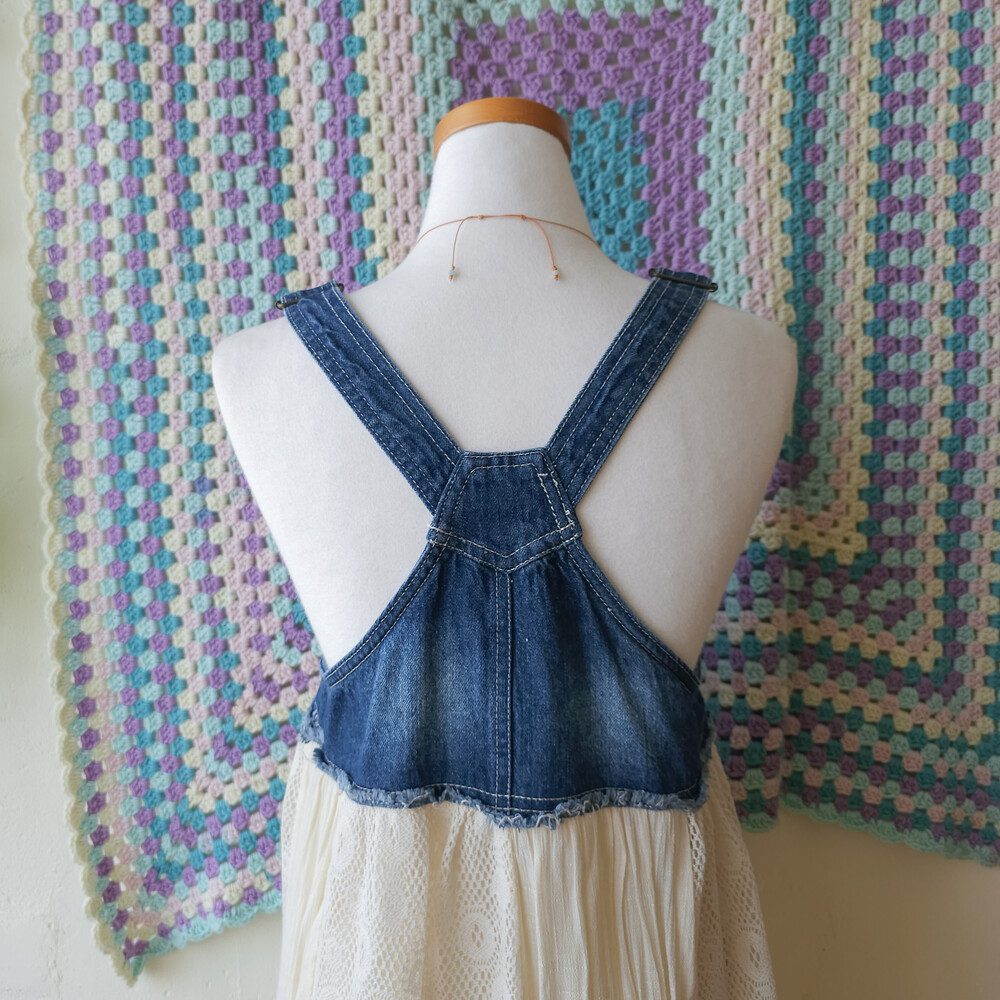 dark denim lace patch overall ops