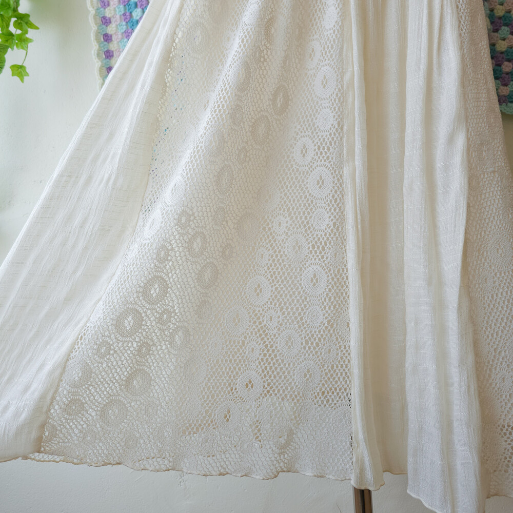 스커트 부분은 폴리, 레이온 폴리 혼방 등의 레이스 패치로 조합되어 있어요
