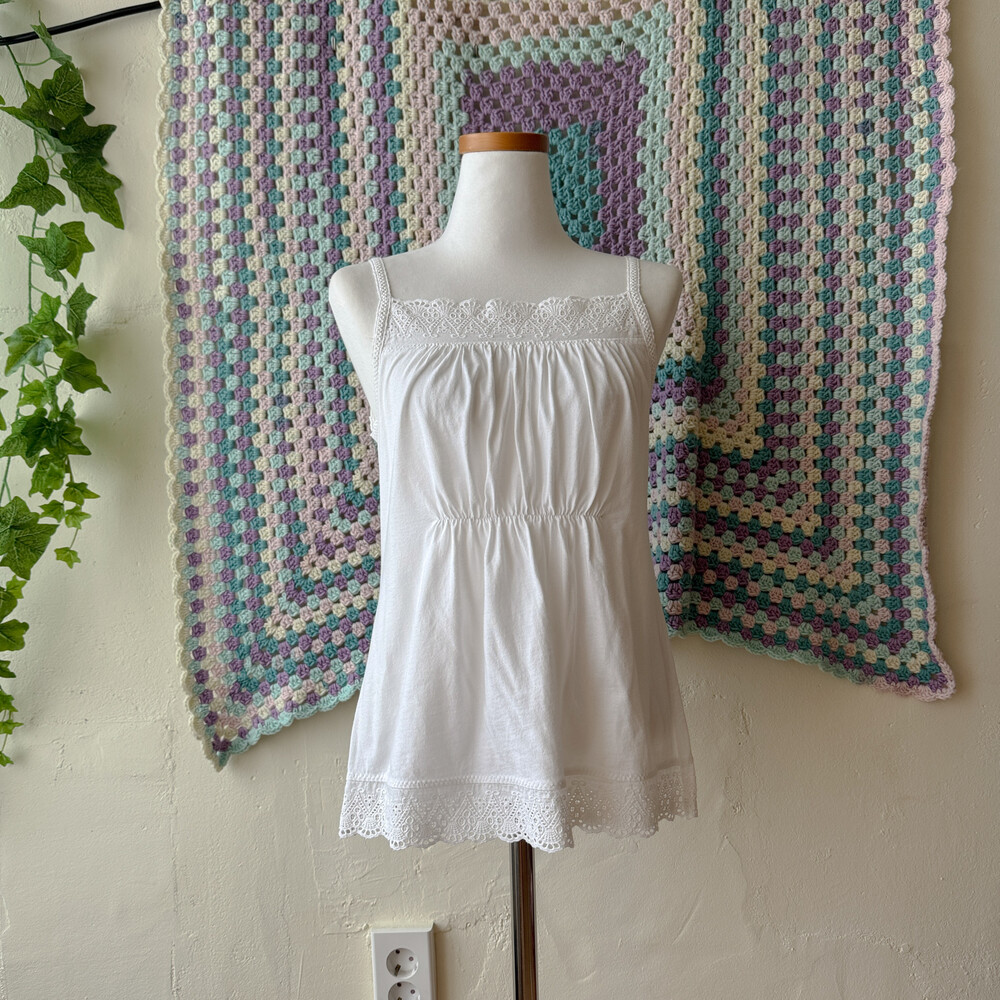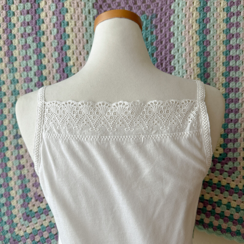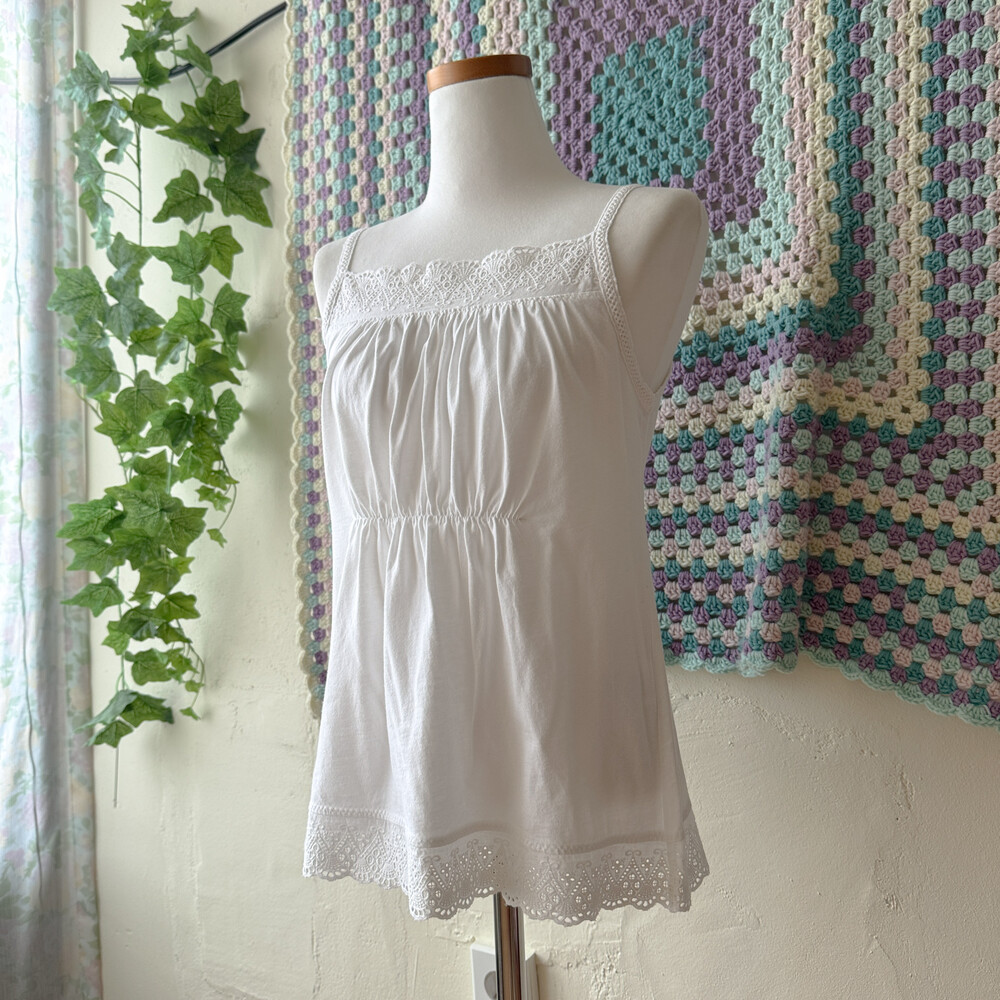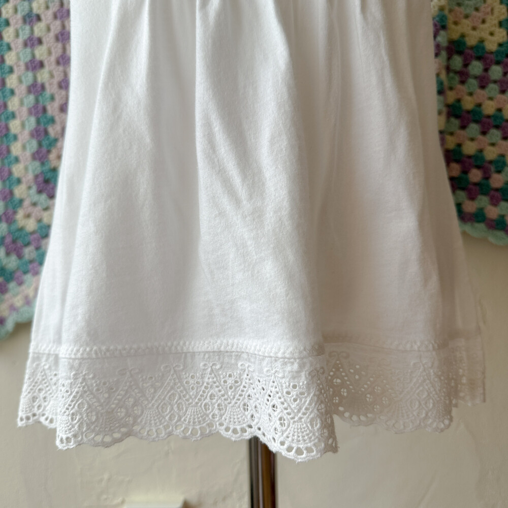 화이트 색감의 가슴 밑단 자수펀칭 포인트 이너 티셔츠예요