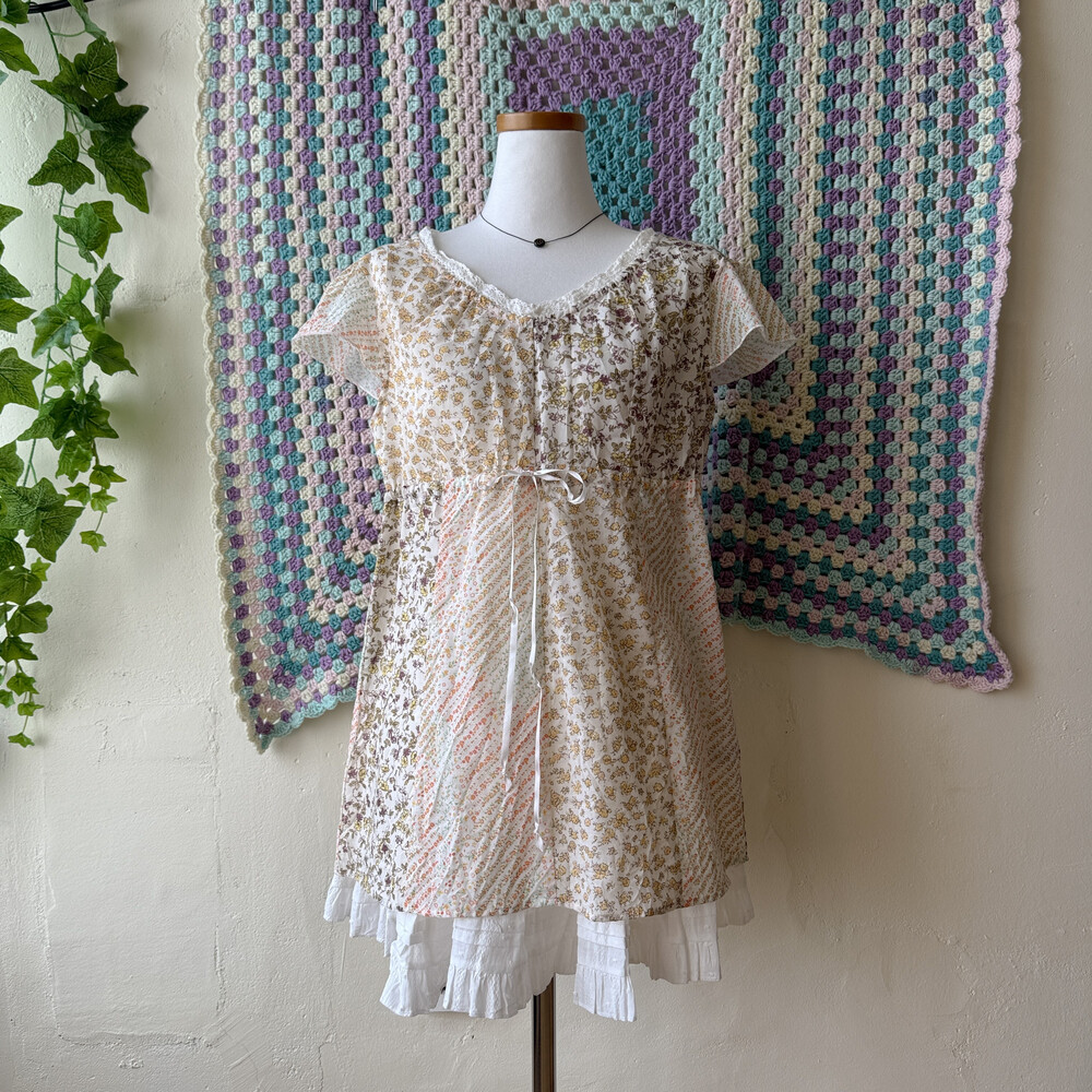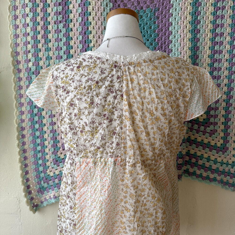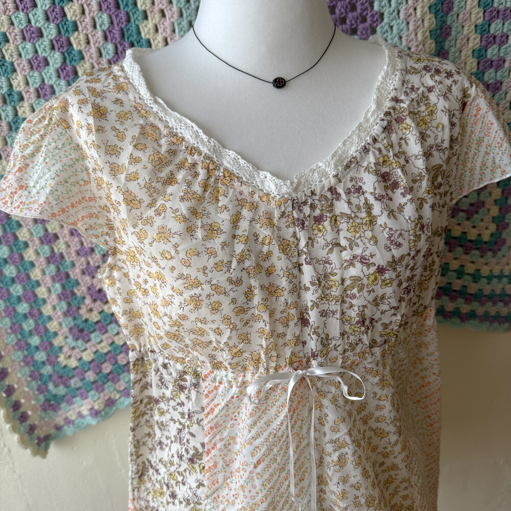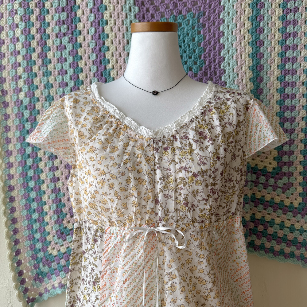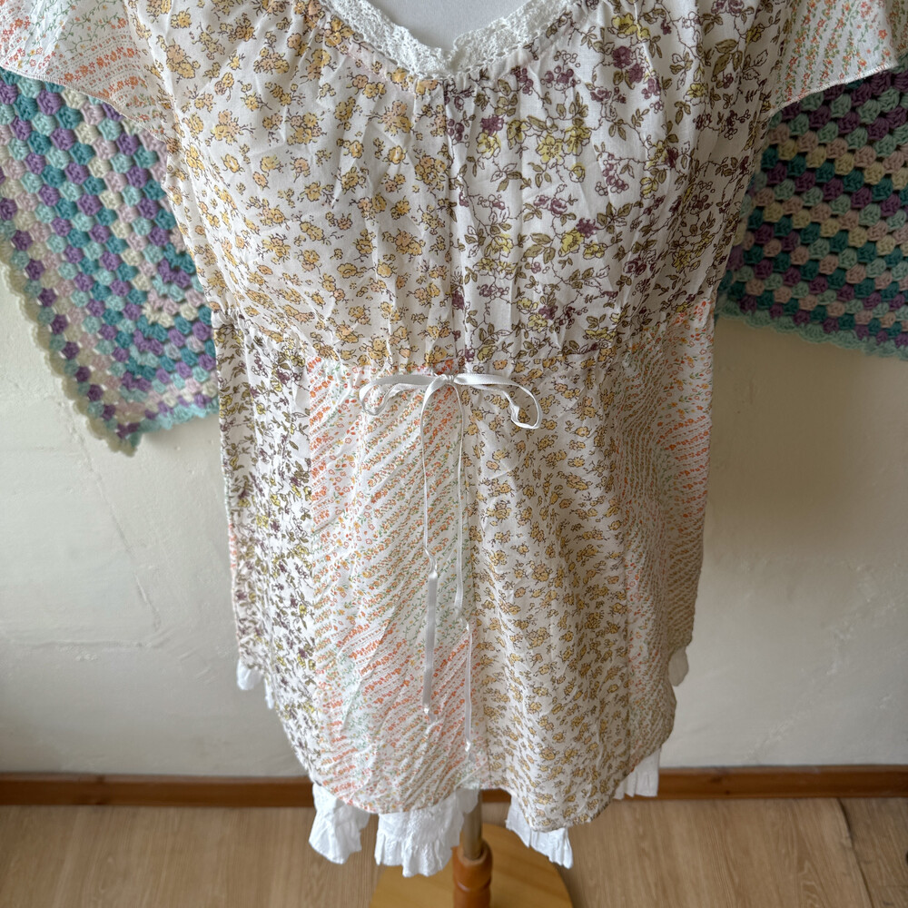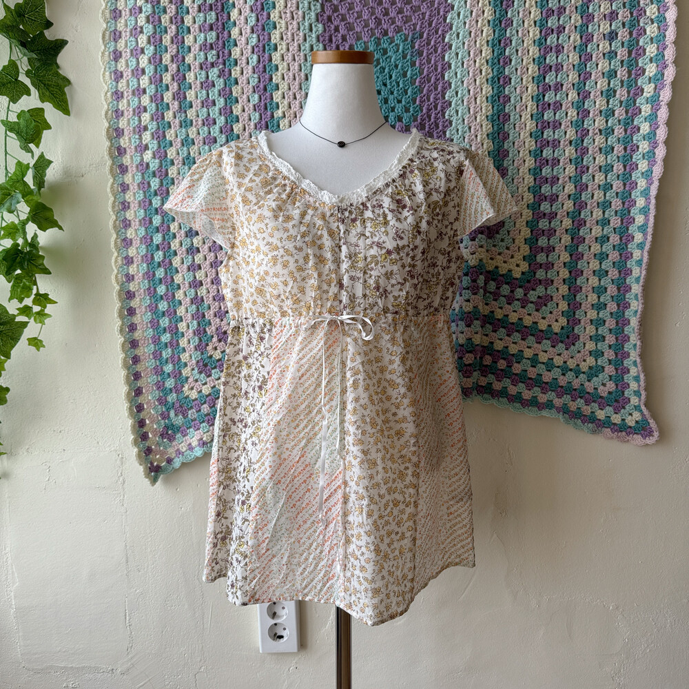 노랑, 주황 등 꽃무늬 패치 블라우스예요