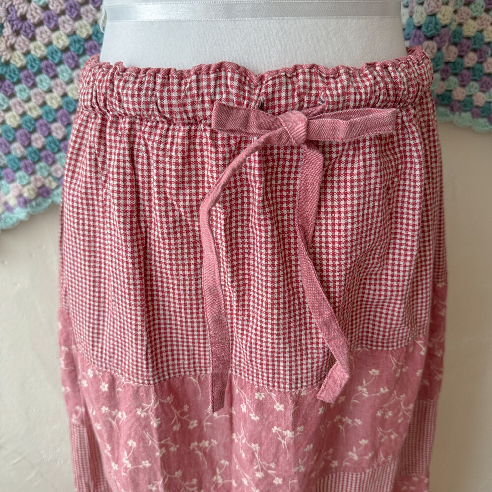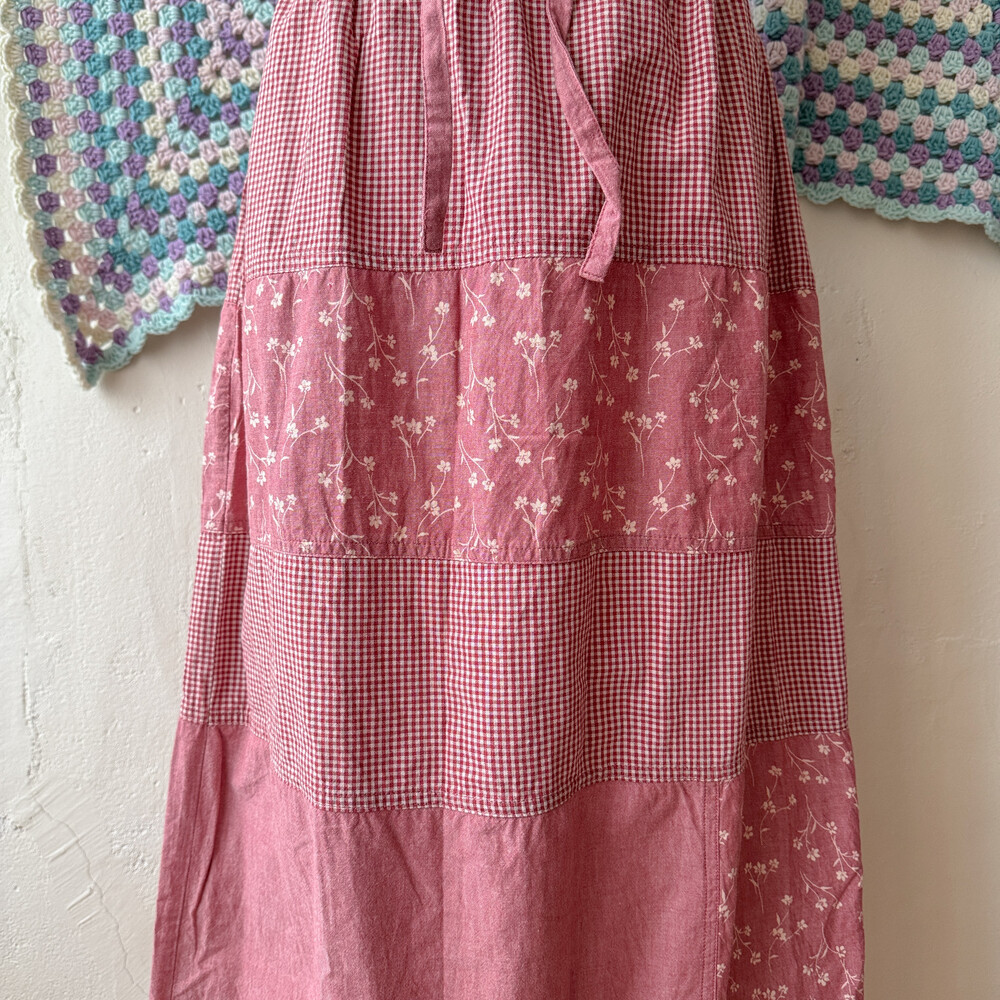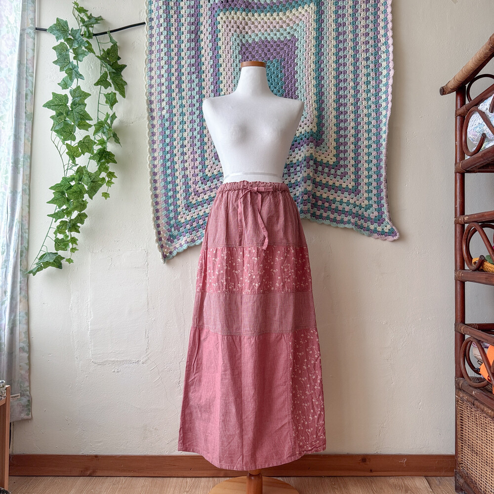 인디핑크와 레드 중간 색감의 패치워크 스커트예요
